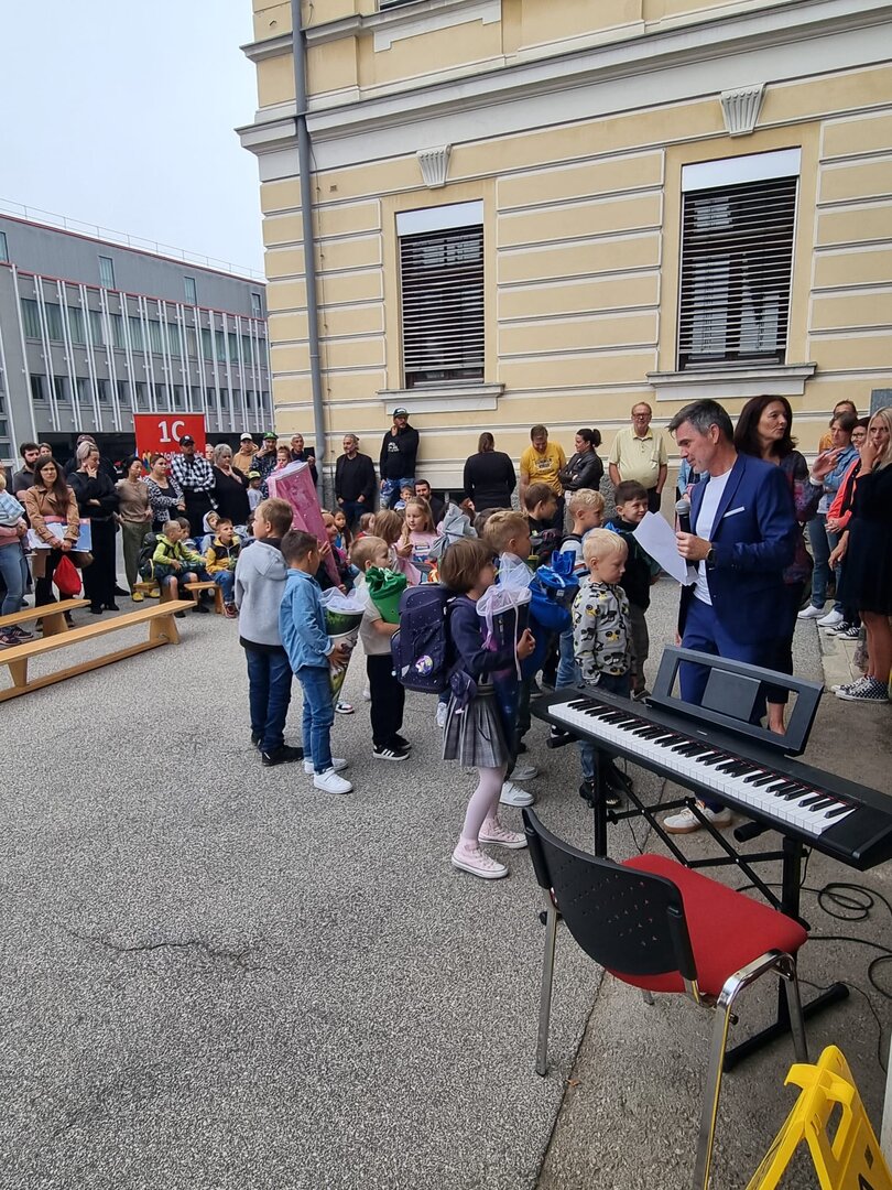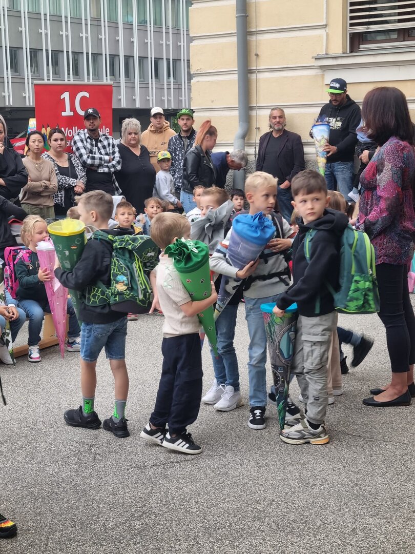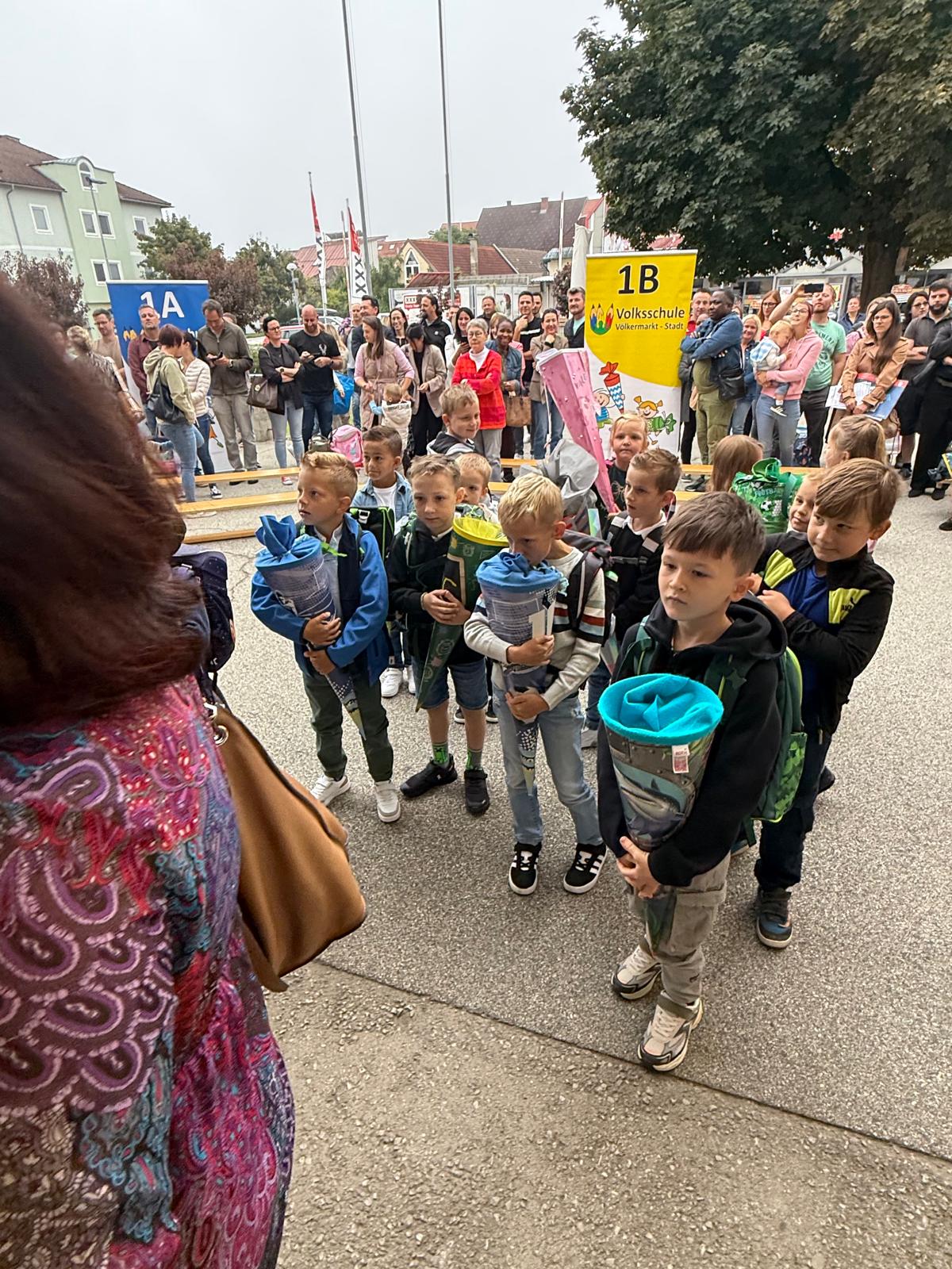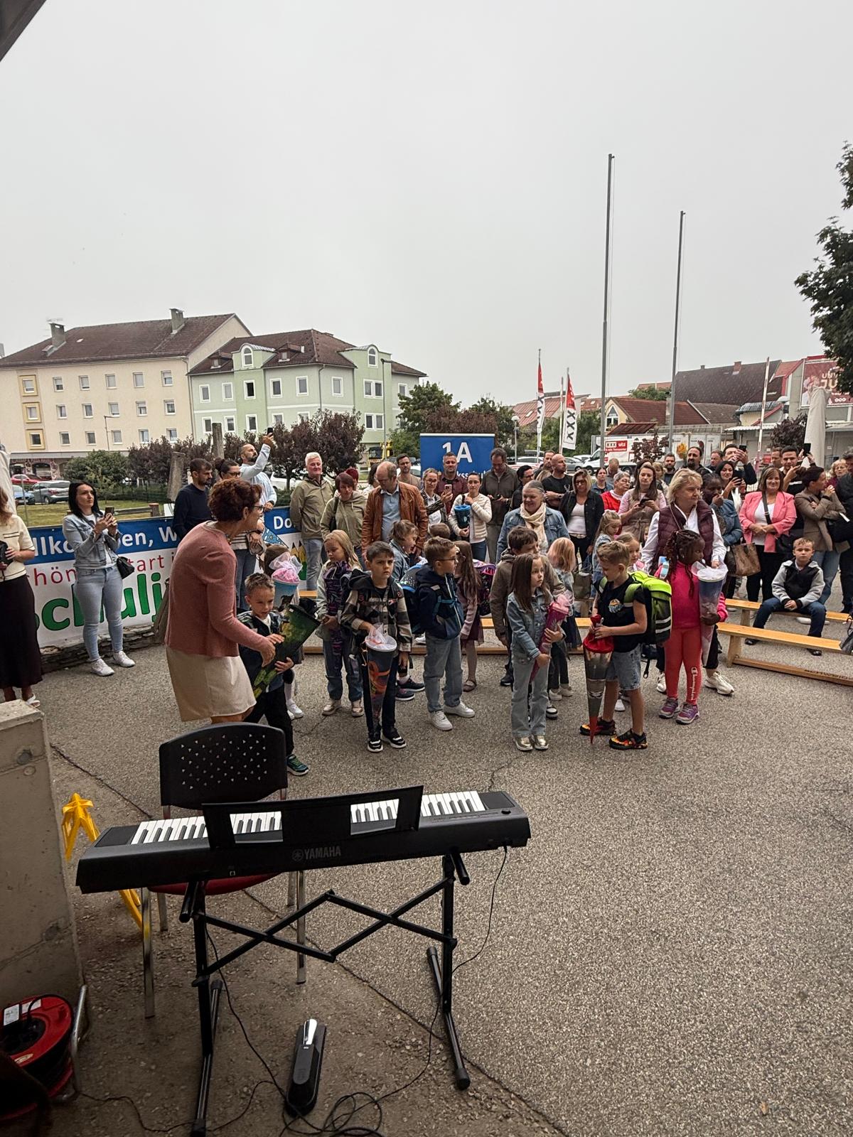 Am ersten Schultag war die Aufregung groß. Die Schüler und Schülerinnen der 1. Klassen versammelten sich vor der Schule. Der Direktor begrüßte alle herzlich und hieß sie im neuen Schuljahr willkommen. Auch der Schulchor trat auf und stimmte einige fröhliche Lieder an. Danach ging jedes Kind in seine Klasse – die einen noch etwas nervös, die anderen bereits gespannt, was der erste Schultag in der neuen Klasse bringen würde. Der Tag begann also mit einer herzlichen und positiven Begrüßung, die den Grundstein für ein spannendes und lehrreiches Schuljahr legte.