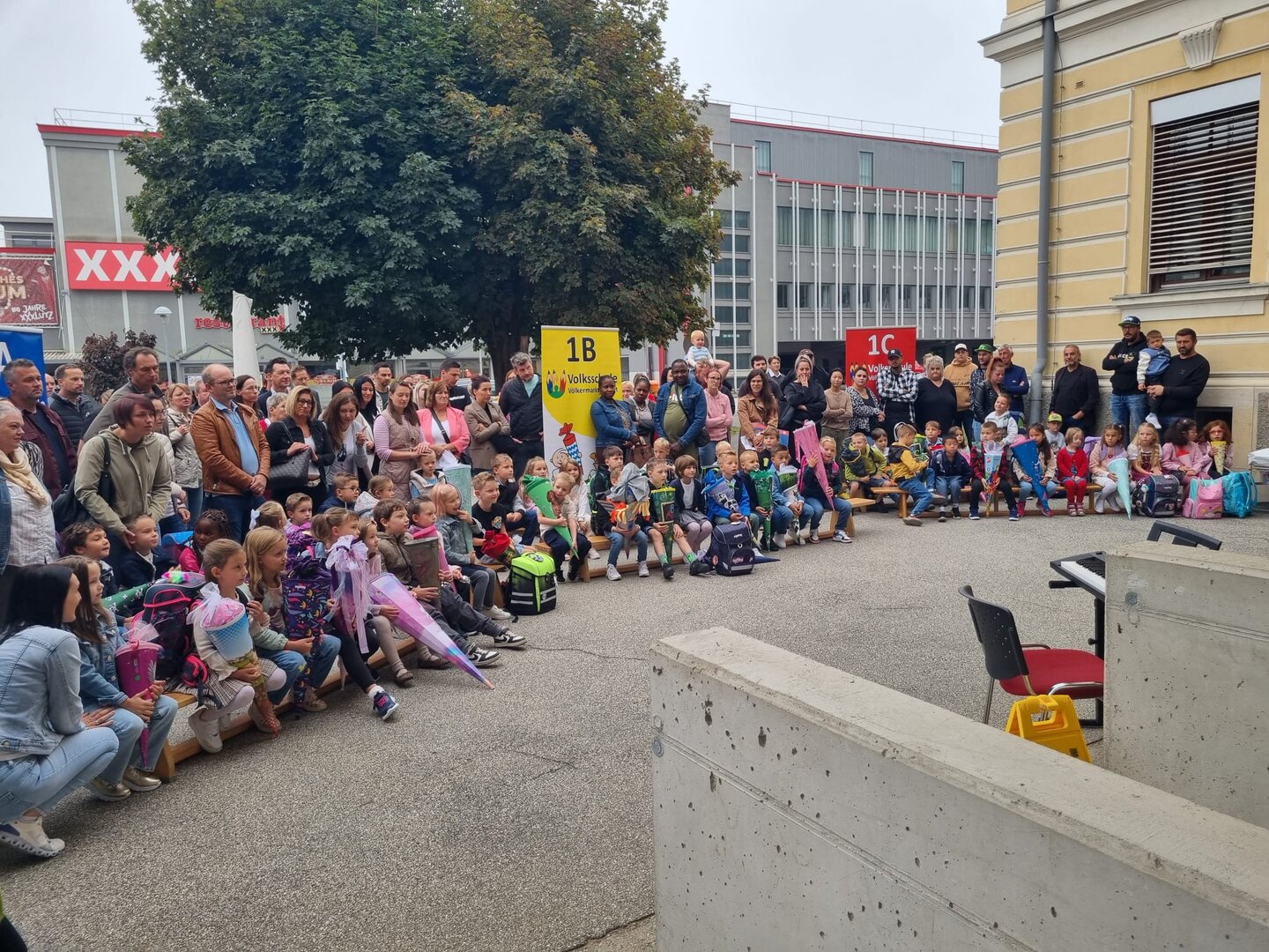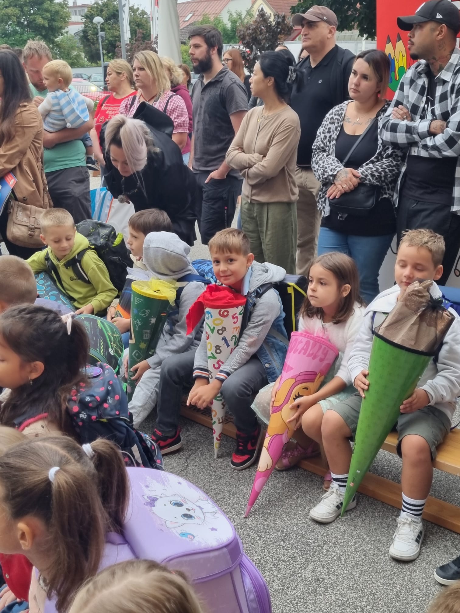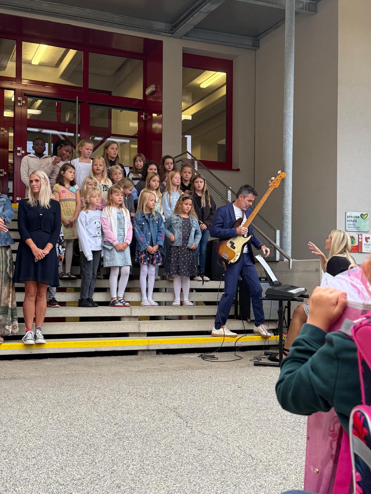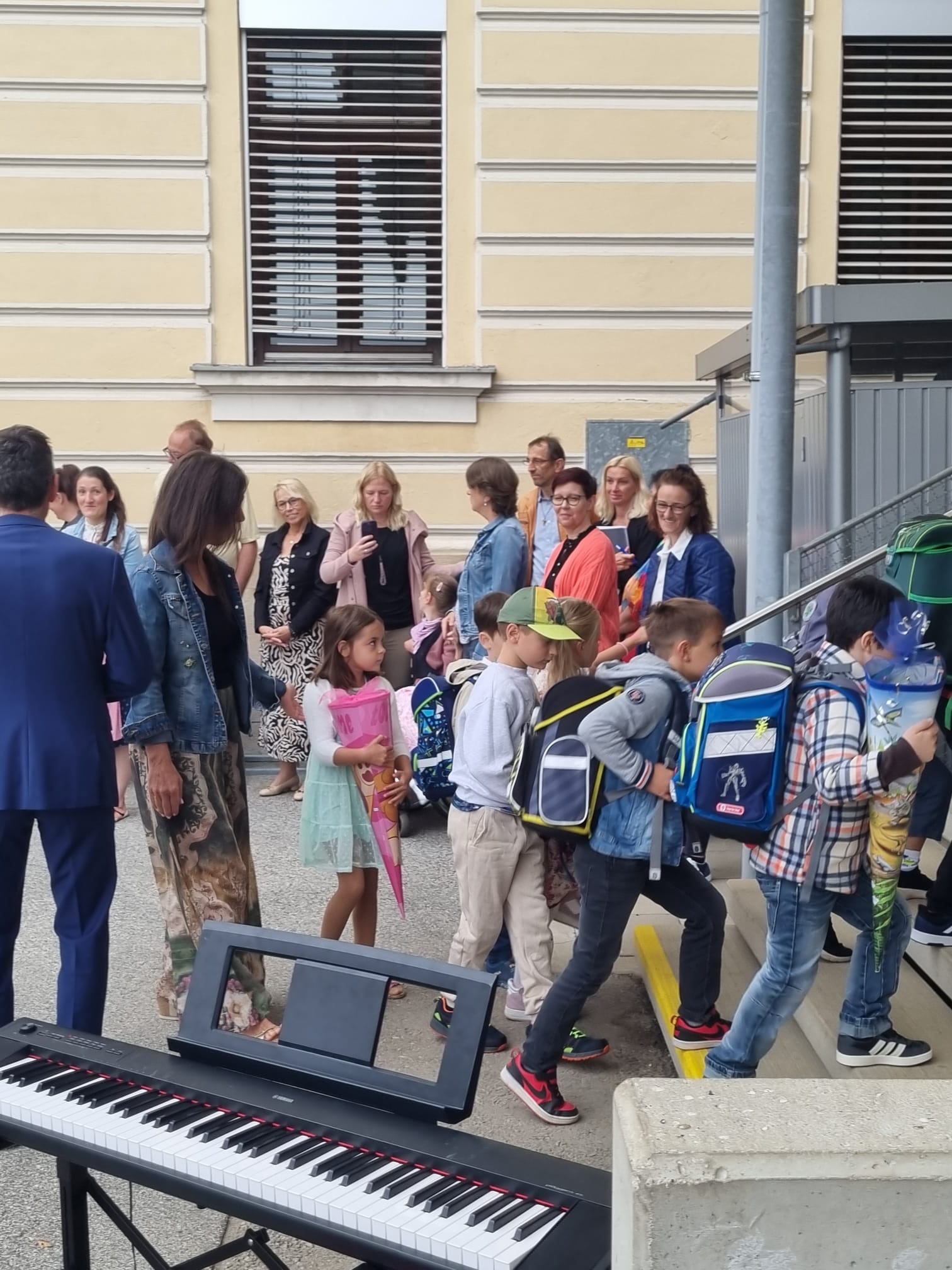 Am ersten Schultag war die Aufregung groß. Die Schüler und Schülerinnen der 1. Klassen versammelten sich vor der Schule. Der Direktor begrüßte alle herzlich und hieß sie im neuen Schuljahr willkommen. Auch der Schulchor trat auf und stimmte einige fröhliche Lieder an. Danach ging jedes Kind in seine Klasse – die einen noch etwas nervös, die anderen bereits gespannt, was der erste Schultag in der neuen Klasse bringen würde. Der Tag begann also mit einer herzlichen und positiven Begrüßung, die den Grundstein für ein spannendes und lehrreiches Schuljahr legte.