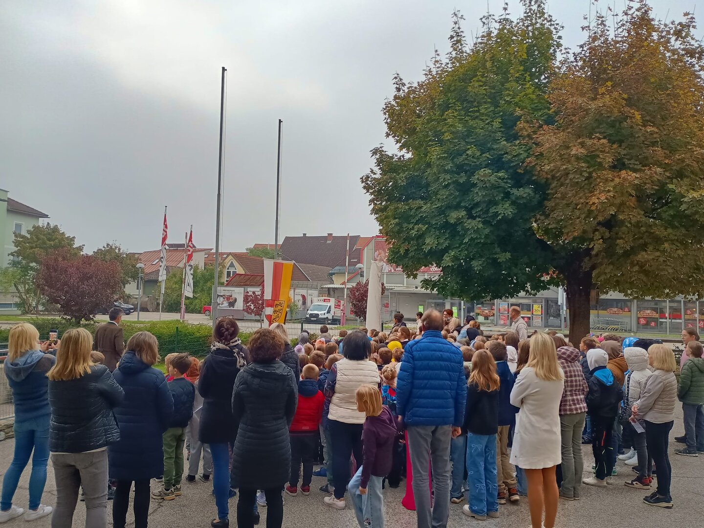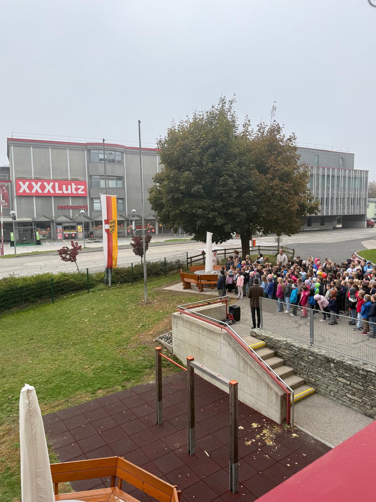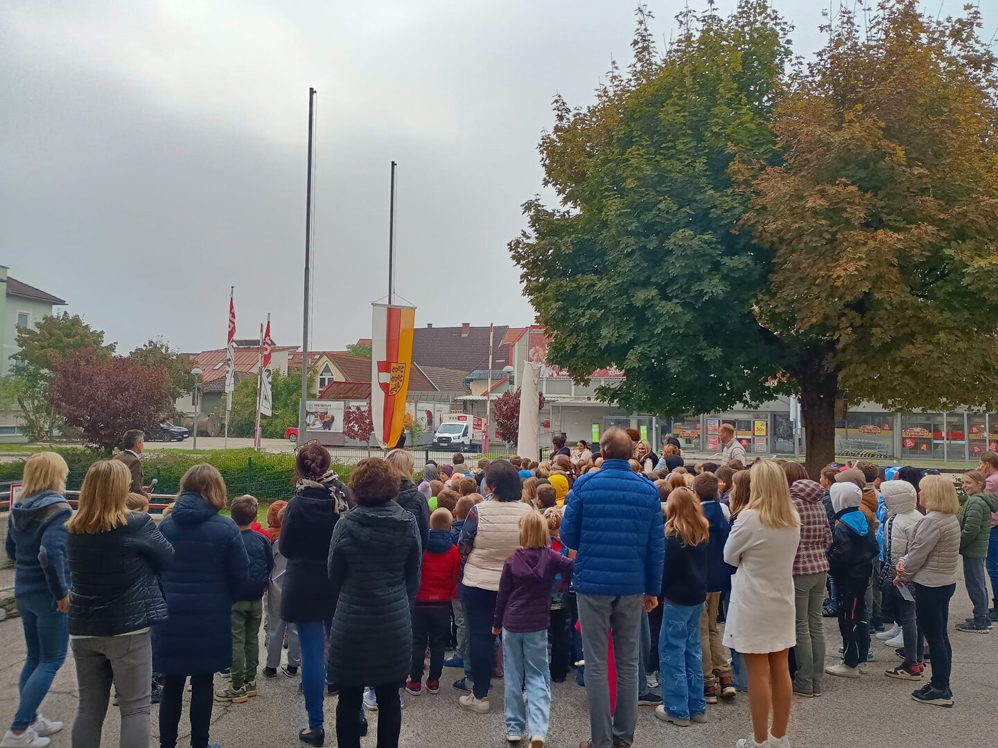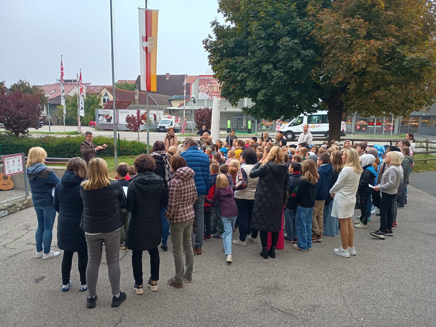 Am 09. Oktober fand vor der Schule eine gemeinsame Feier zum Kärntner Landesfeiertag statt. Alle Klassen versammelten sich im Schulhof, um an diesen besonderen Tag zu erinnern.