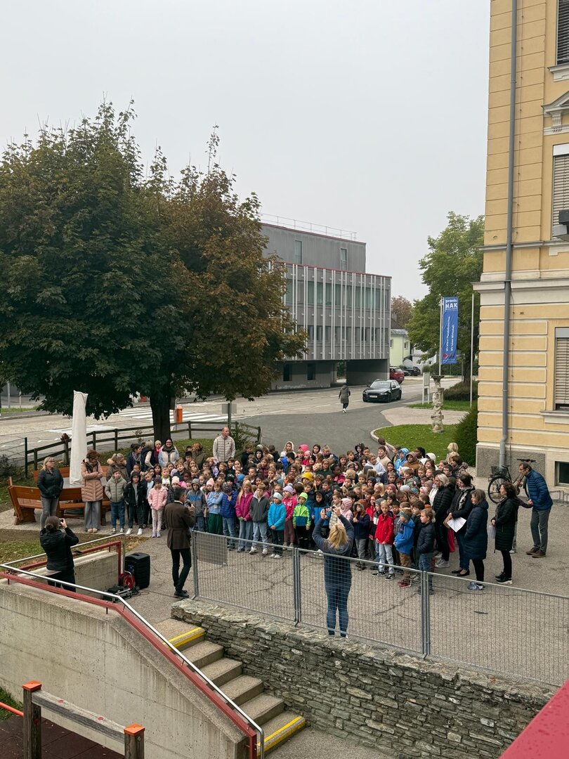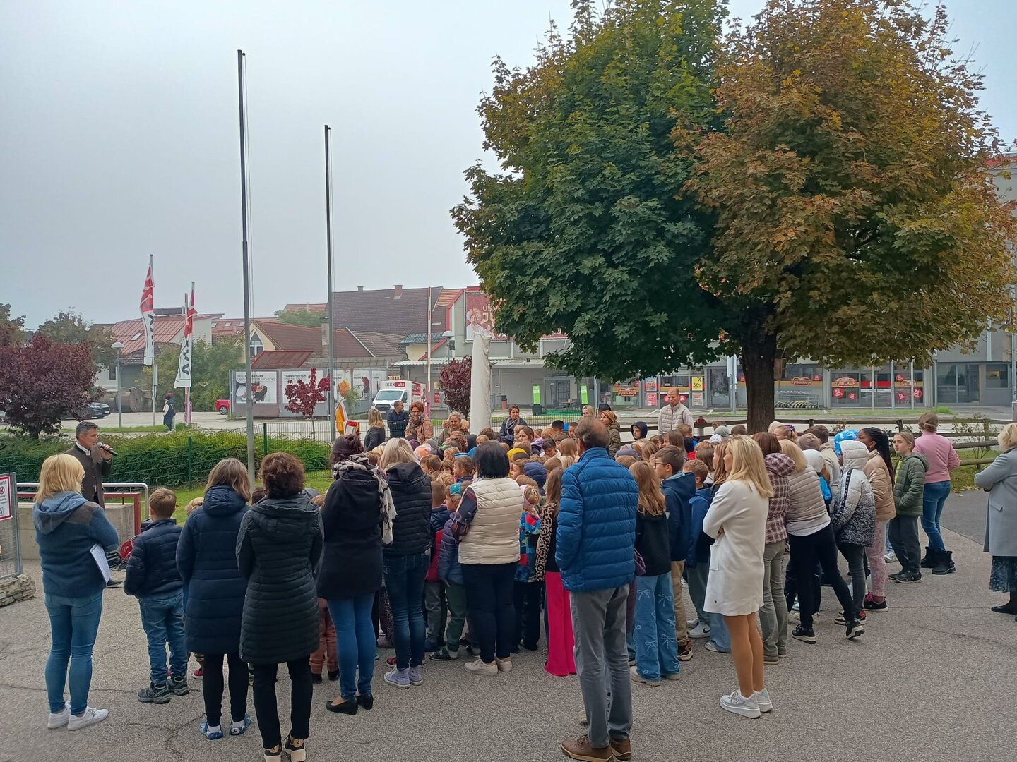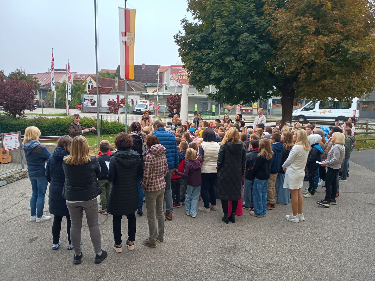 Am 09. Oktober fand vor der Schule eine gemeinsame Feier zum Kärntner Landesfeiertag statt. Alle Klassen versammelten sich im Schulhof, um an diesen besonderen Tag zu erinnern.