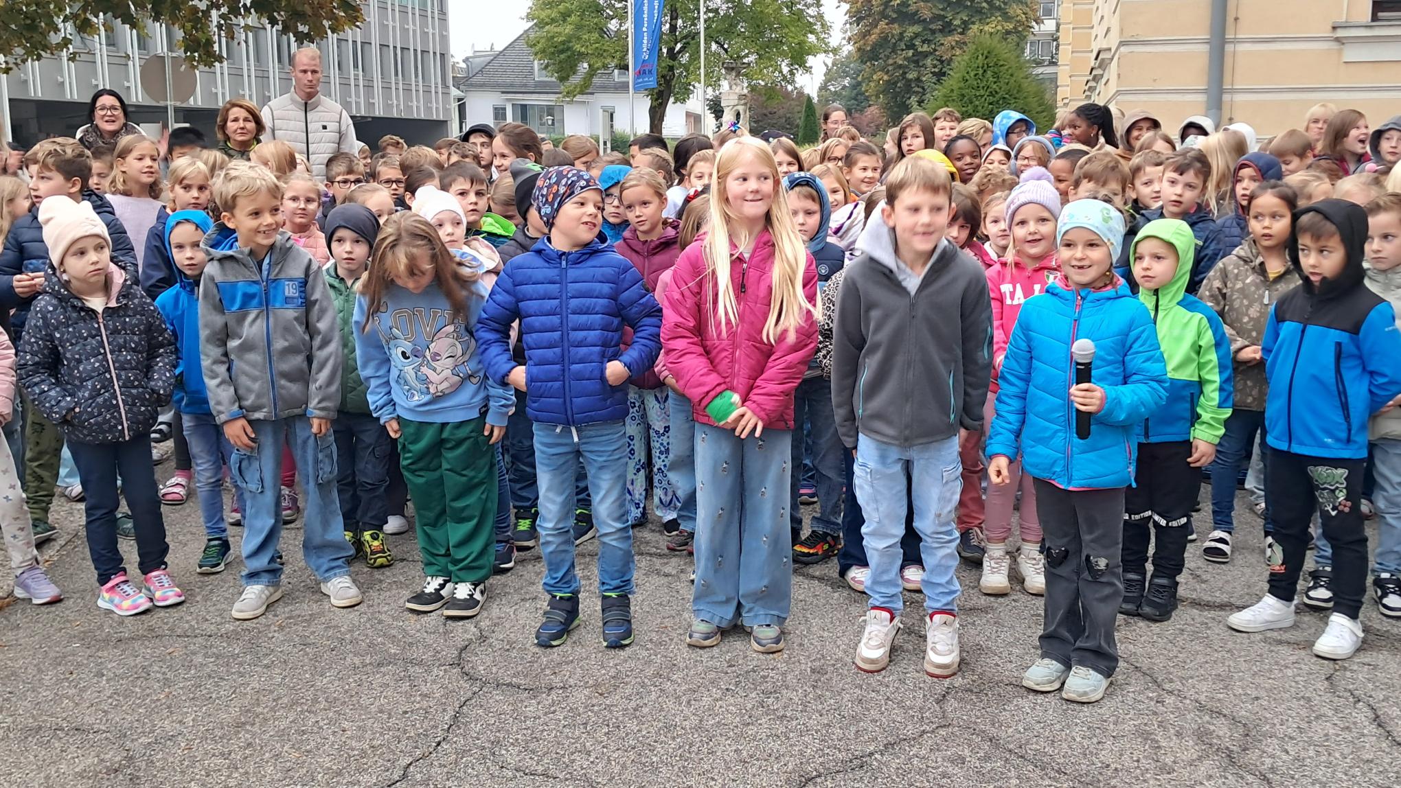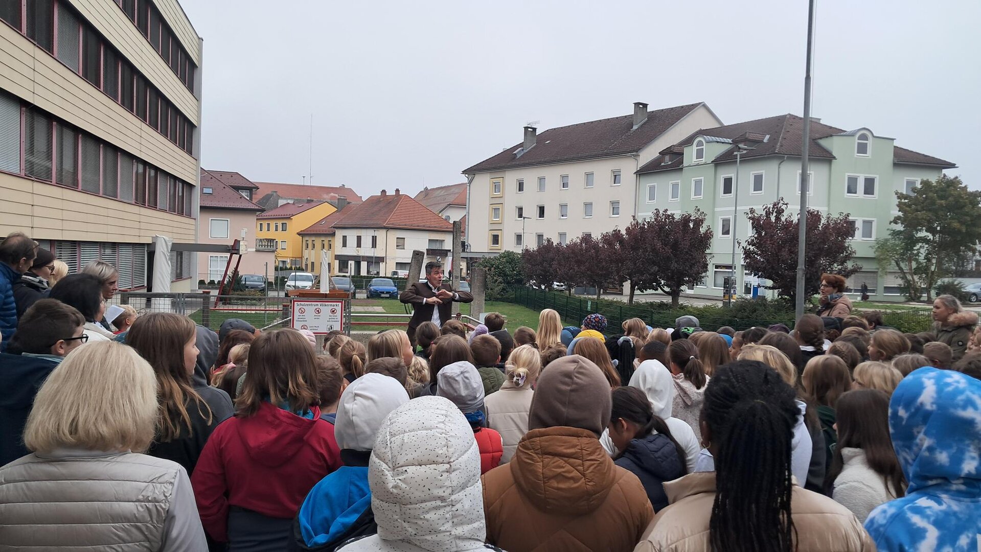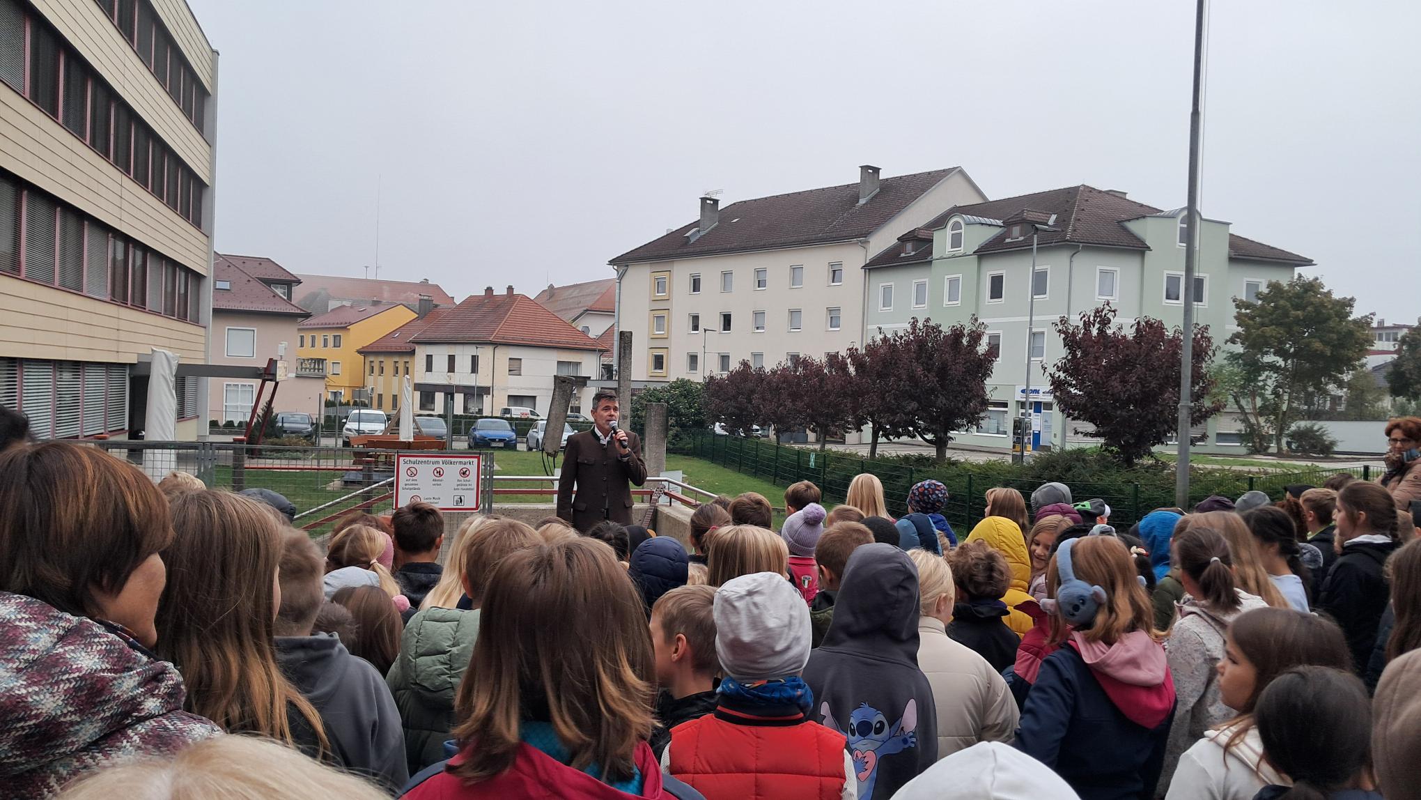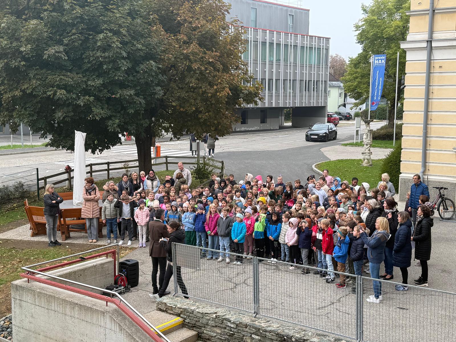 Am 09. Oktober fand vor der Schule eine gemeinsame Feier zum Kärntner Landesfeiertag statt. Alle Klassen versammelten sich im Schulhof, um an diesen besonderen Tag zu erinnern.