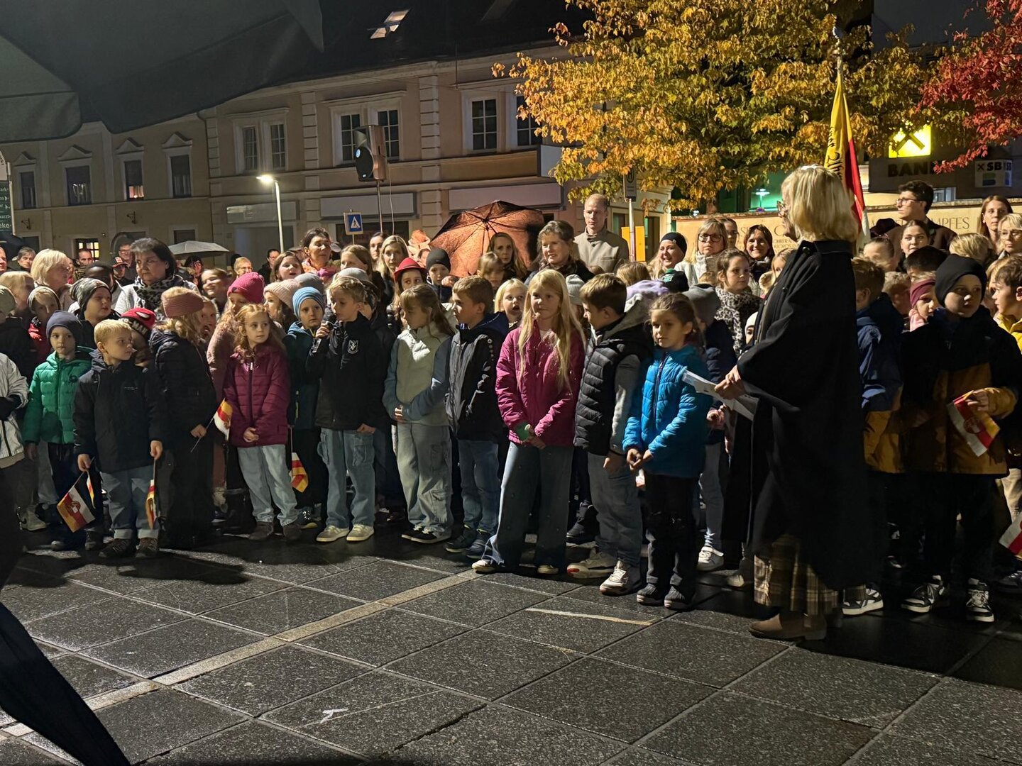 Am Abend nahm die Volksschule Völkermarkt – Stadt wieder an der 10.Oktober Feier der Stadtgemeinde teil. Trotz des regnerischen Wetters versammelten sich zahlreiche Besucherinnen und Besucher. Die Kinder der Volksschule gestalteten einen kurzen Beitrag mit Lied und Gedicht und brachten damit Wärme und Freude in die feierliche Stimmung. Mit großem Einsatz und Begeisterung sangen und sprachen sie ihre Texte – der Applaus des Publikums war der schönste Lohn für ihren Mut und ihr Engagement.