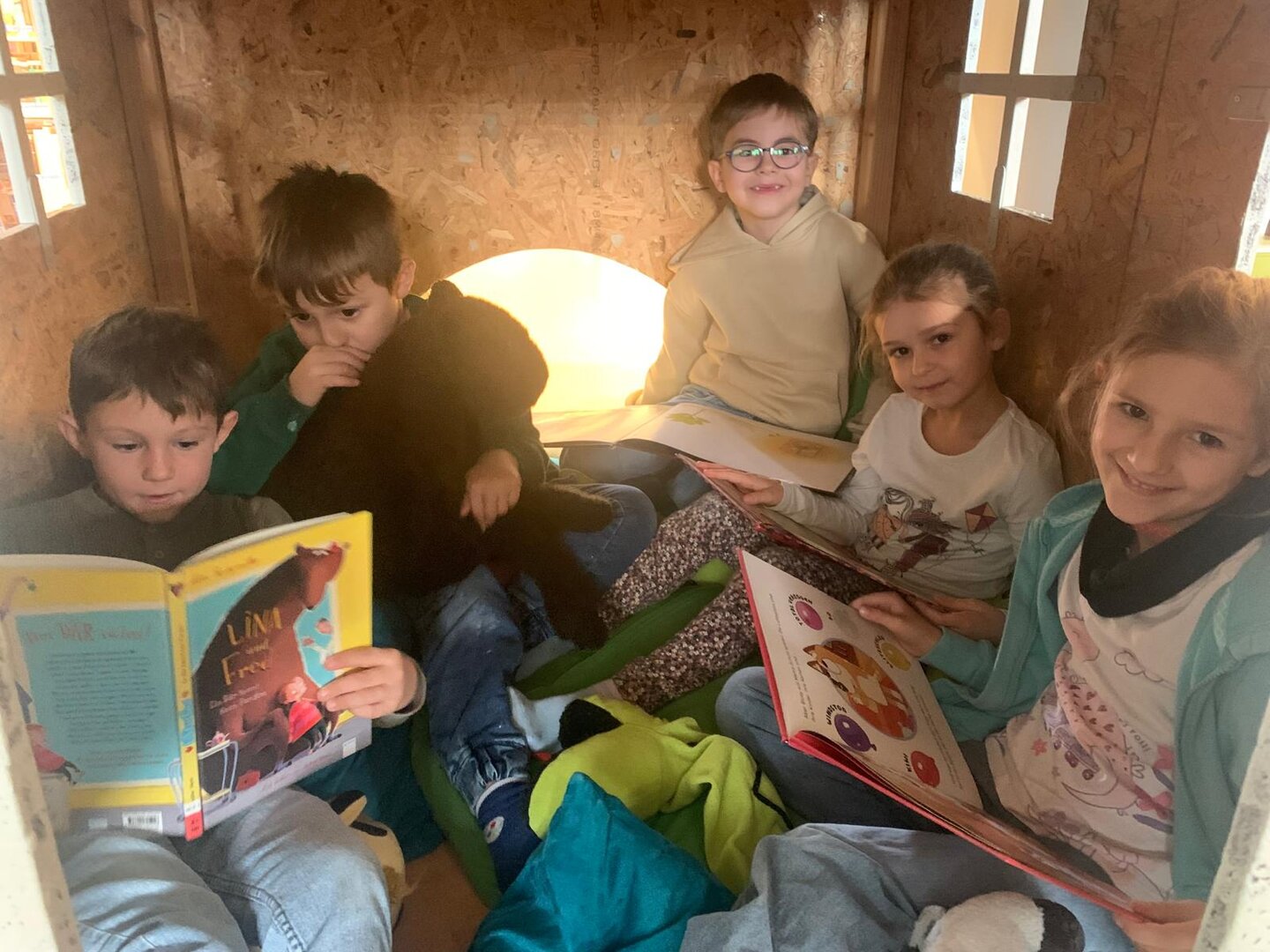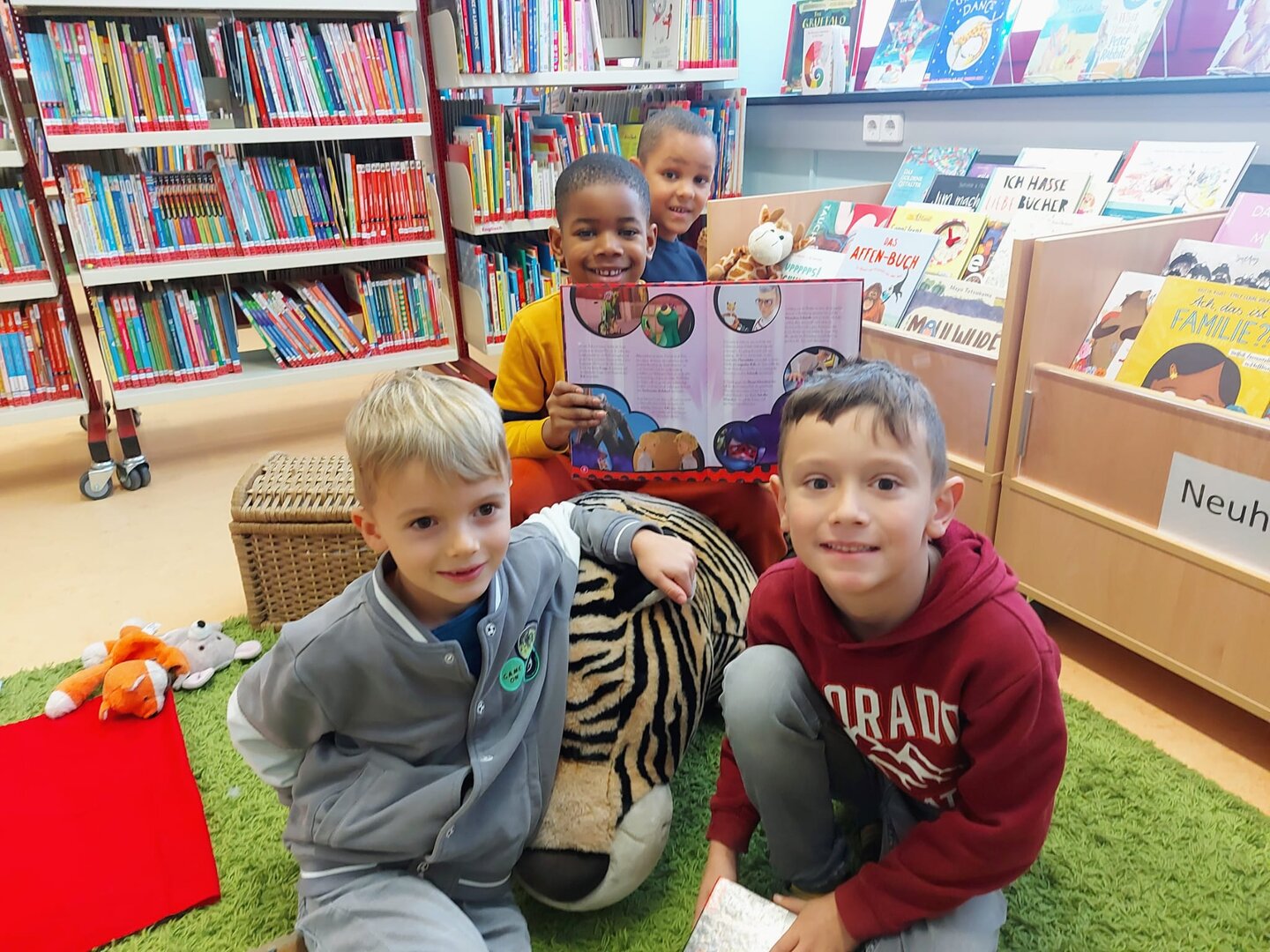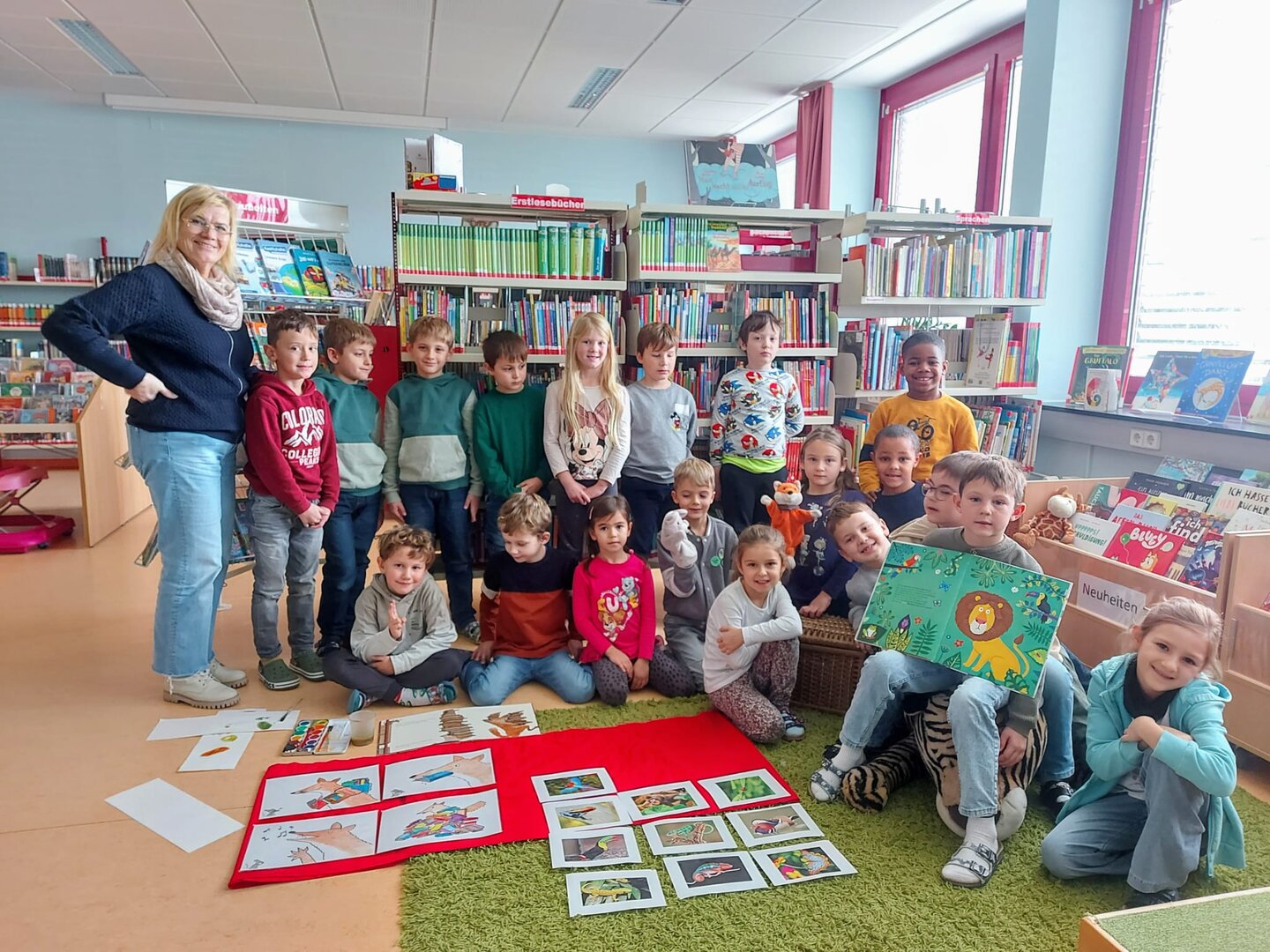 Heute besuchten die Kinder der 1A Klasse die Mediathek. Schnell verstanden sie die 4 wichtigsten Regeln, die es hier zu beachten gibt. Nach der Geschichte vom Löwen, der sich beim Mischen von Farben besser von den Erstklässlern helfen lassen sollte, blätterten die Kinder in Büchern, kuschelten mit dem neuen Tiger der Mediathek oder legten sich mit einem Buch ins Lebkuchenhaus. Ich freue mich schon auf die nächste Stunde mit euch!