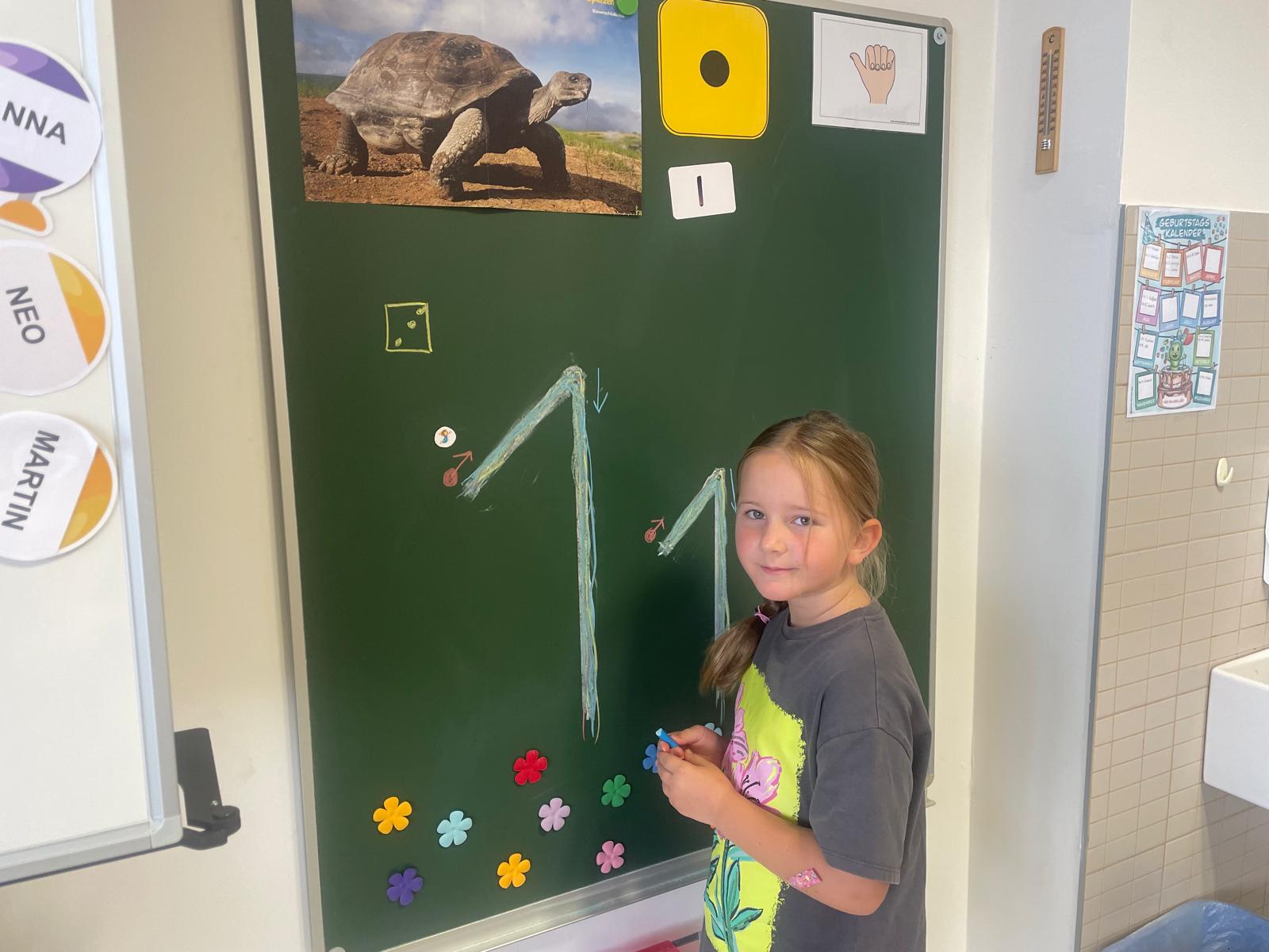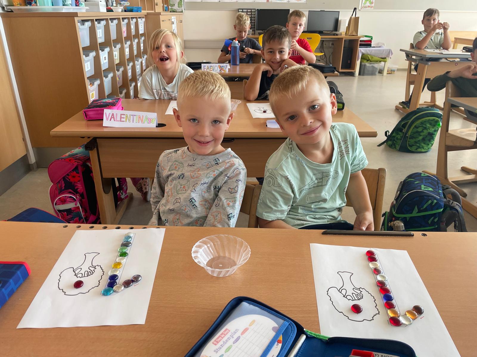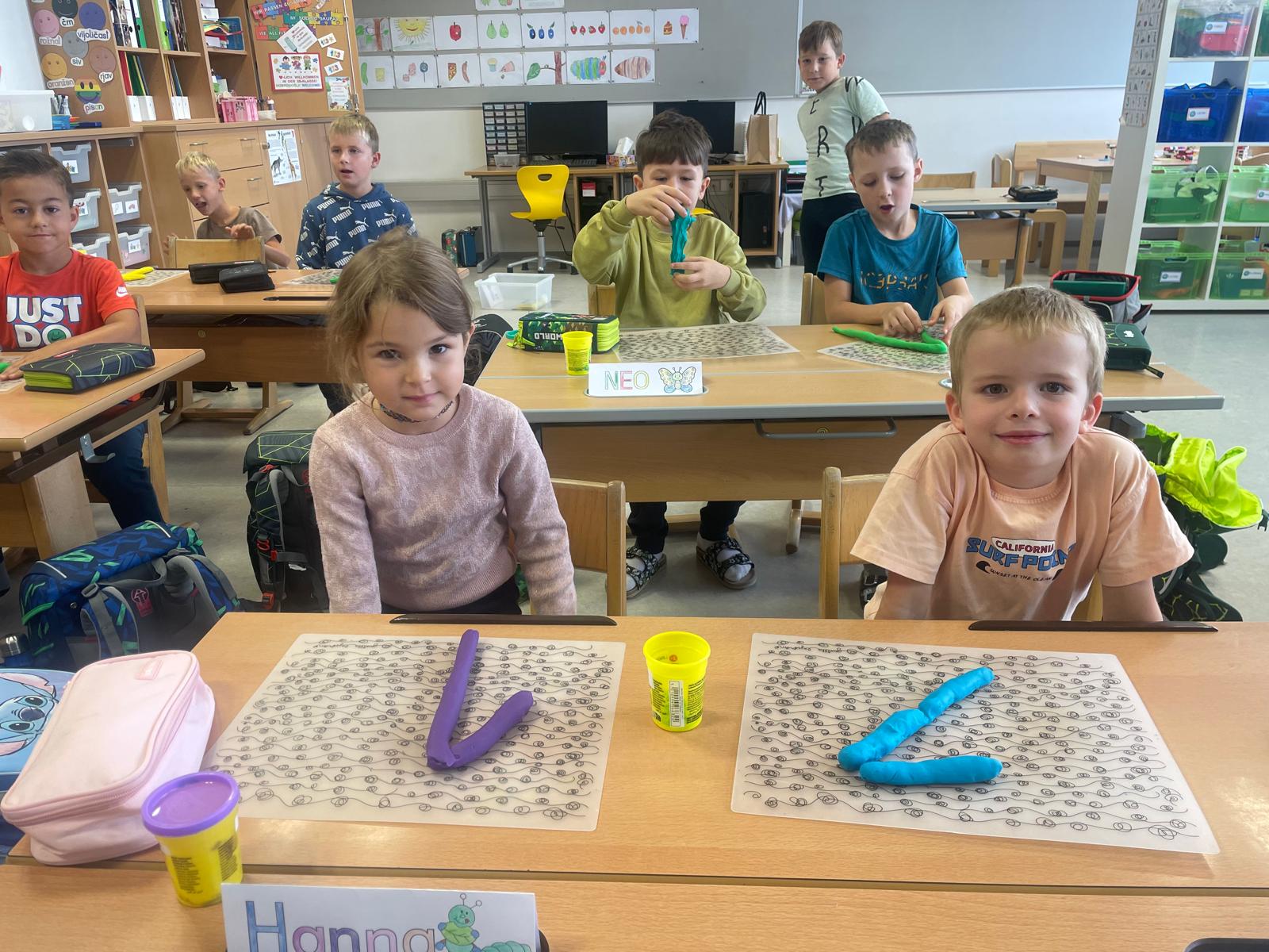 Mit Freude haben die Kinder der 1B-Klasse die Ziffer 1 geübt. Otroci so z veseljem vadili številko 1.