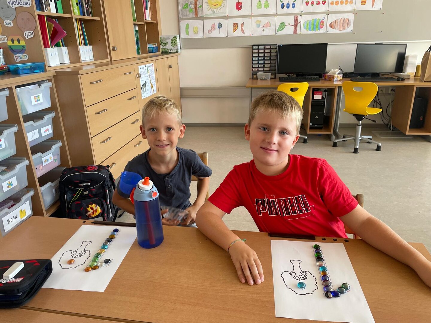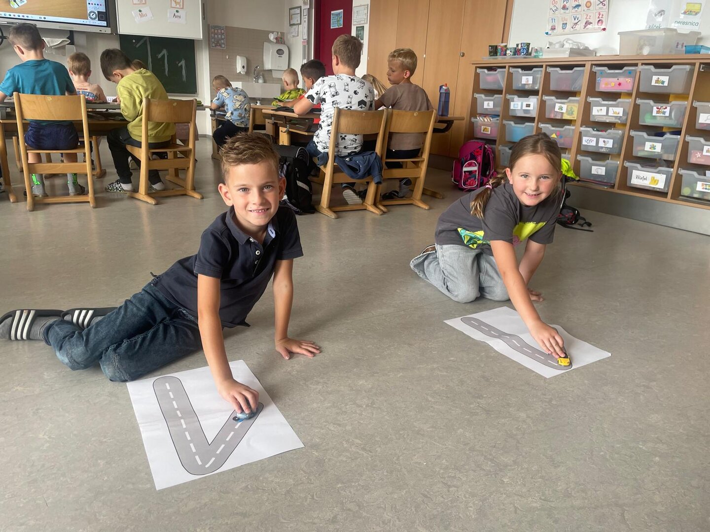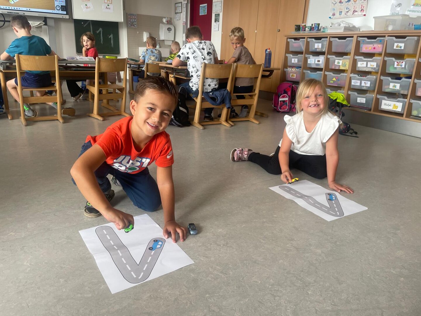 Mit Freude haben die Kinder der 1B-Klasse die Ziffer 1 geübt. Otroci so z veseljem vadili številko 1.