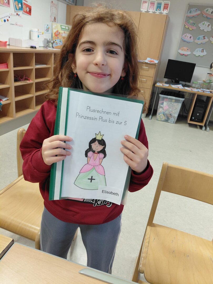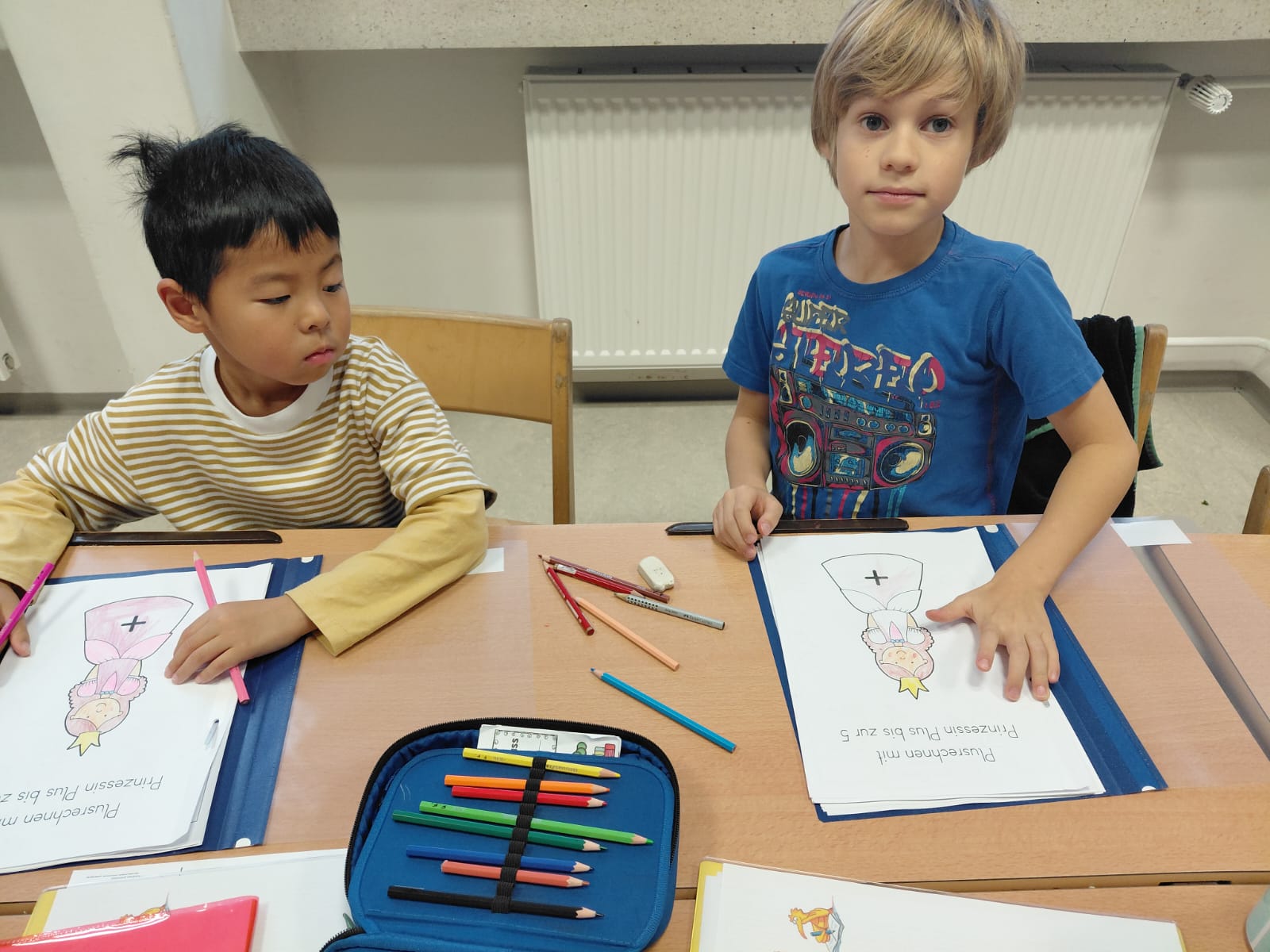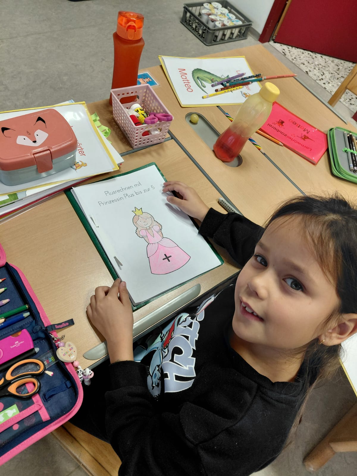 Die Kinder rechnen ihre ersten Additionsaufgaben.