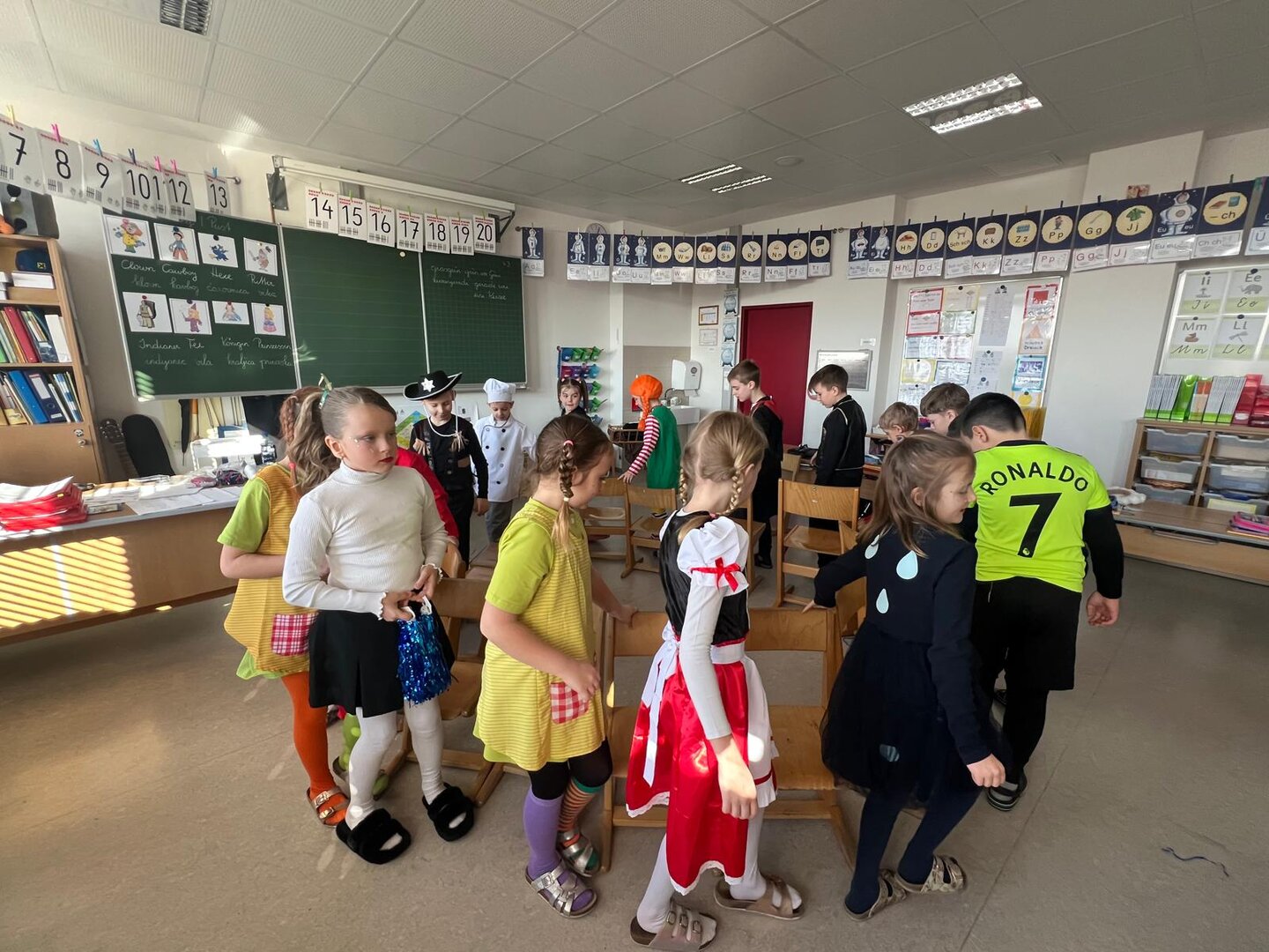 V razredu so bile same pustne šeme. Niso se učile, temveč zabavale so se.