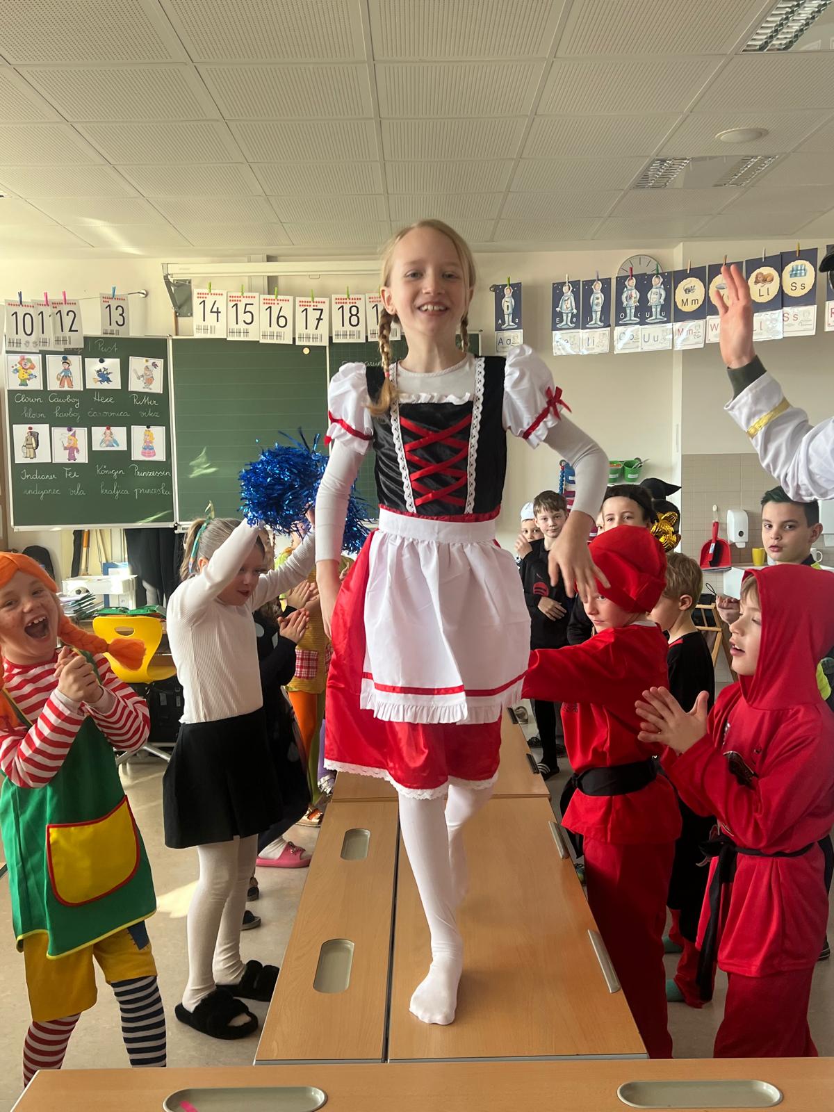 Am Faschingsdienstag kamen alle Kinder der 2B Klasse verkleidet in die Schule. Gemeinsam wurde getanzt, gespielt und gelacht. Zum Schluss gab es eine Polonaise durch die ganze Schule!