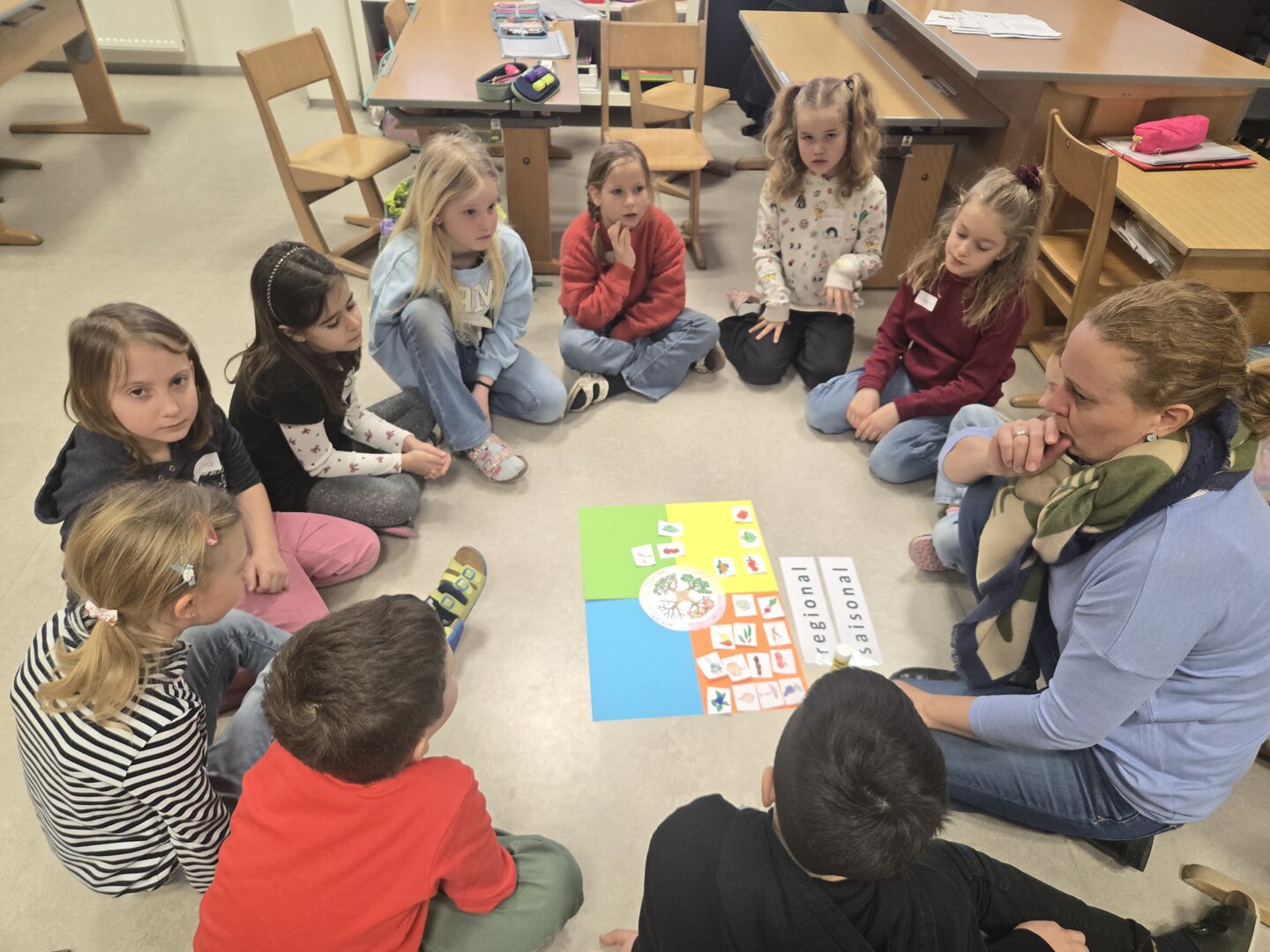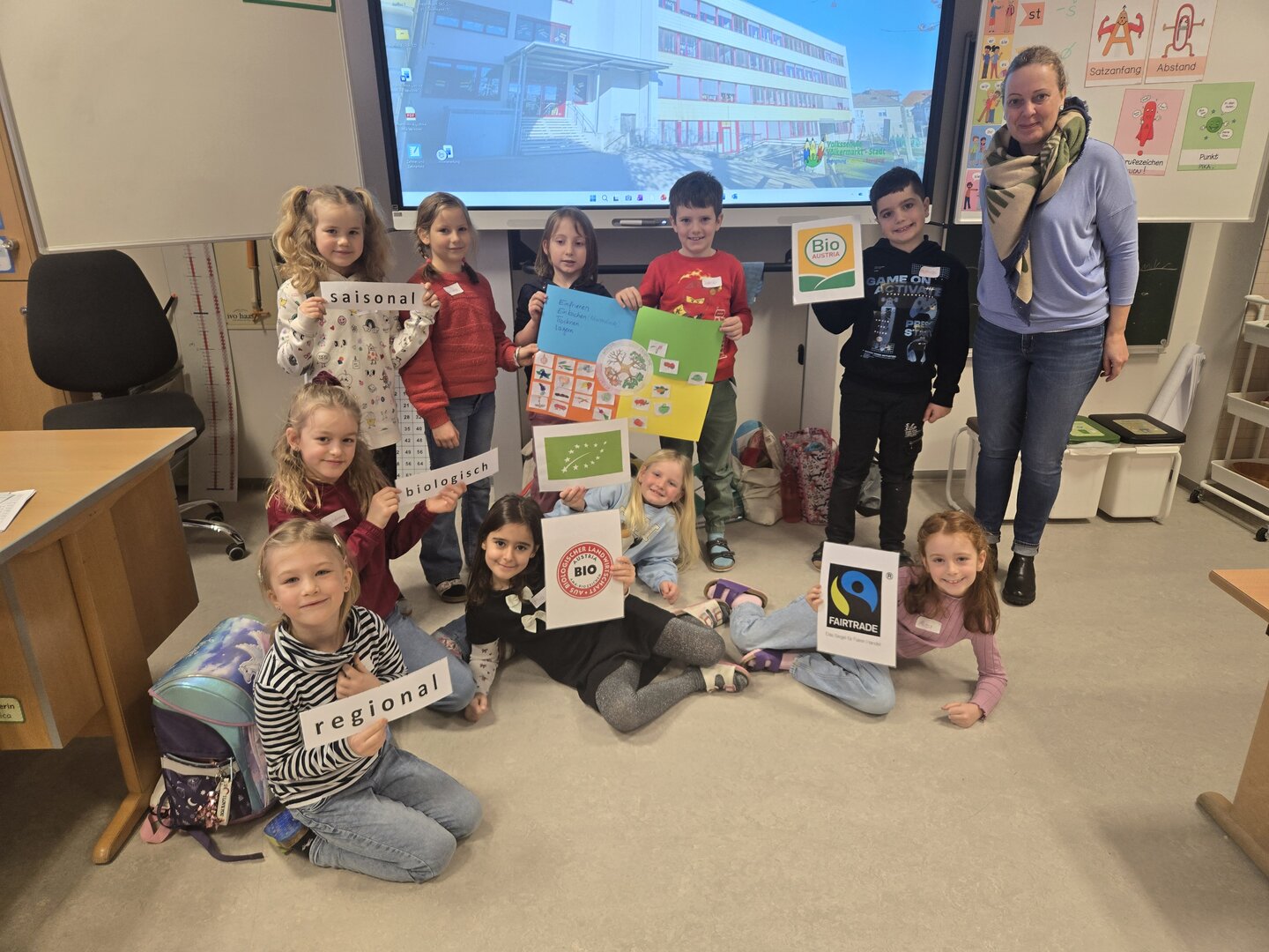 Die Kinder der 2B beschäftigten sich mit klimafreundlichem Essen. Dabei lernten sie, welche Lebensmittel gut für unsere Umwelt sind und wie kleine Entscheidungen beim Essen einen großen Unterschied machen können.