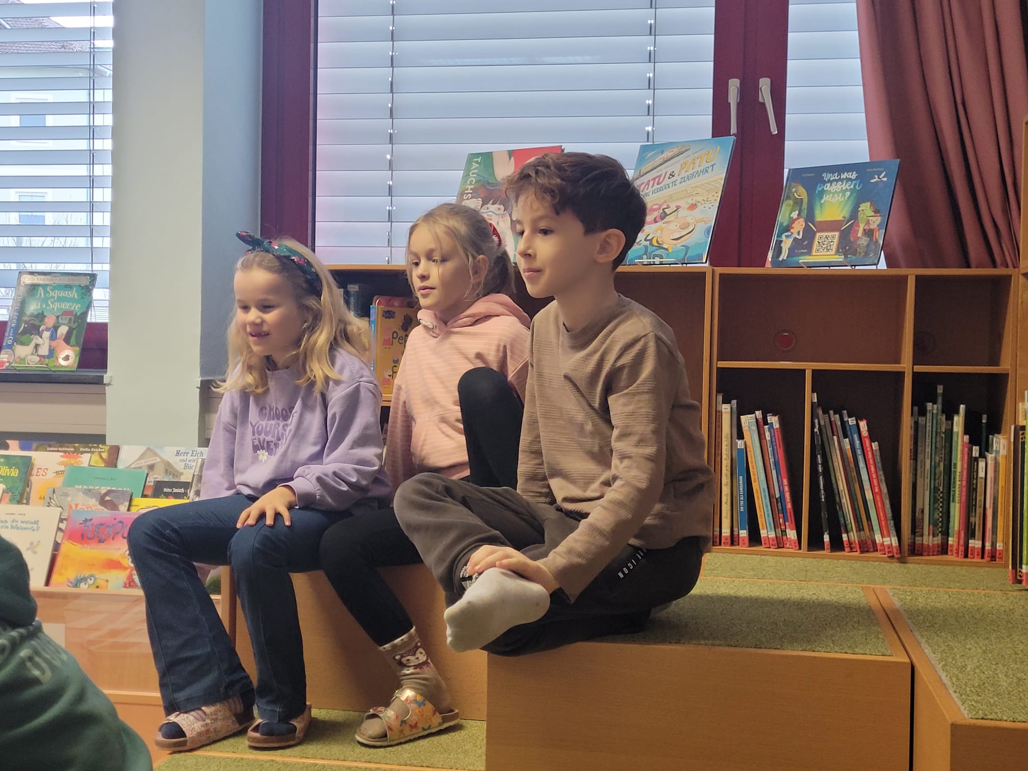 2.B razred je preživel čudovito uro v knjižnici. Otroci so spoznali zanimivosti o opicah in se prepustili branju iz knjige »Urwaldtrip«. Nato so si knjige lahko še ogledali in si svoje najljubše tudi izposodili.