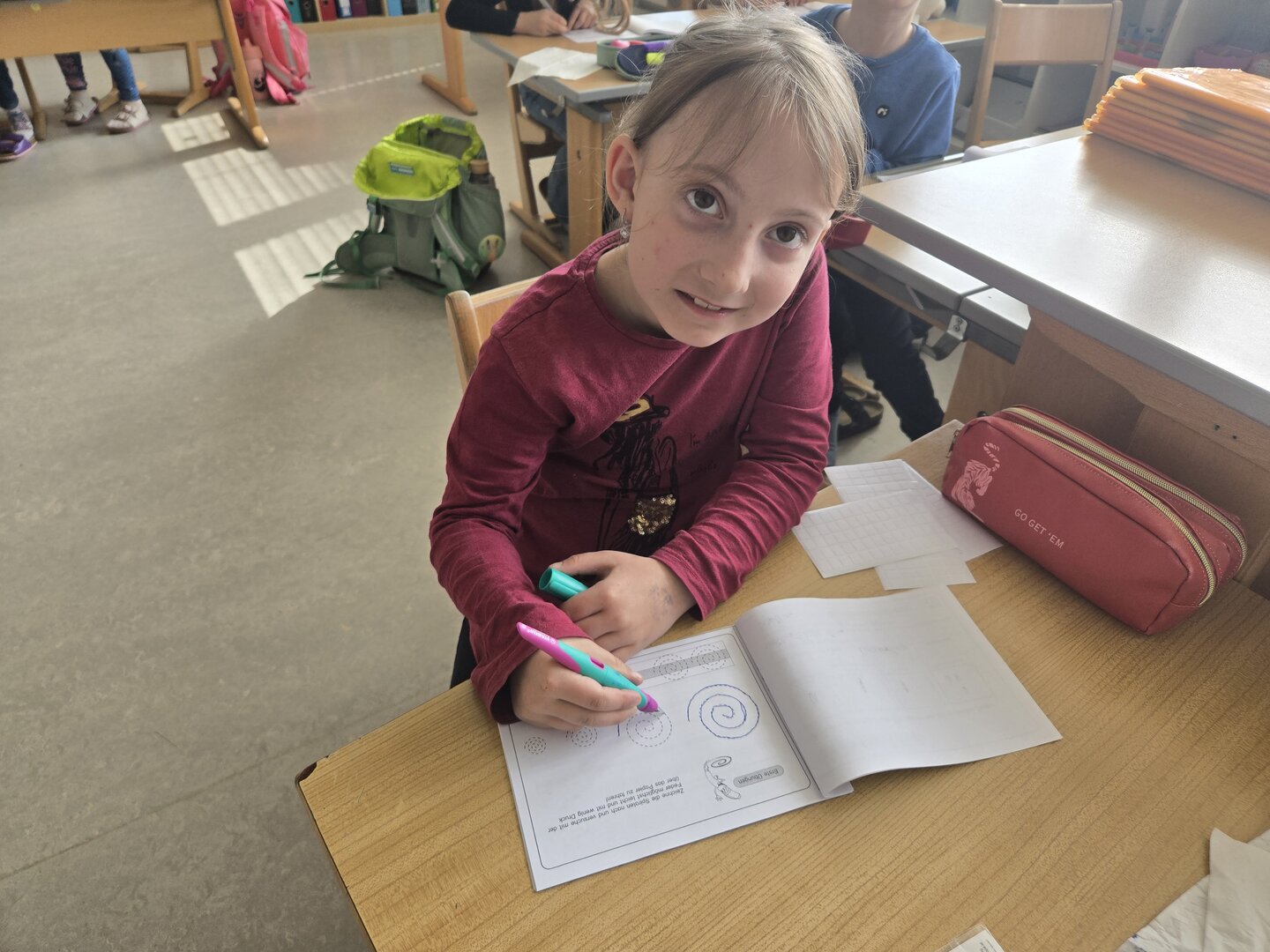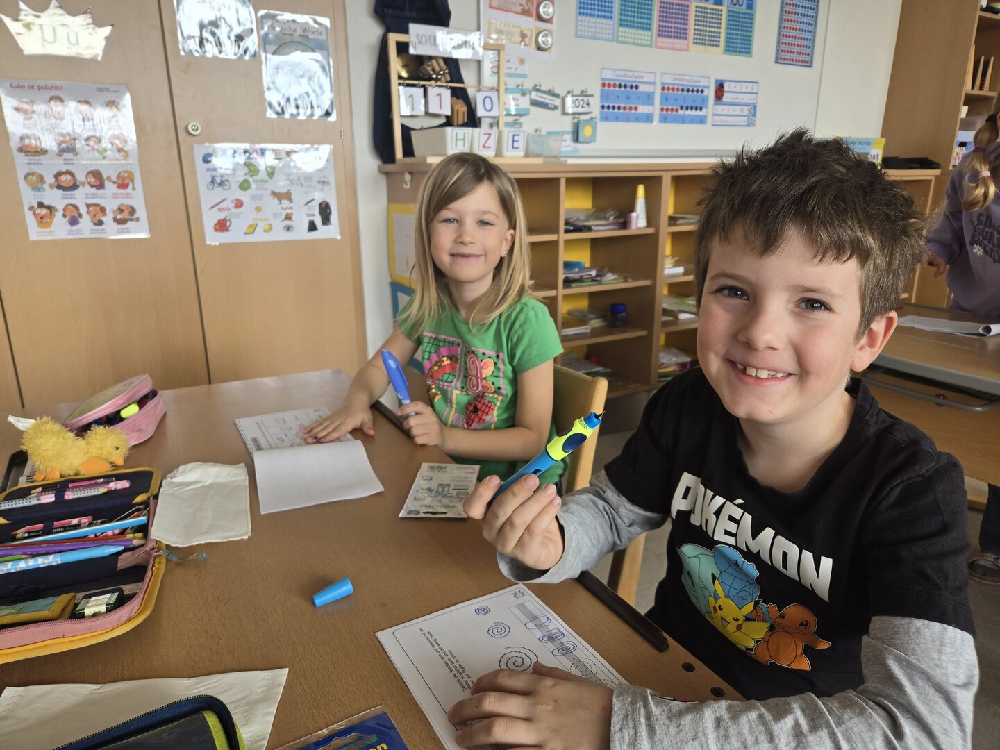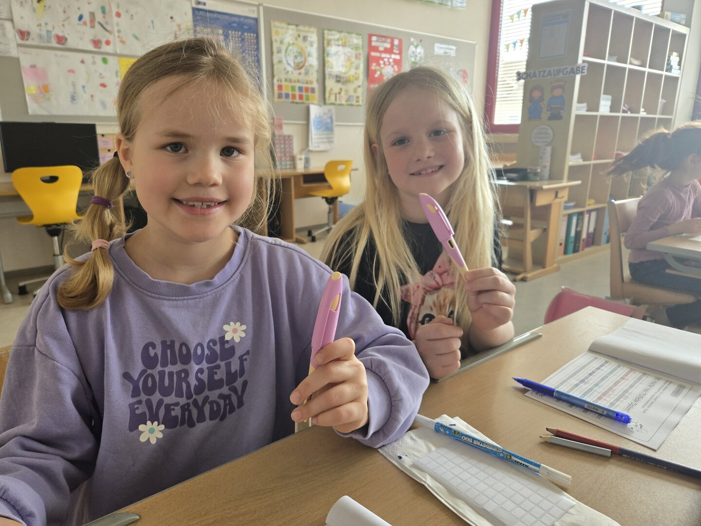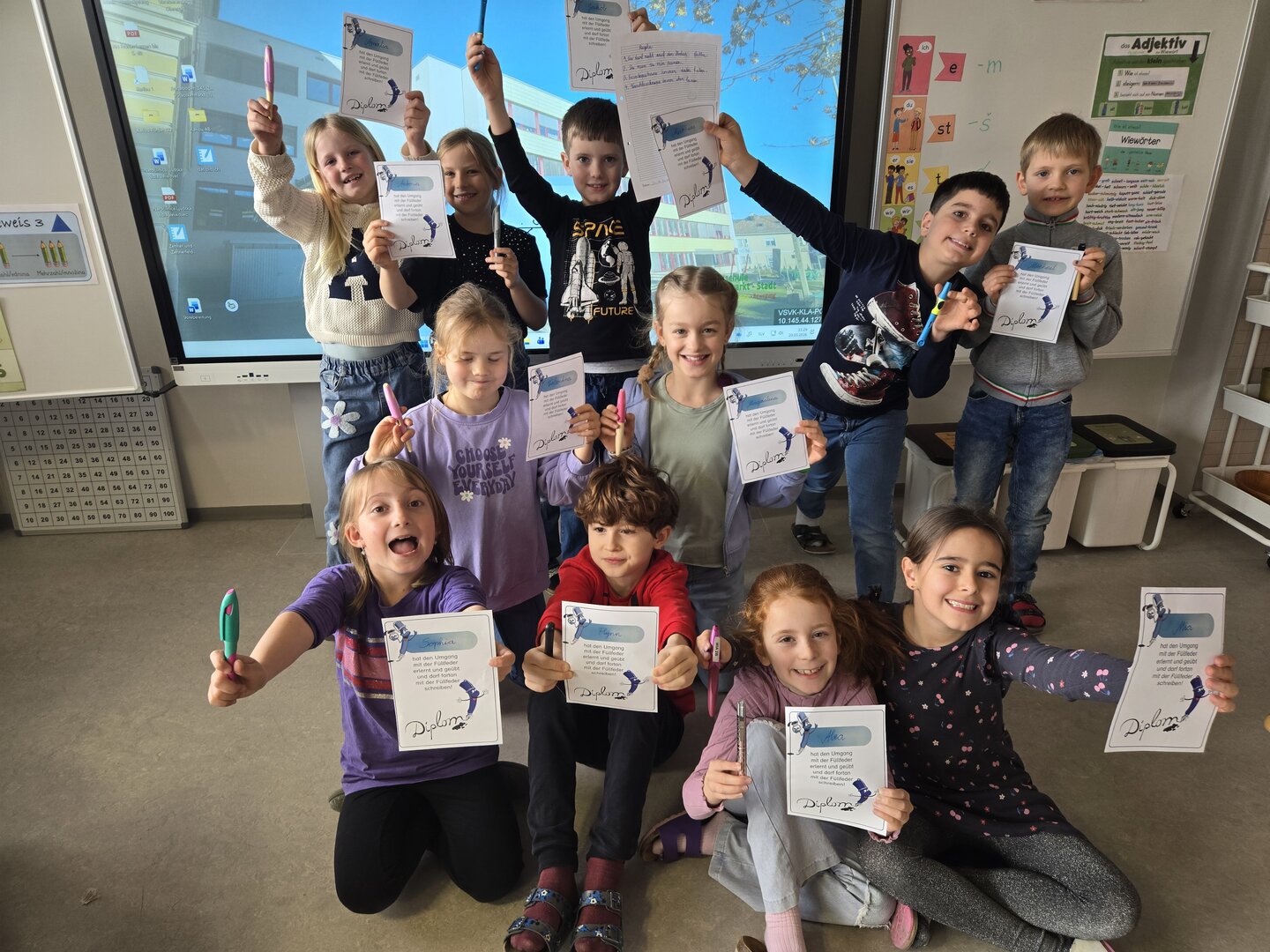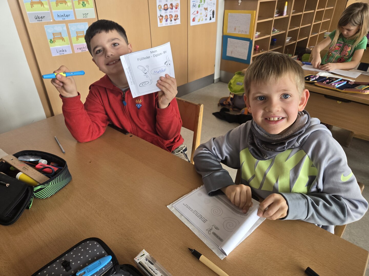 Die Kinder tauchten in die Welt des Schreibens mit der Füllfeder ein. Mit viel Geduld und Übung meisterten sie Schritt für Schritt den richtigen Umgang – und freuten sich am Ende über ihr wohlverdientes Füllfederdiplom.