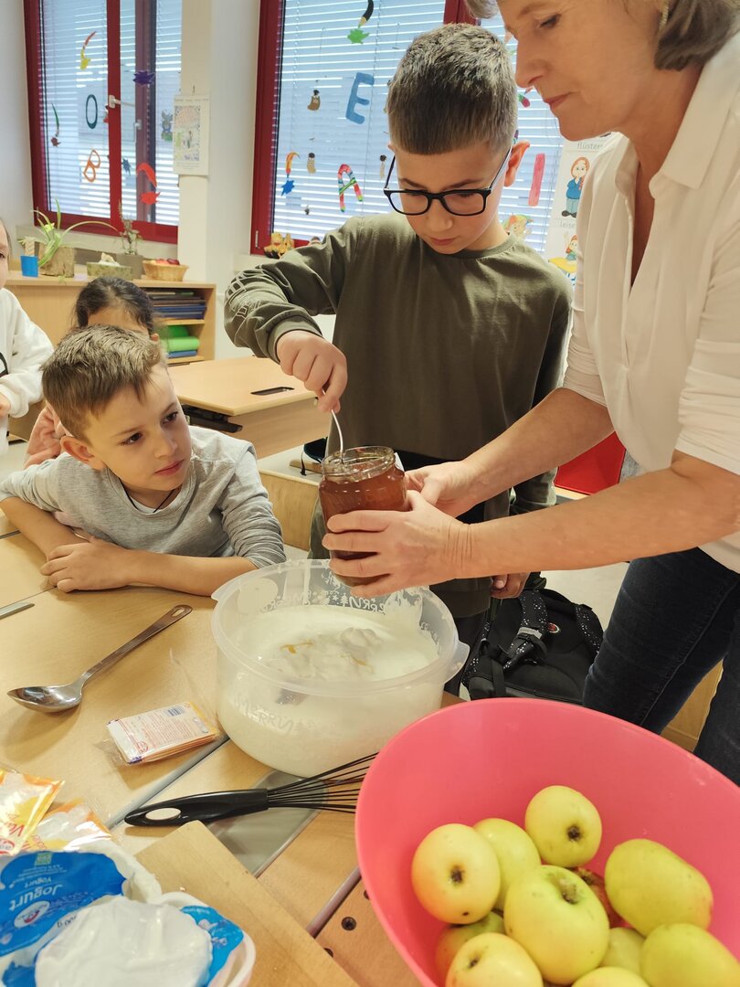 Apfelnachspeise und frisch gepresster Apfelsaft