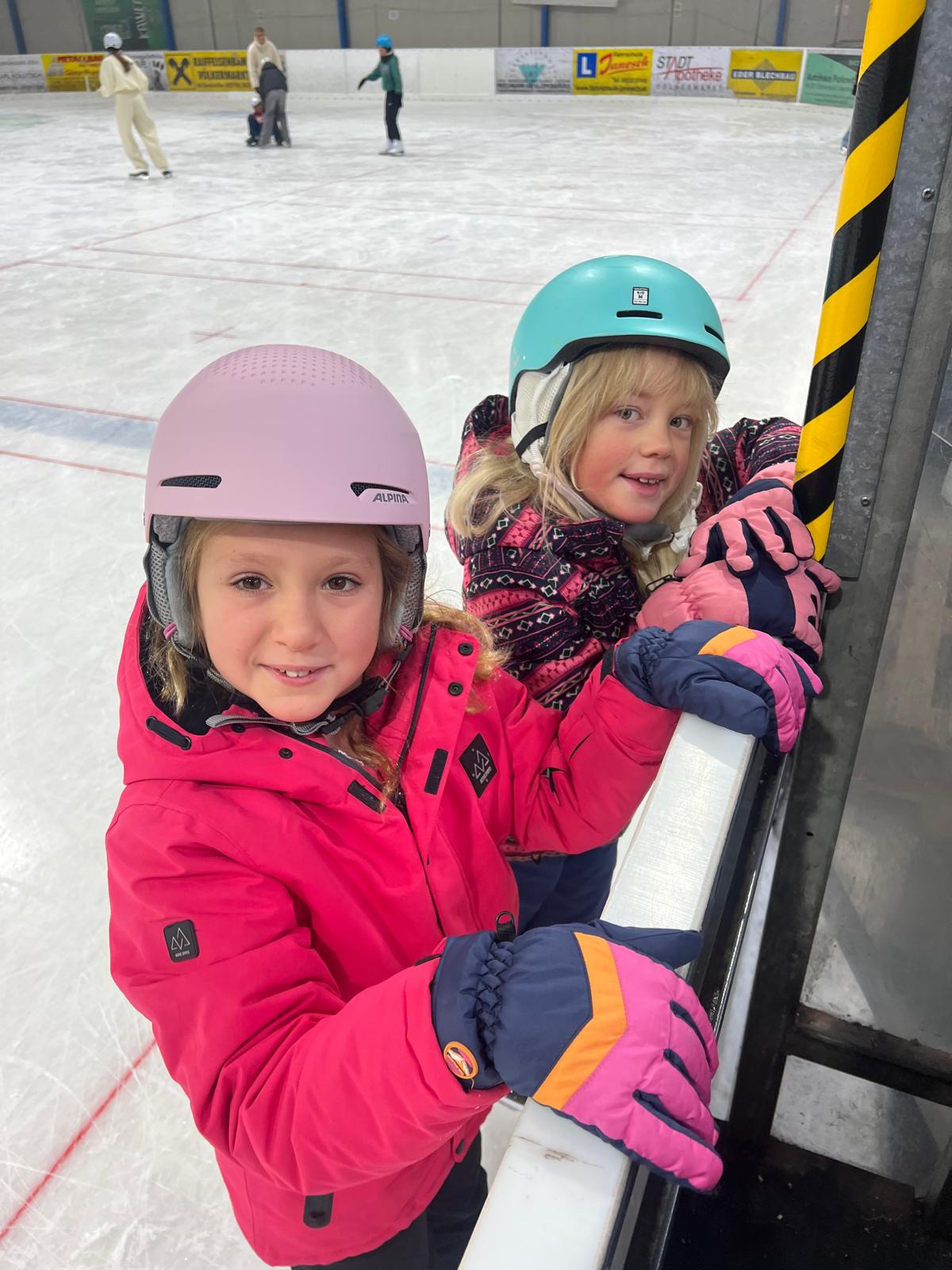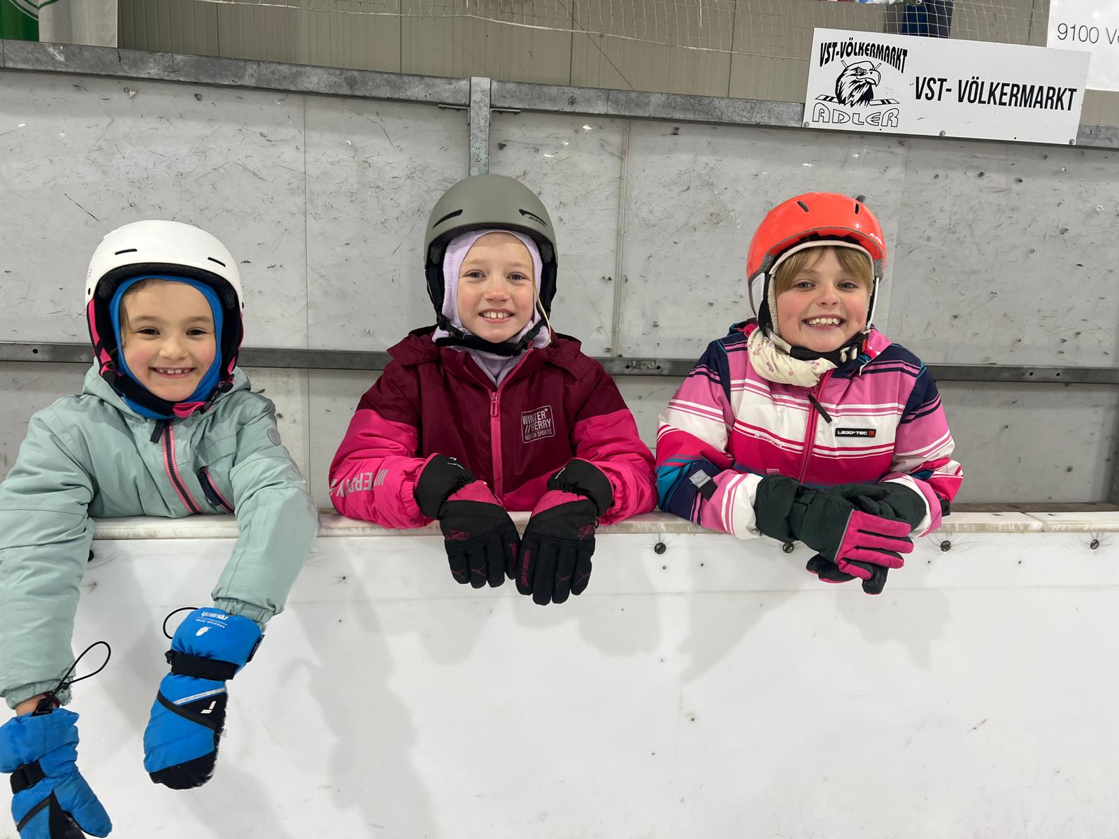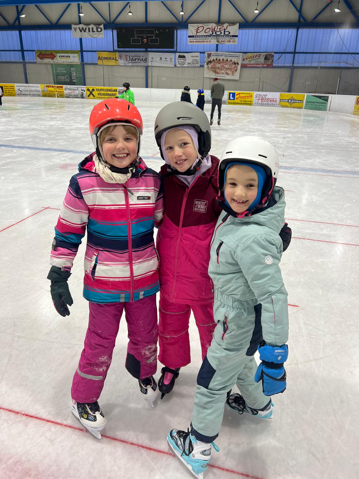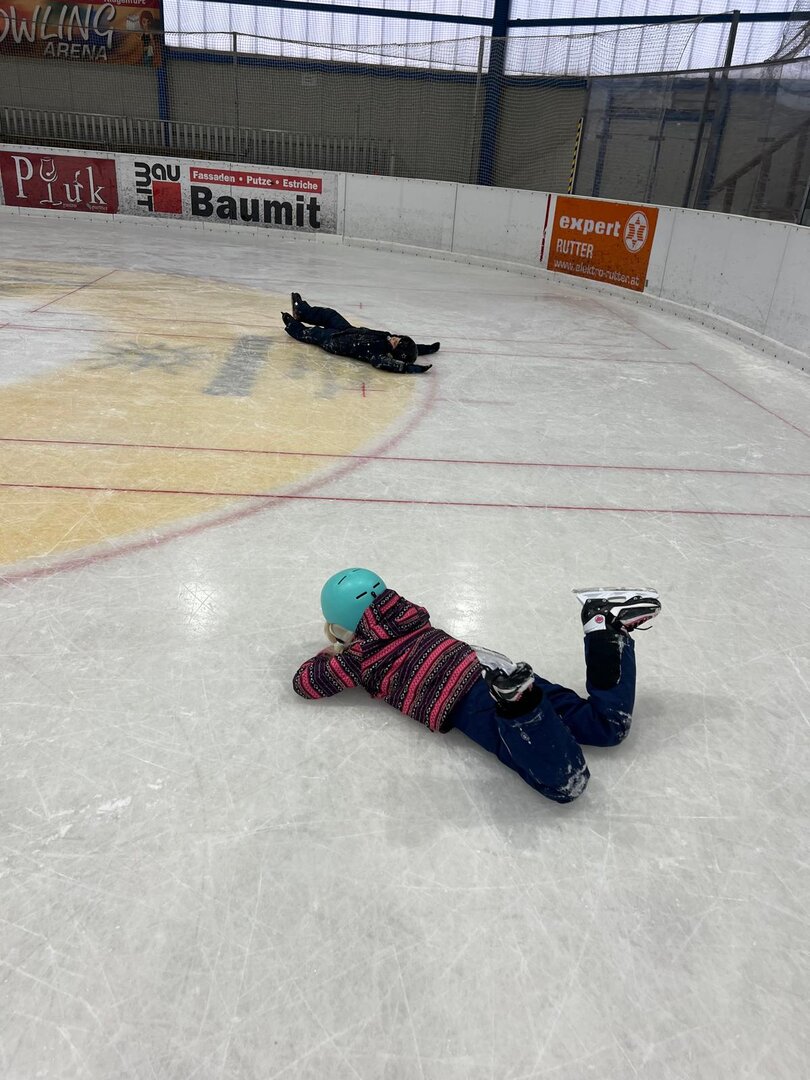 Nach den ersten vorsichtigen Schritten am Eis hatten alle riesengroßen Spaß beim Eislaufen, Ausprobieren neuer Techniken und kleinen Wettrennen.