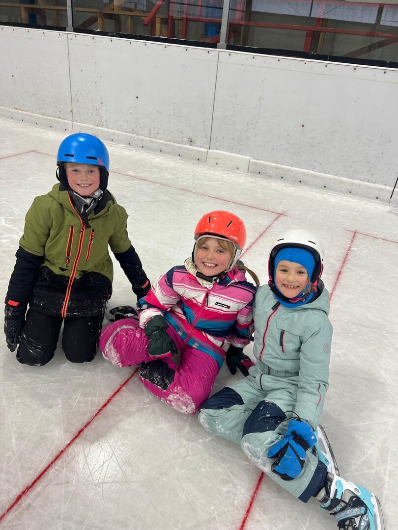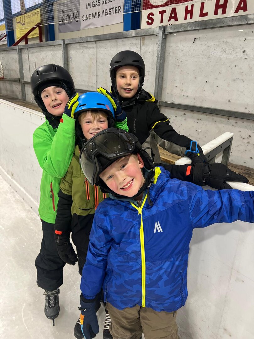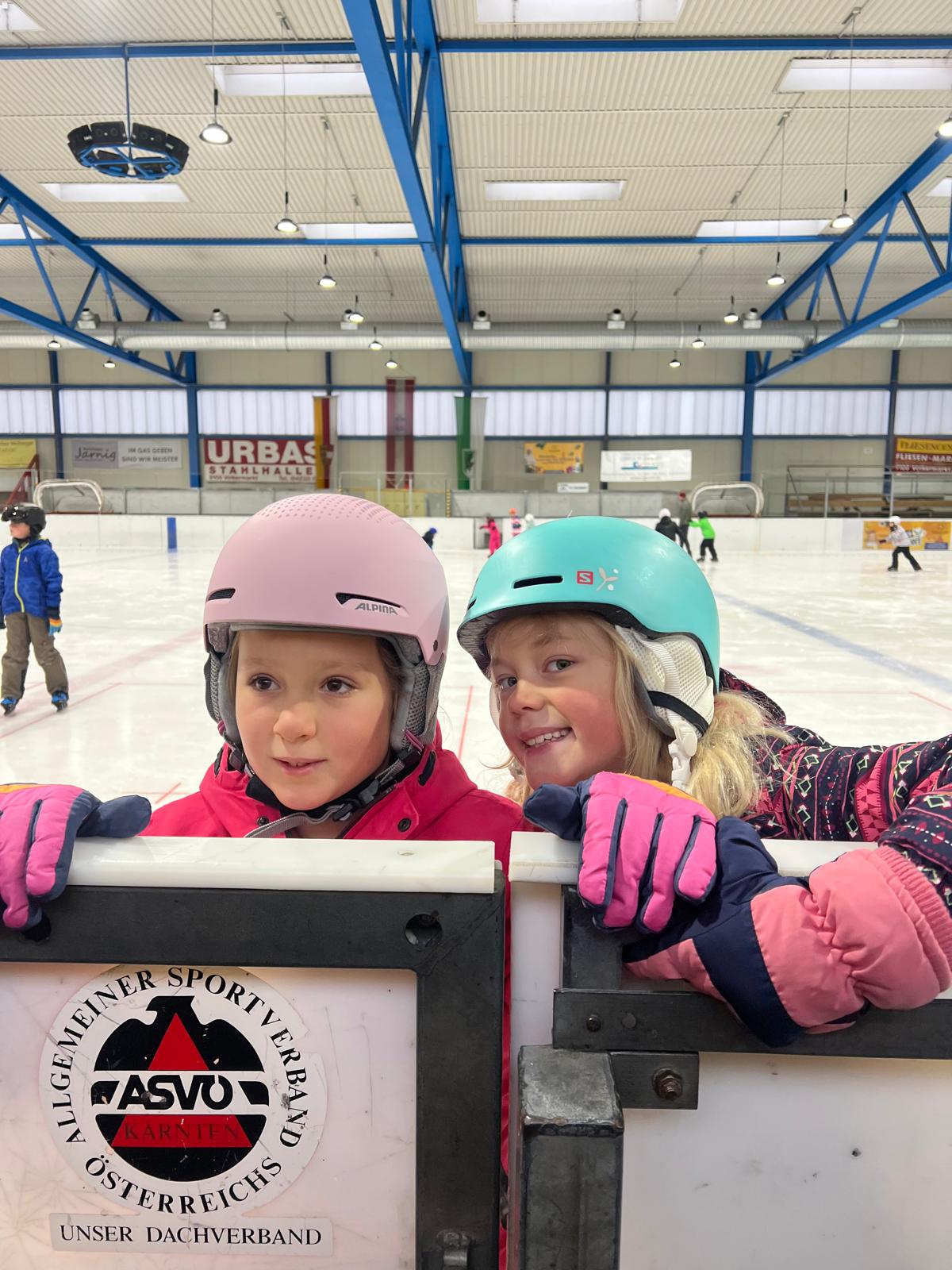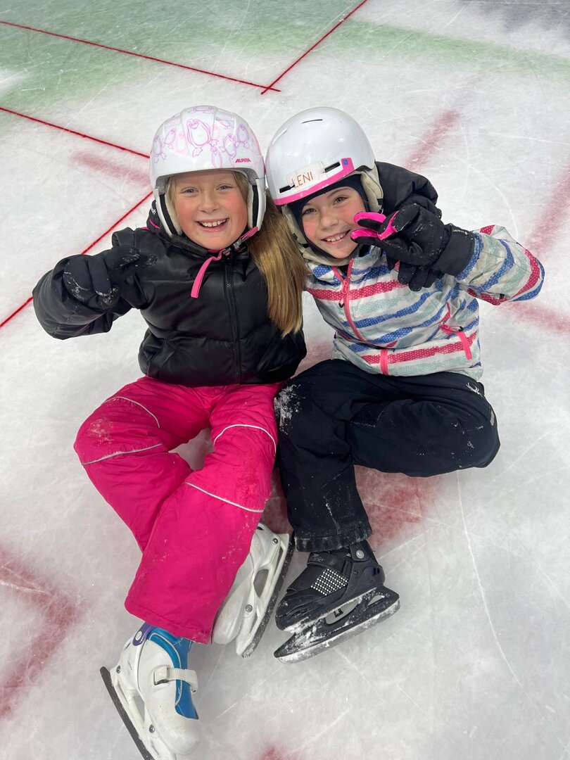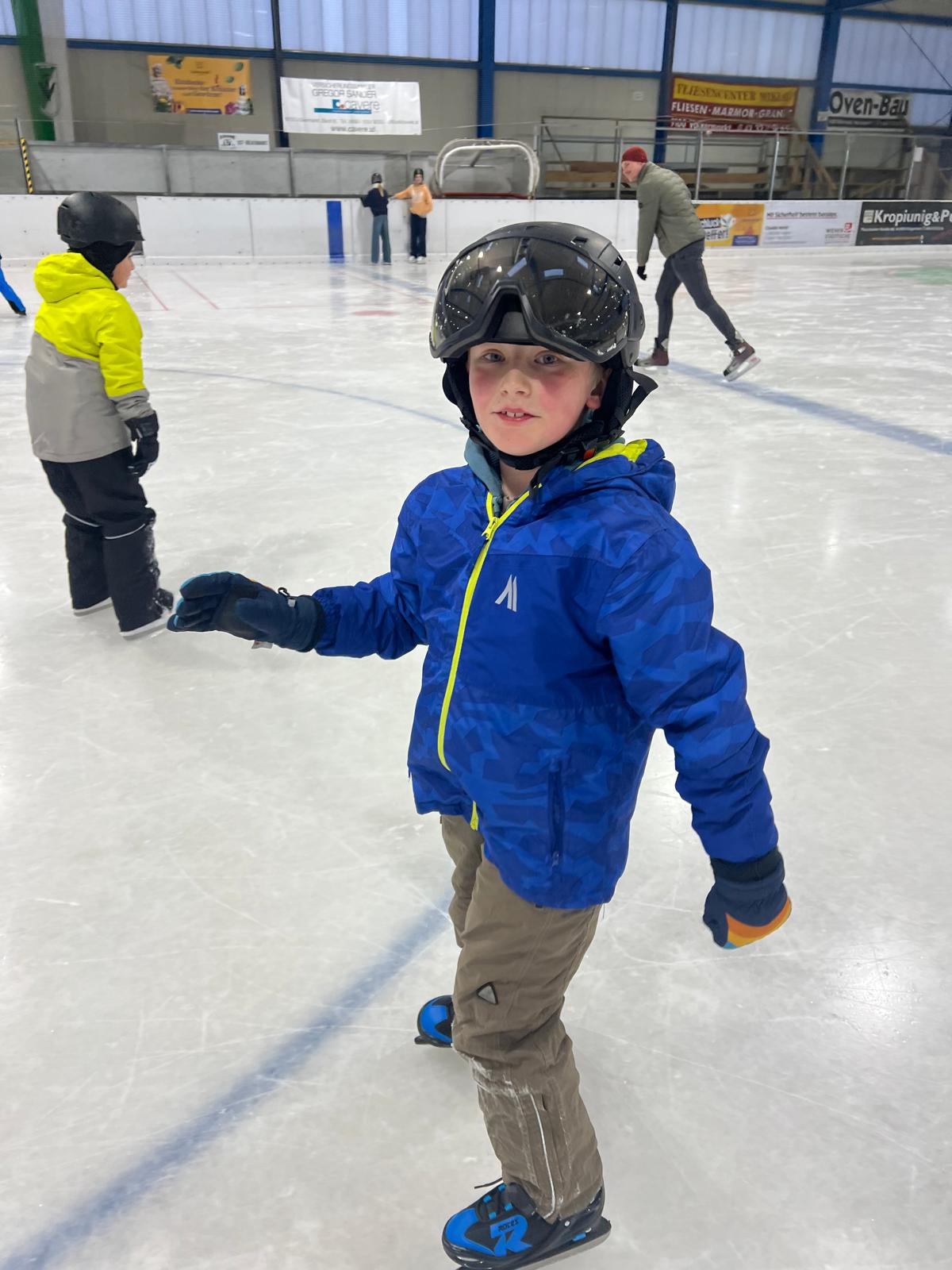 Nach den ersten vorsichtigen Schritten am Eis hatten alle riesengroßen Spaß beim Eislaufen, Ausprobieren neuer Techniken und kleinen Wettrennen.