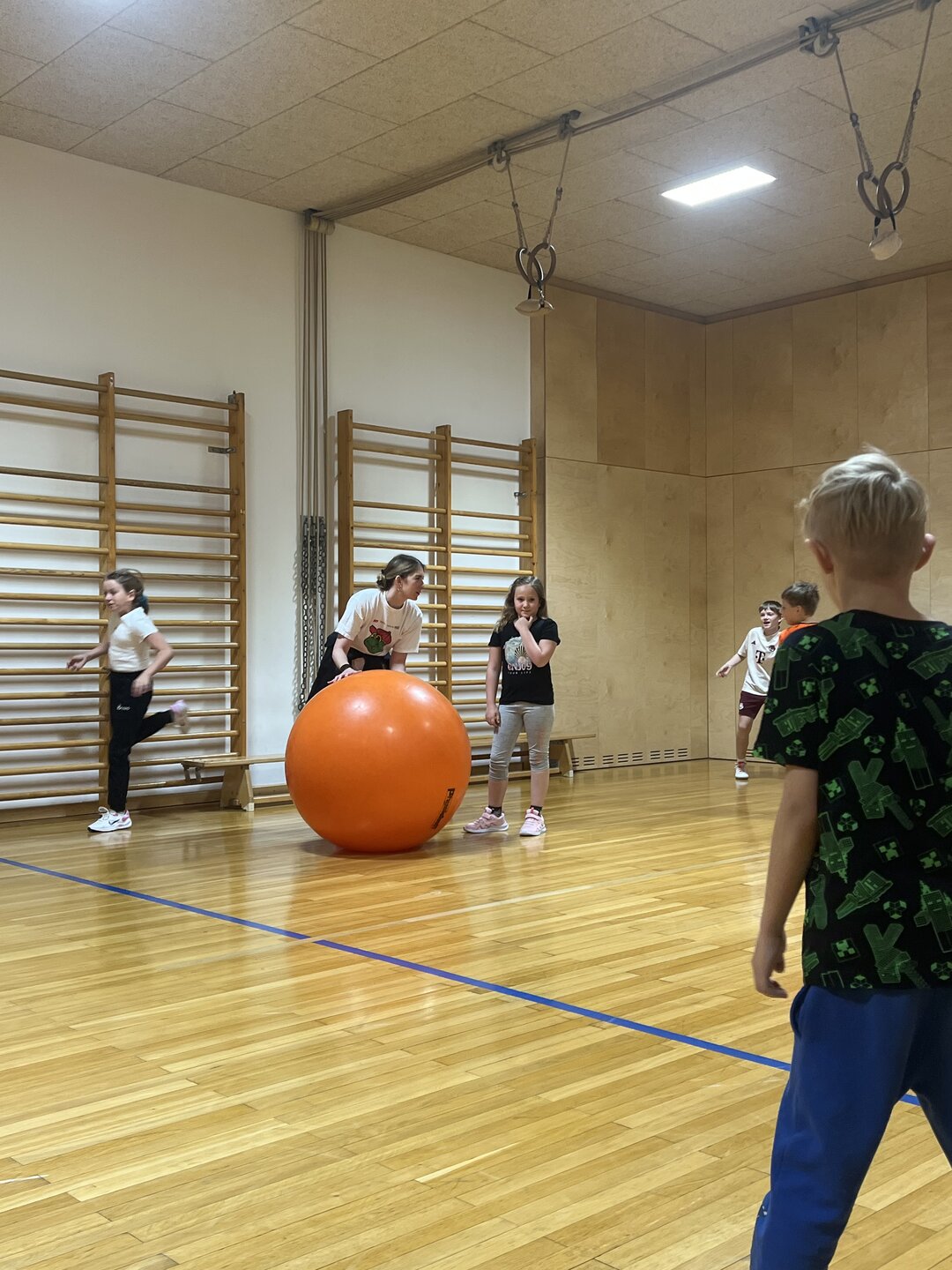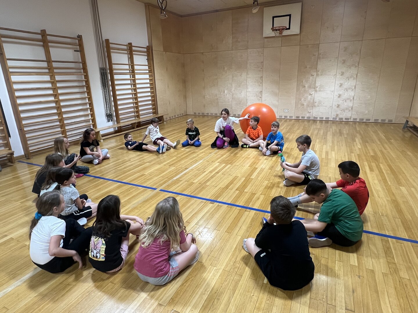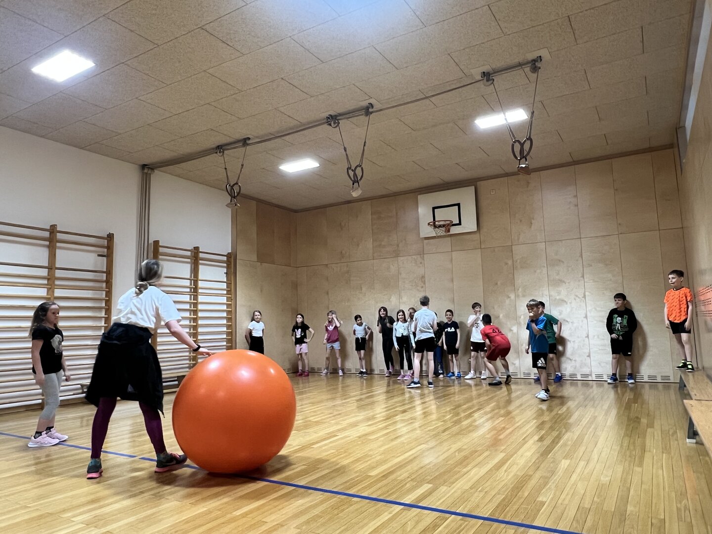 Montag im Turnunterricht. Im Mittelpunkt dieser Turnstunde standen Teamgeist, Schnelligkeit und Fairness. Vielen Dank, Hopsi Hopper! Hvala lepa!