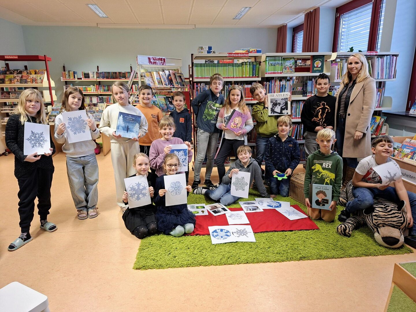 Am Donnerstag besuchten die Schülerinnen und Schüler der 3B die Mediathek. Ihnen wurde erklärt, was Biographien sind. Die "Biographien berühmter Menschen für Kinder" sind beim Ausleihen sehr beliebt. Vorgestellt wurde den Kindern die Lebensgeschichte des Wilson Bentley, der ein außergewöhnlicher Junge war. Die Drittklässler hörten aufmerksam zu und wissen nun, dass jede Schneeflocke ein einzigartiges, kleines Wunder ist.