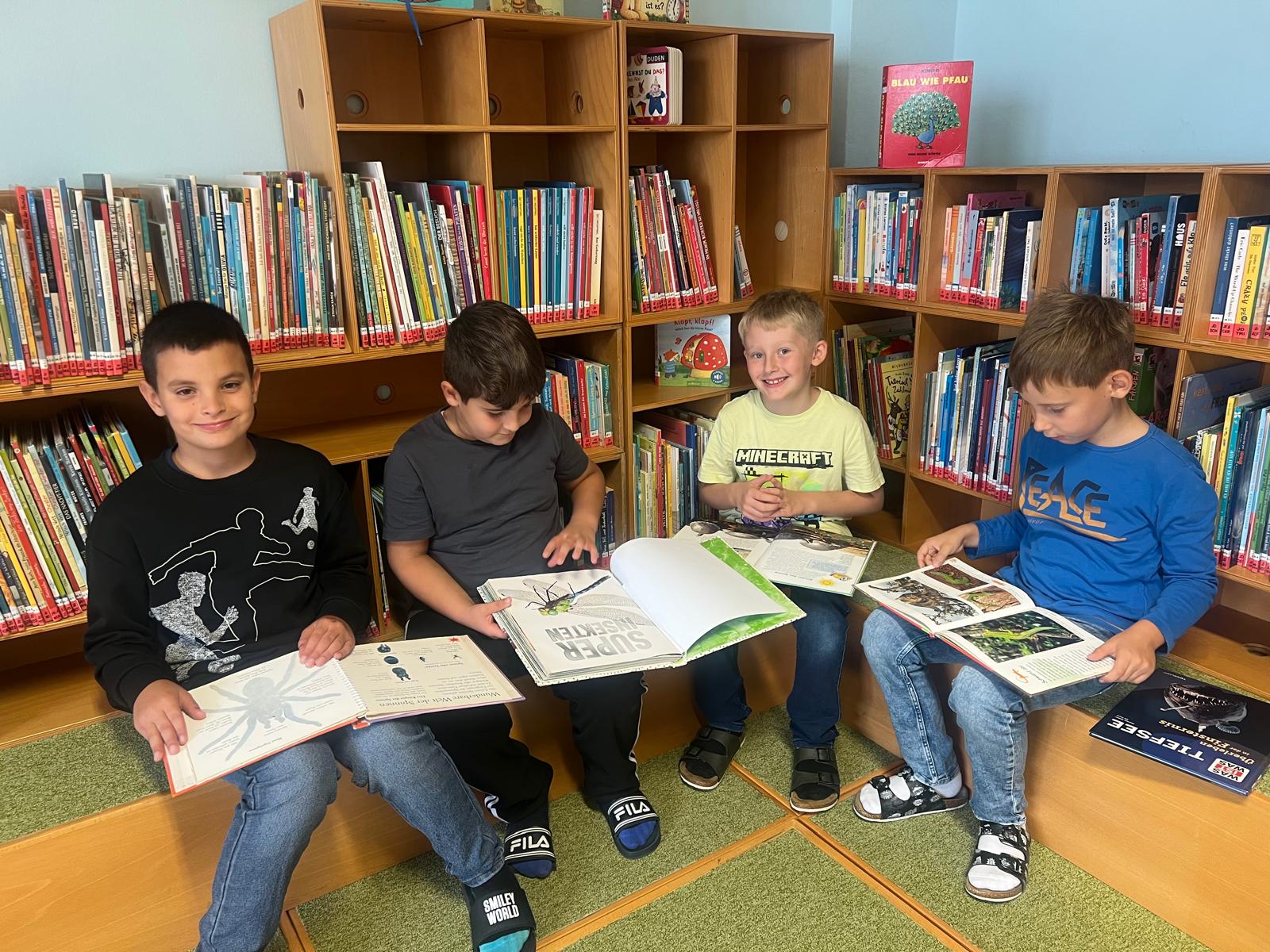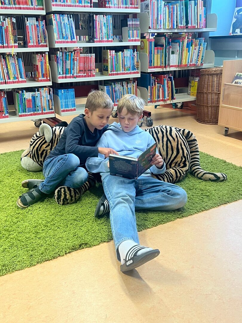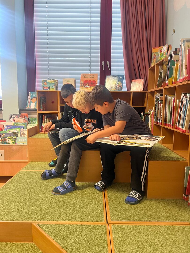Mit großer Neugier stöberten die Kinder in vielen bunten Büchern und entdeckten neue Geschichten. Es wurde gemeinsam und alleine gelesen und einige Bücher auch ausgeliehen.