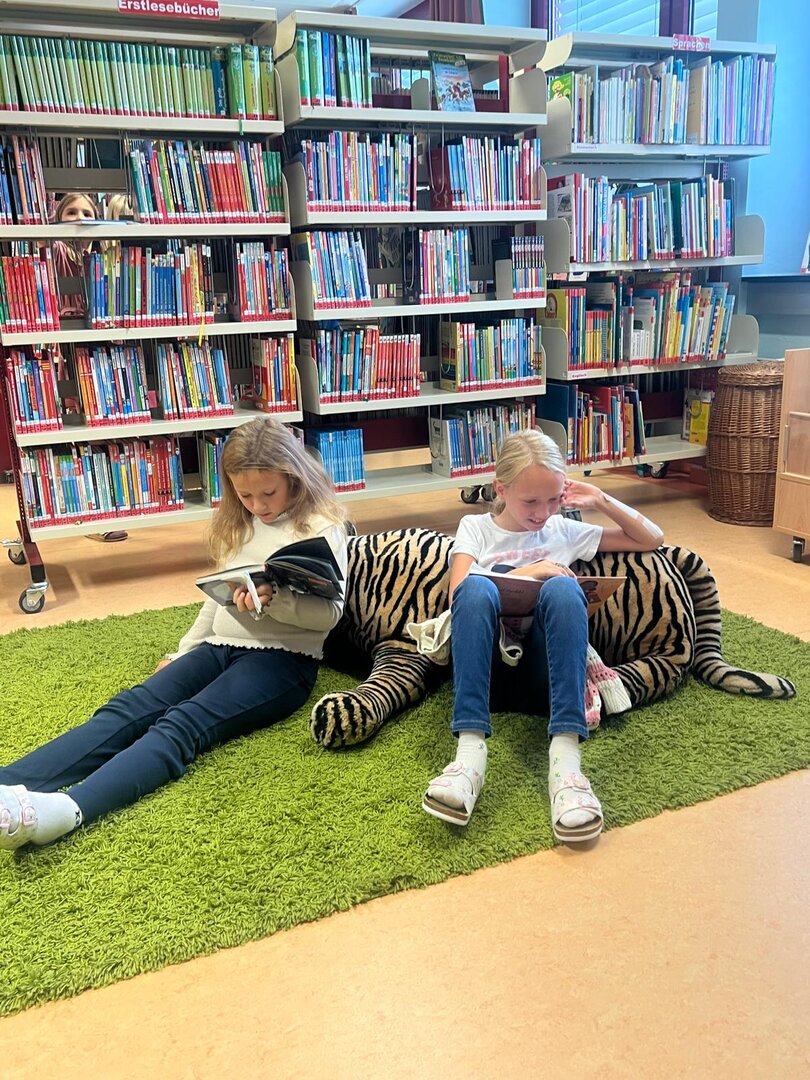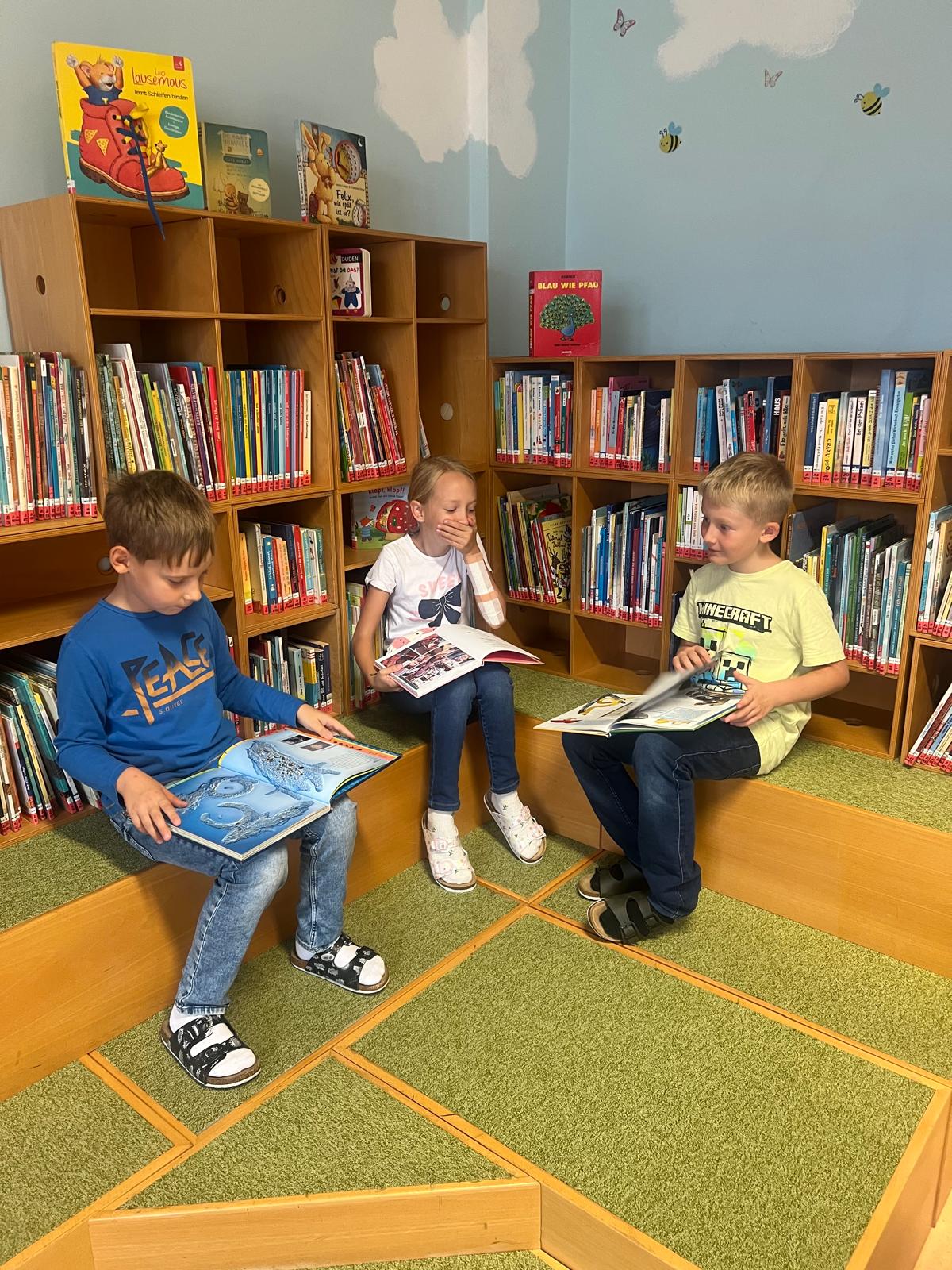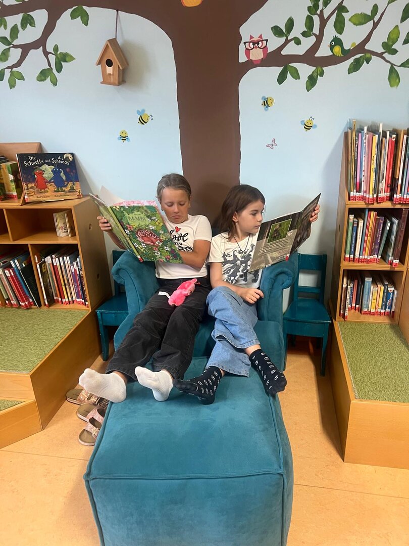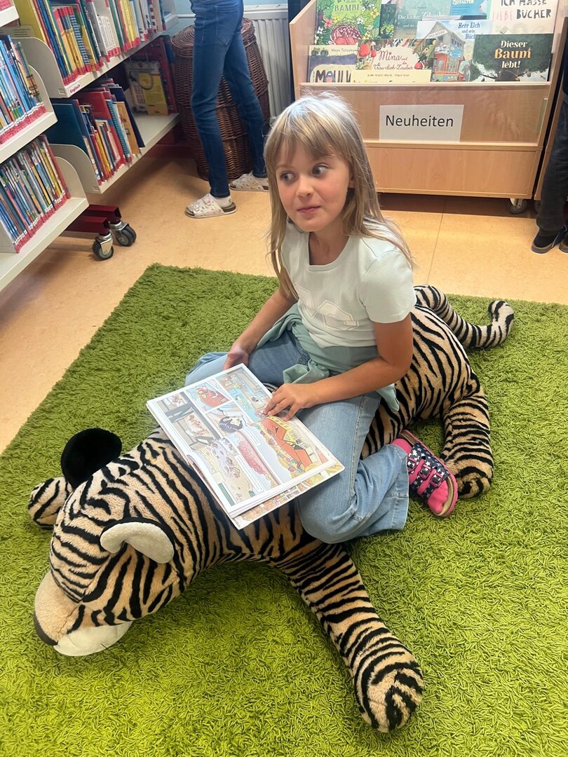 Mit großer Neugier stöberten die Kinder in vielen bunten Büchern und entdeckten neue Geschichten. Es wurde gemeinsam und alleine gelesen und einige Bücher auch ausgeliehen.