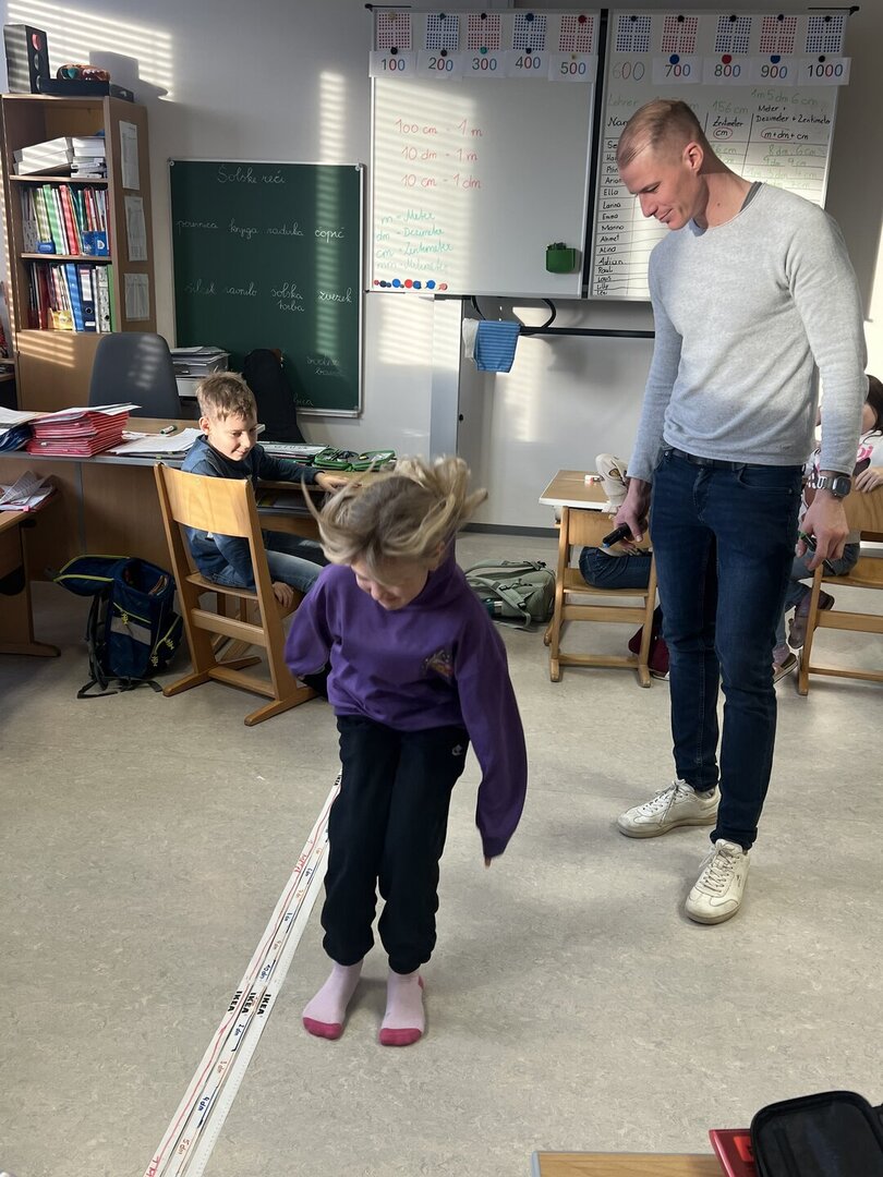 V 3. razredu smo matematiko začeli s skokom v daljavo! Učenci so merili svoje skoke. Učenje s pomočjo športa je luštno!