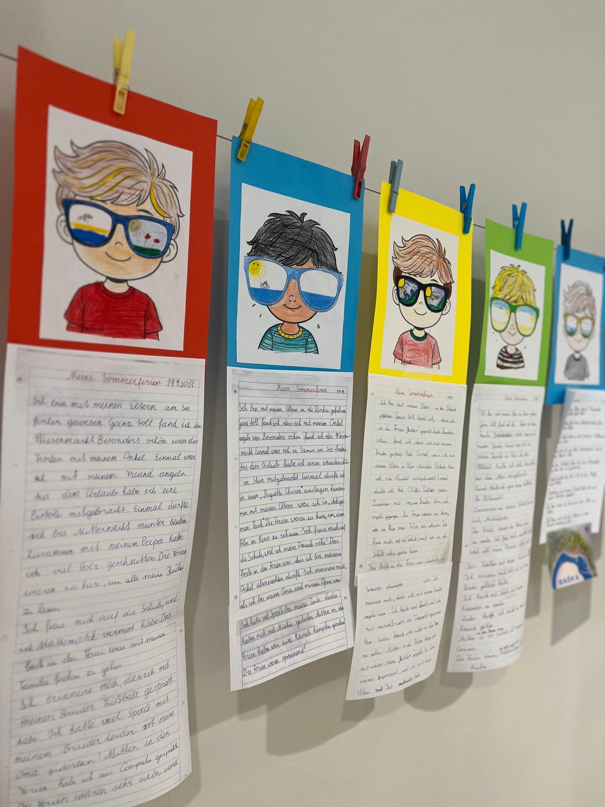 Zum Schulstart erzählten die Schüler und Schülerinnen der 3B Klasse begeistert über ihre Erlebnisse in den Sommerferien. Danach wurden diese Erlebnisse aufgeschrieben und alle Kinder malten ein passendes Ferienbild dazu.