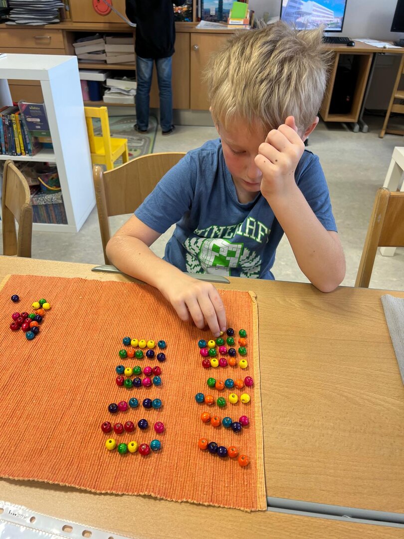 Heute wurde im Mathematikunterricht wieder geschätzt, gelegt und schon im ZR 1000 gerechnet.