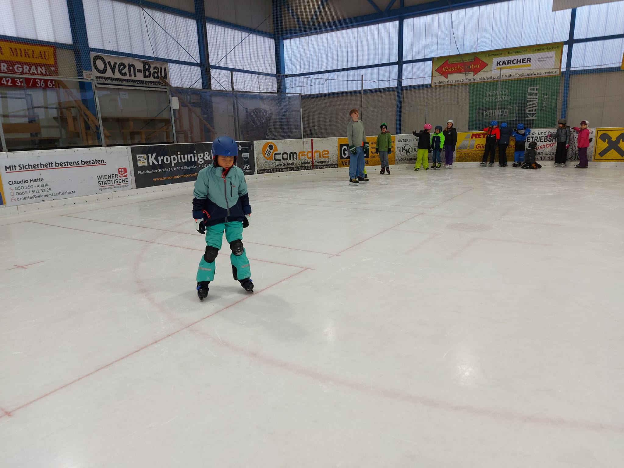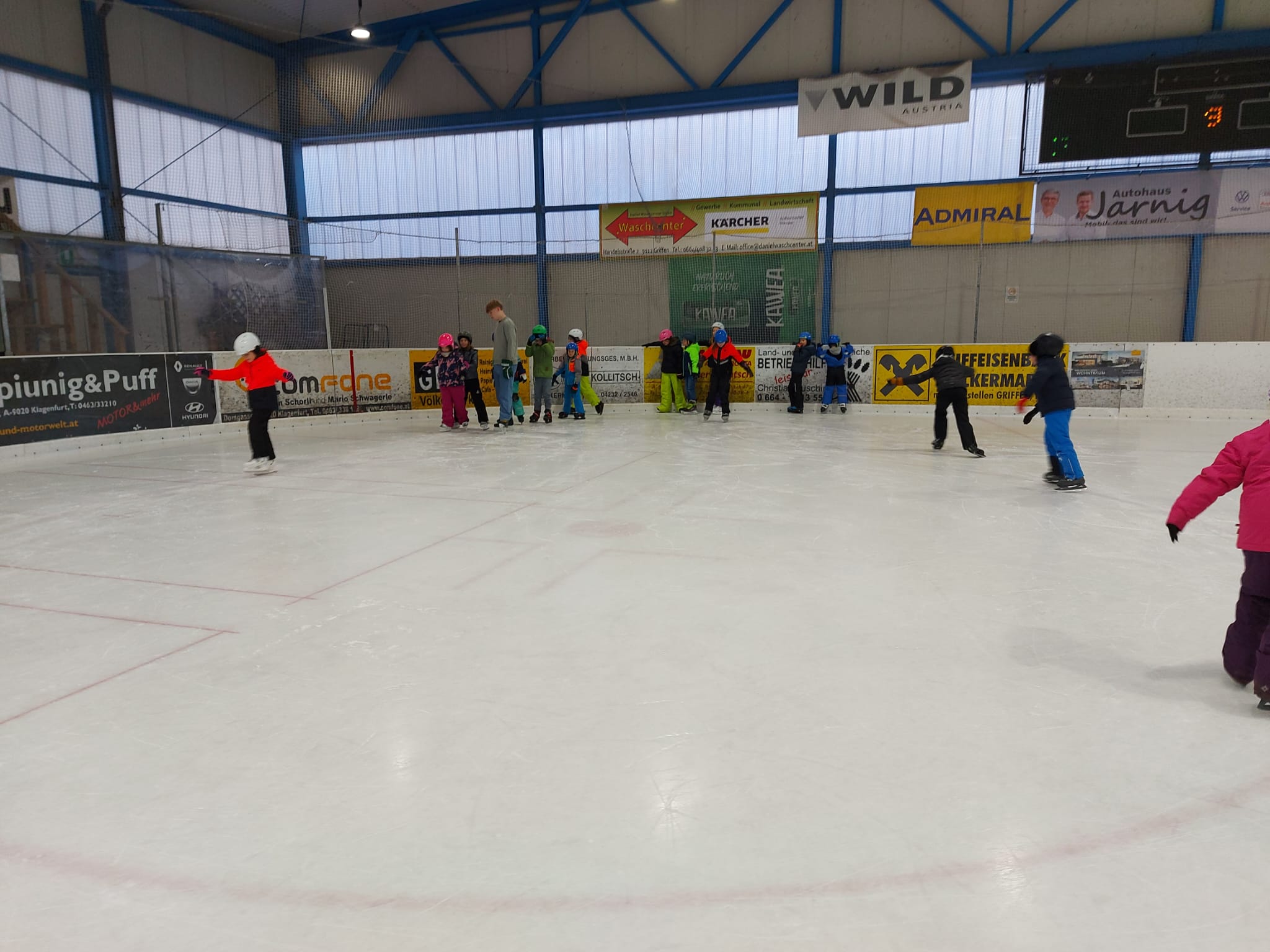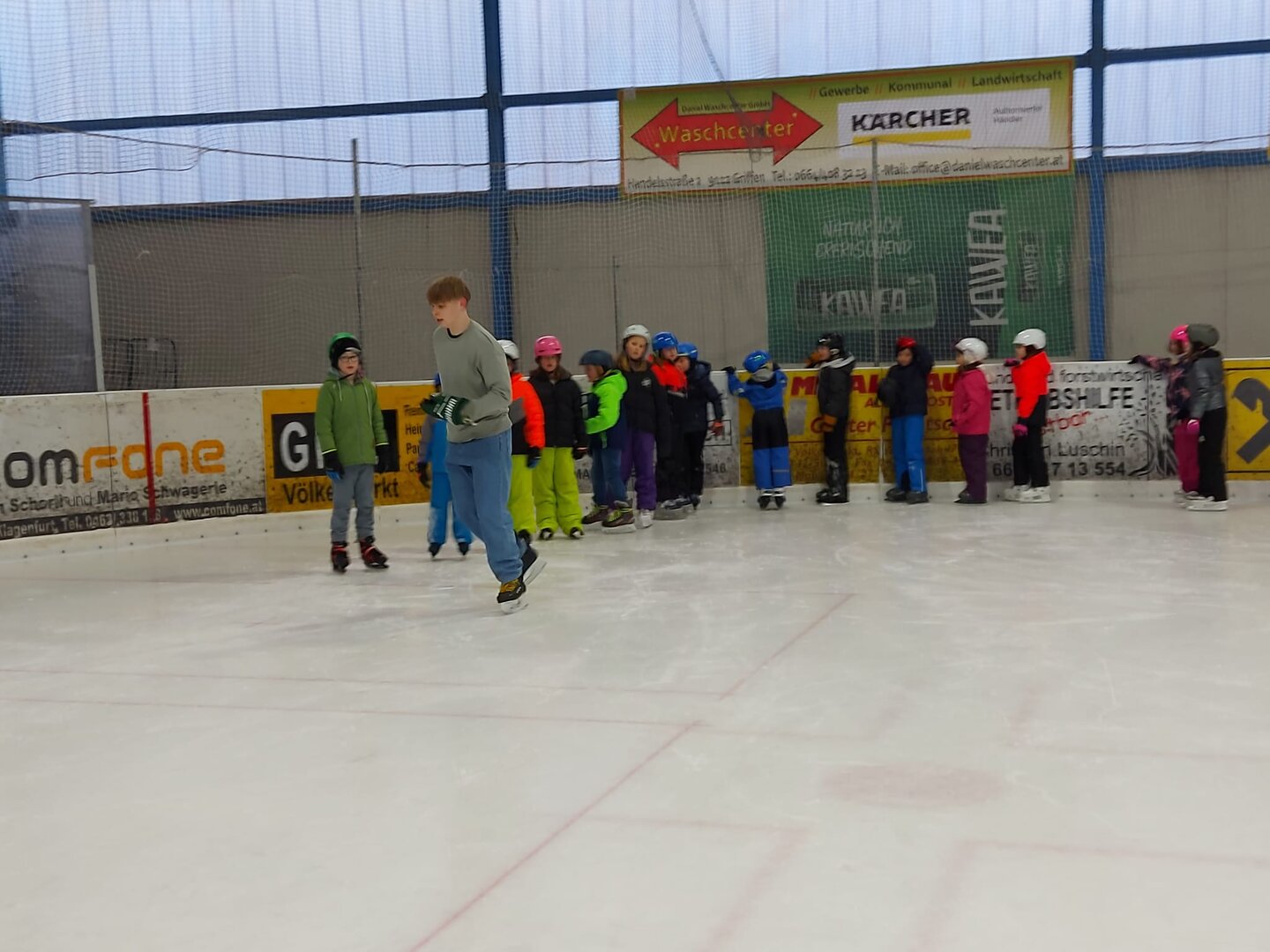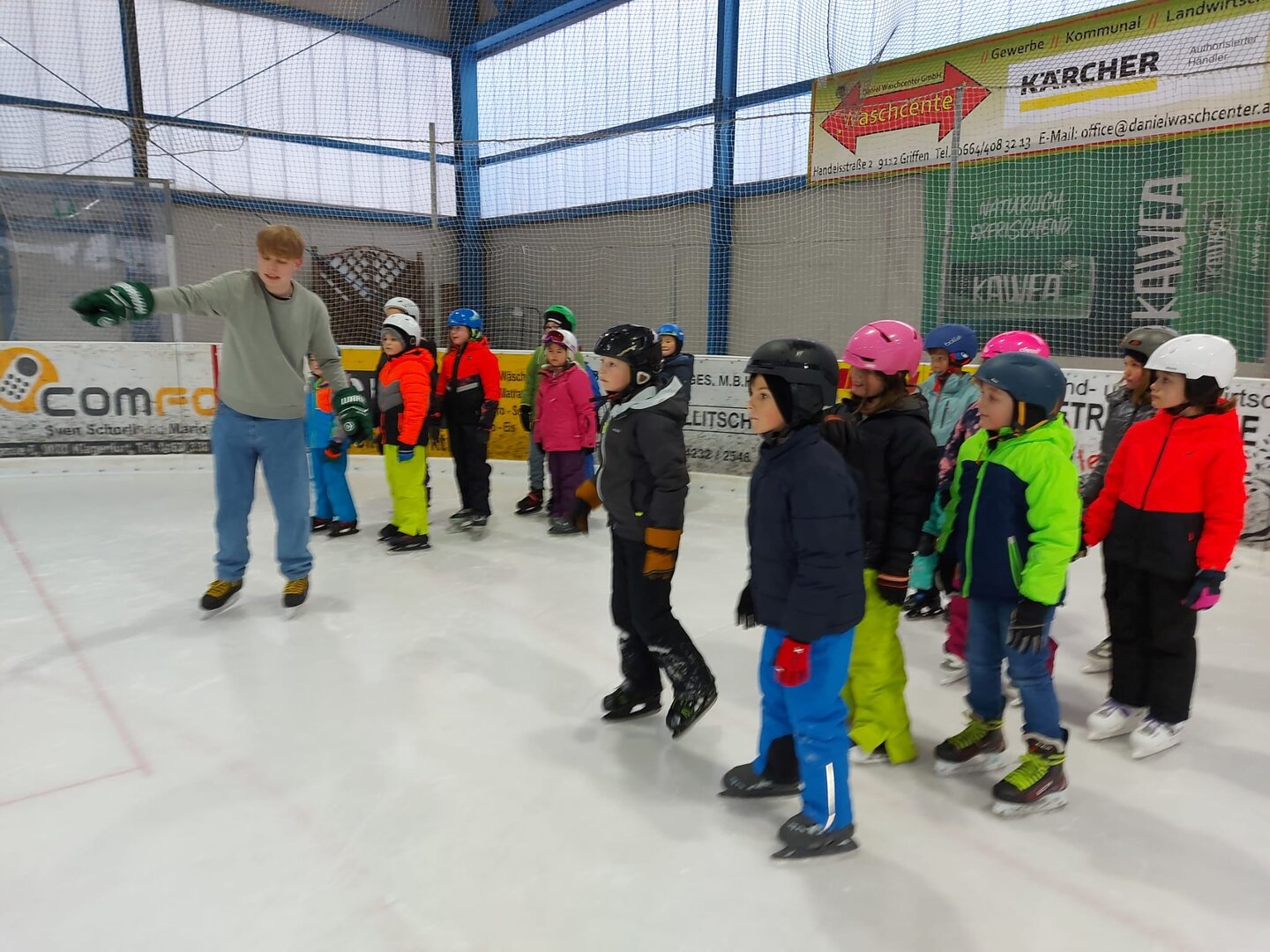 In dieser Saison waren die Schülerinnen und Schüler der 3C viermal eislaufen, davon zweimal mit Eishockeyspieler Leonhard, der für sie viele Übungen und Spiele vorbereitet hatte.