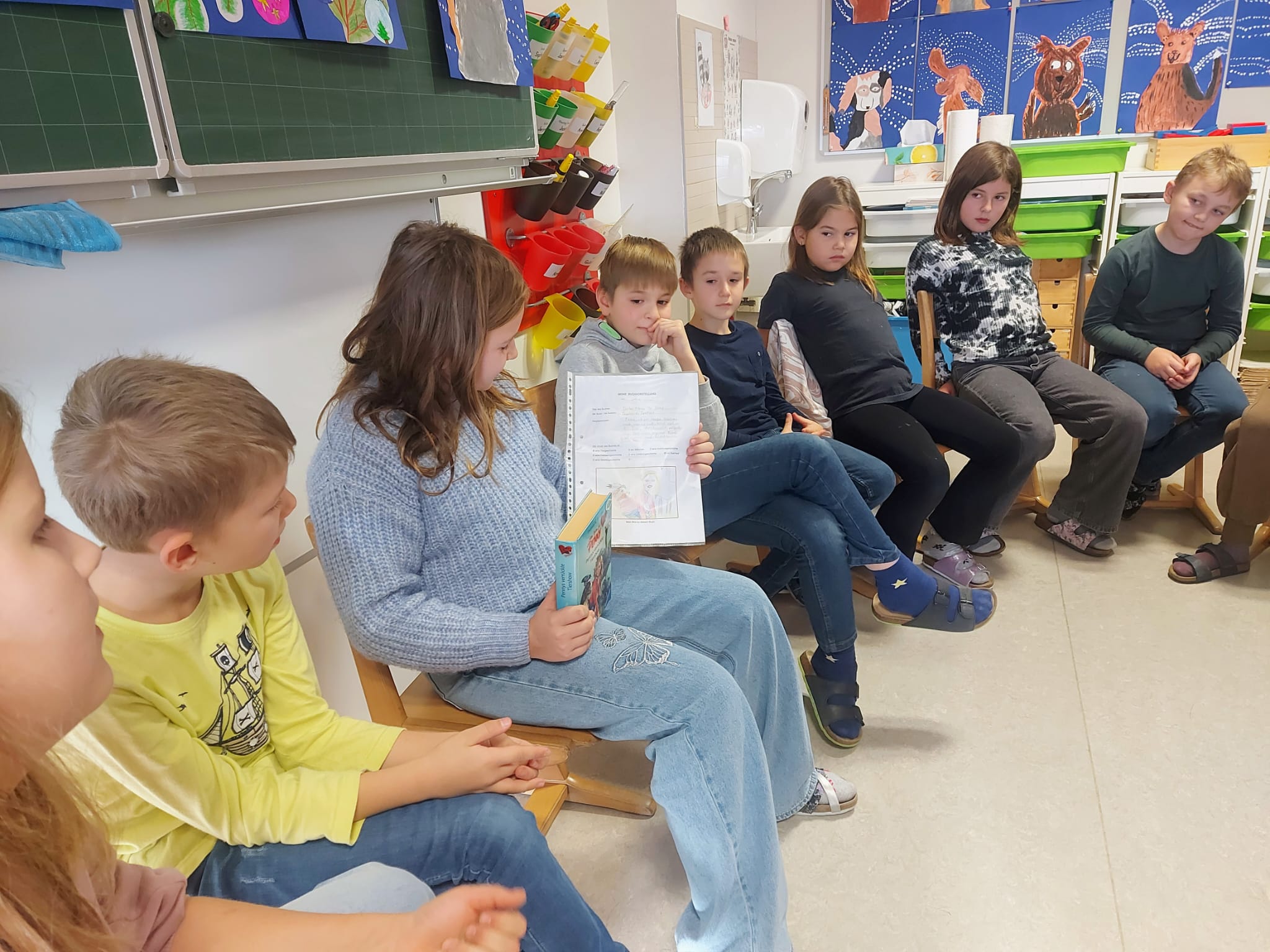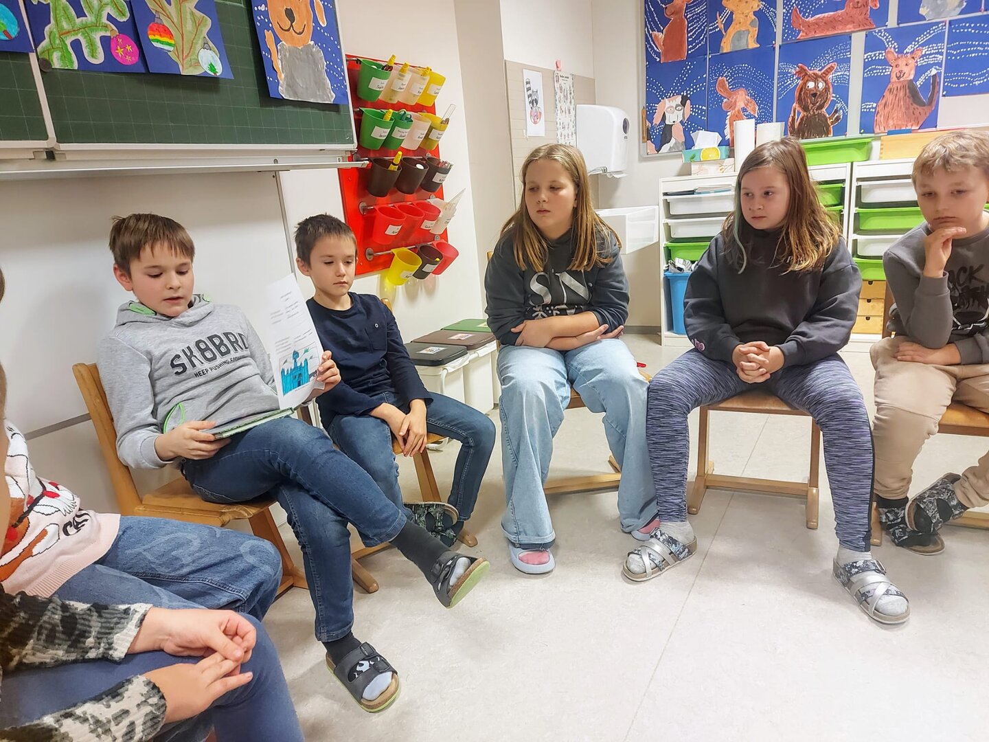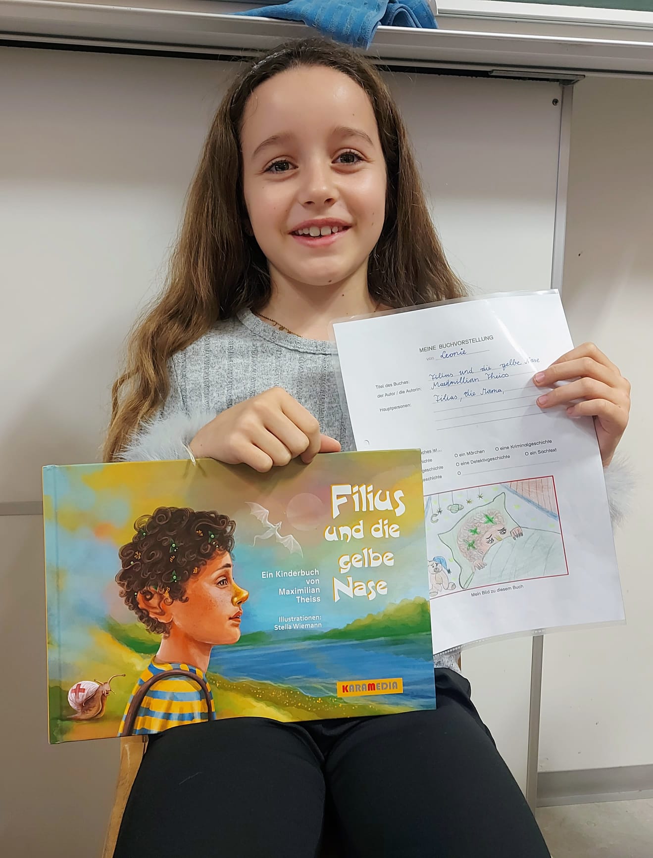 In dieser Woche starteten in der 3C Klasse die ersten Buchvorstellungen: Leonie war die Erste. Sie brachte ein märchenhaftes Buch von einem Jungen mit gelber Nase mit. Jocelin präsentierte ein Buch über eine Nacht in einer Schule, in der wunderliche Dinge passieren. Chiara stellte ein Buch vor, dem eine wahre Geschichte zugrunde liegt: Ein engagiertes Mädchen vermittelt Tiere, die ein Zuhause suchen. Jerome hatte für uns einen spannenden Teil der Buchreihe "Das magische Baumhaus", in dem zwei Kinder auf die Suche nach dem verlorenen Auge eines Zauberers gehen.