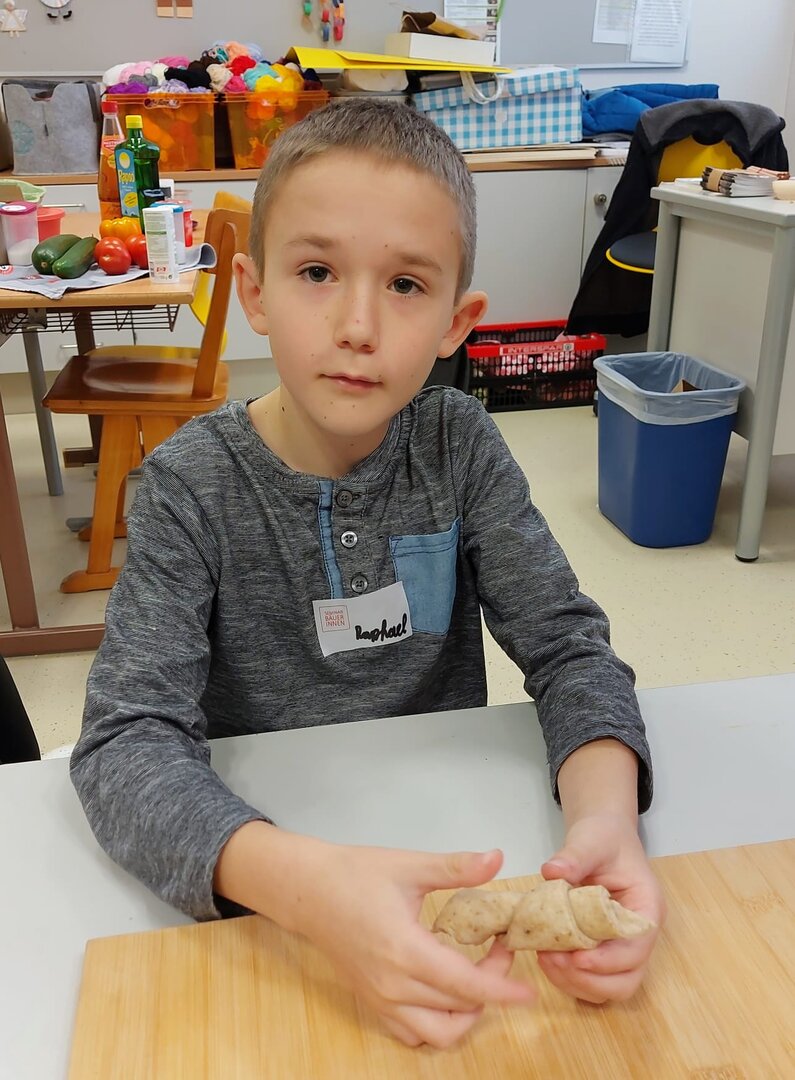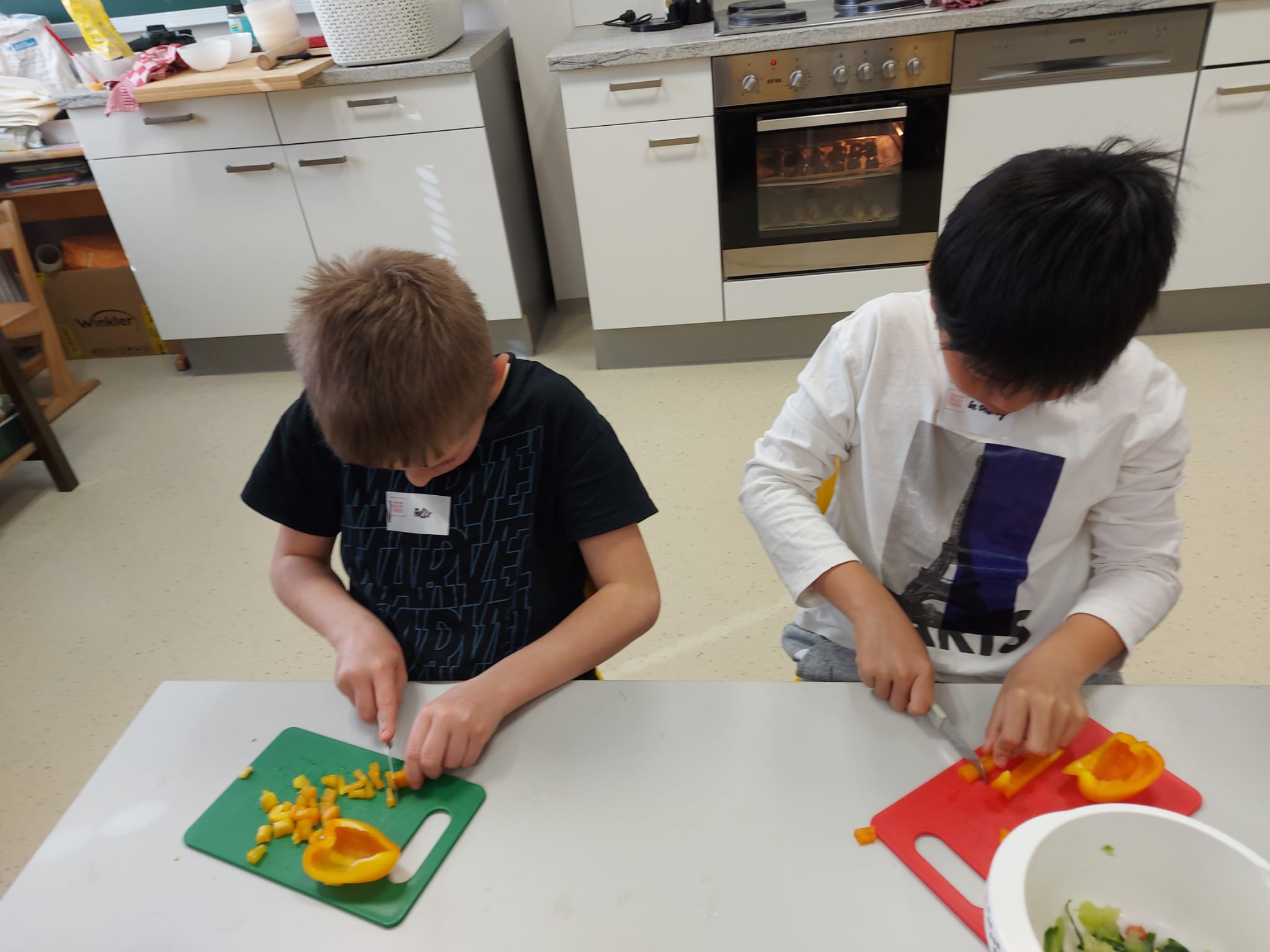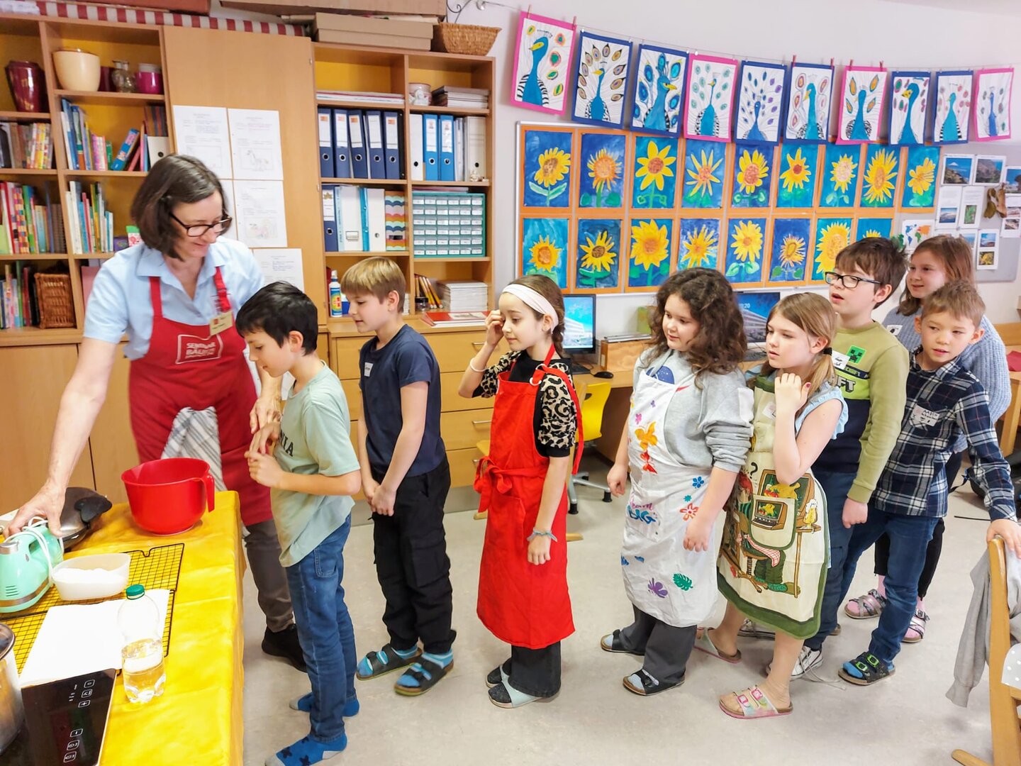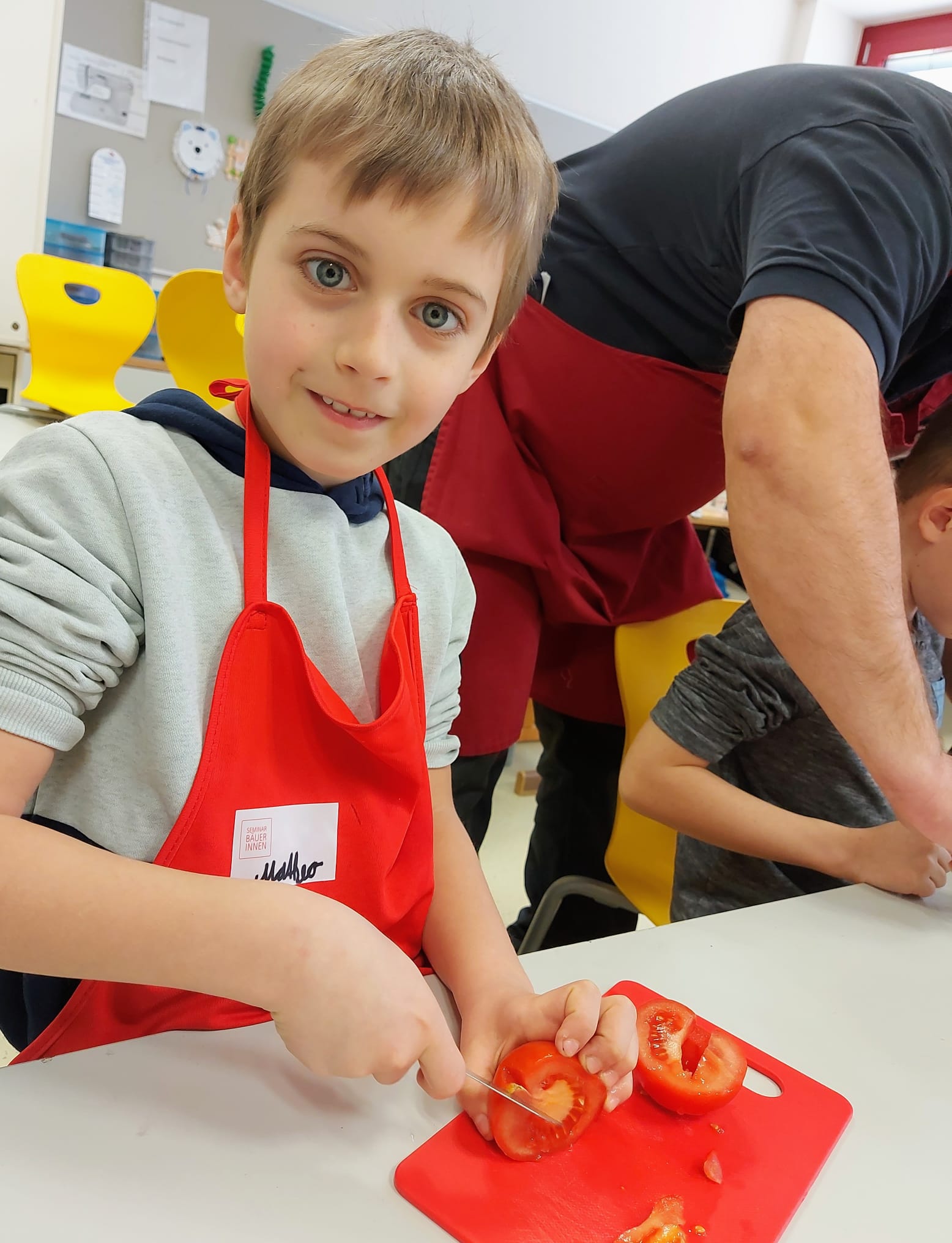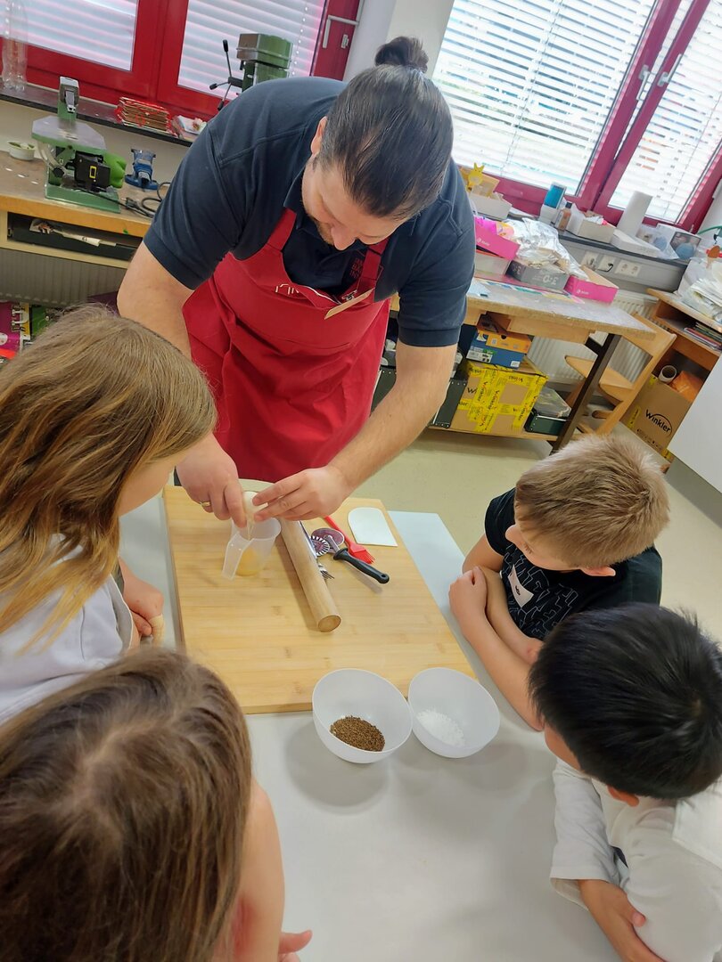 Am Donnerstag durften die Kinder der 3 C Klasse mit Seminarbäuerin Sonja und Seminarbauer Florian einen frischen Salat anrichten, Griessuppe kochen, Salzstangerln backen und süße Waffeln toasten. Nebenbei lernten sie über die Getreidearten, den Aufbau eines Korns und den Wert von Vollkornprodukten.