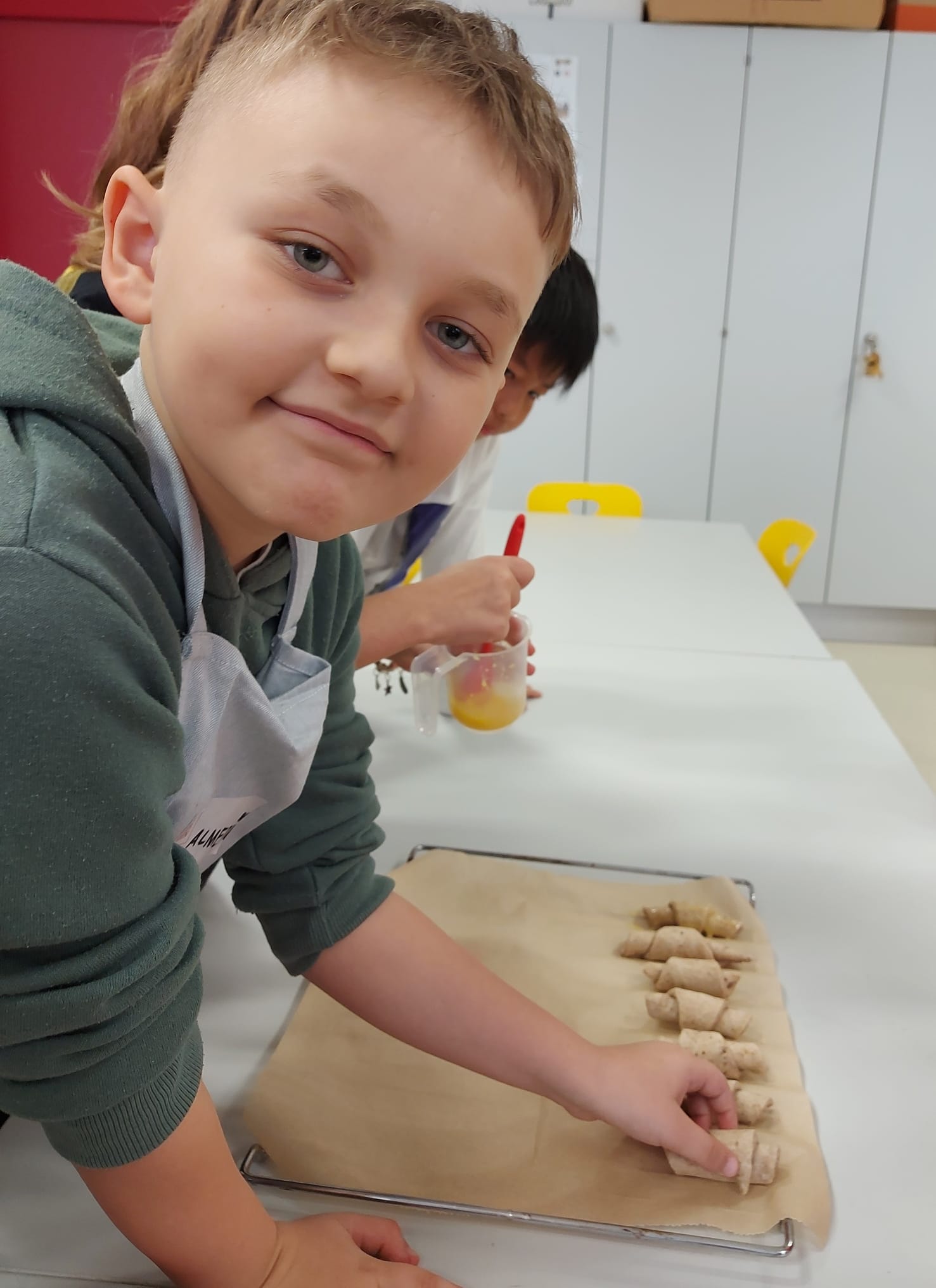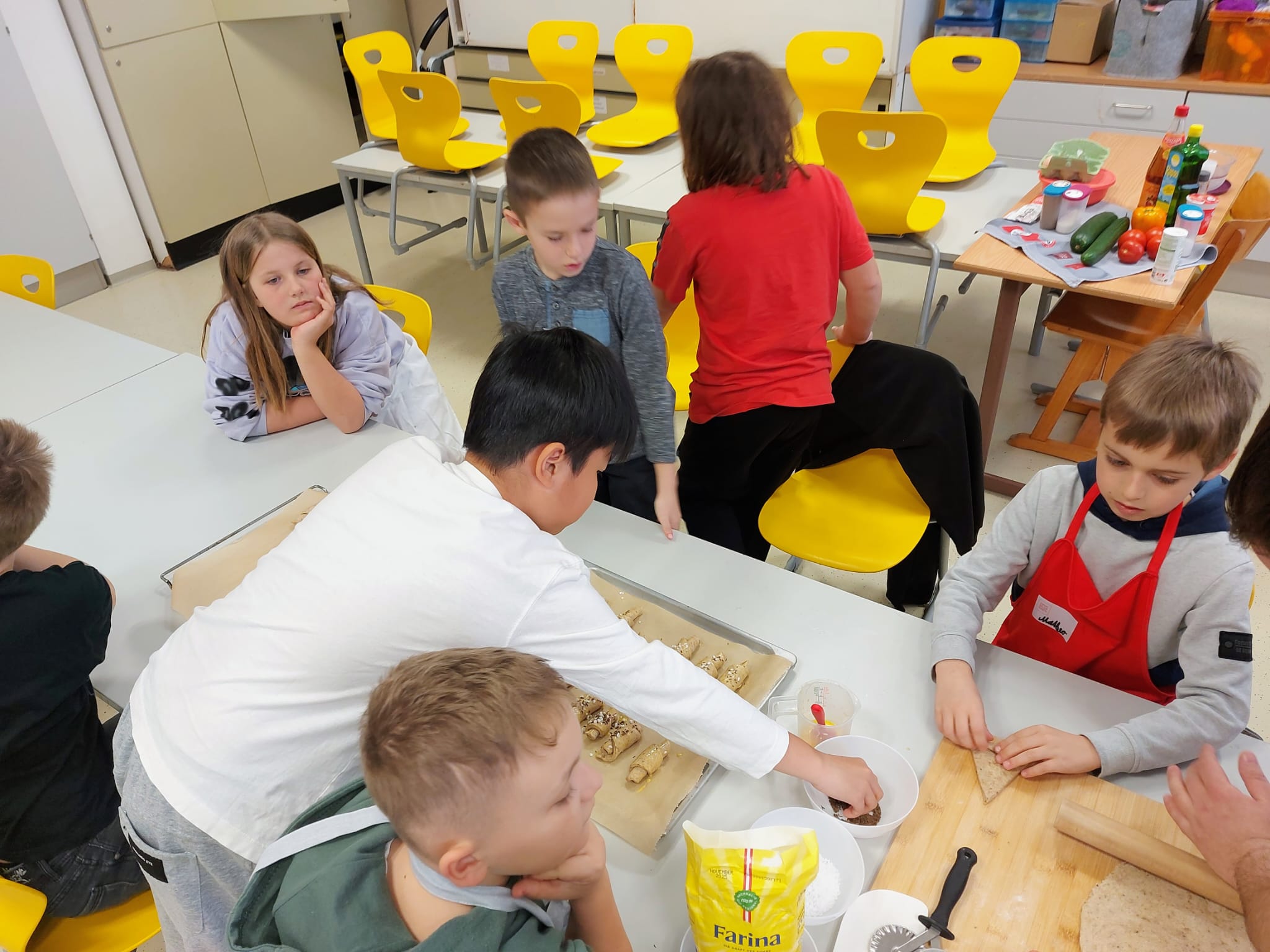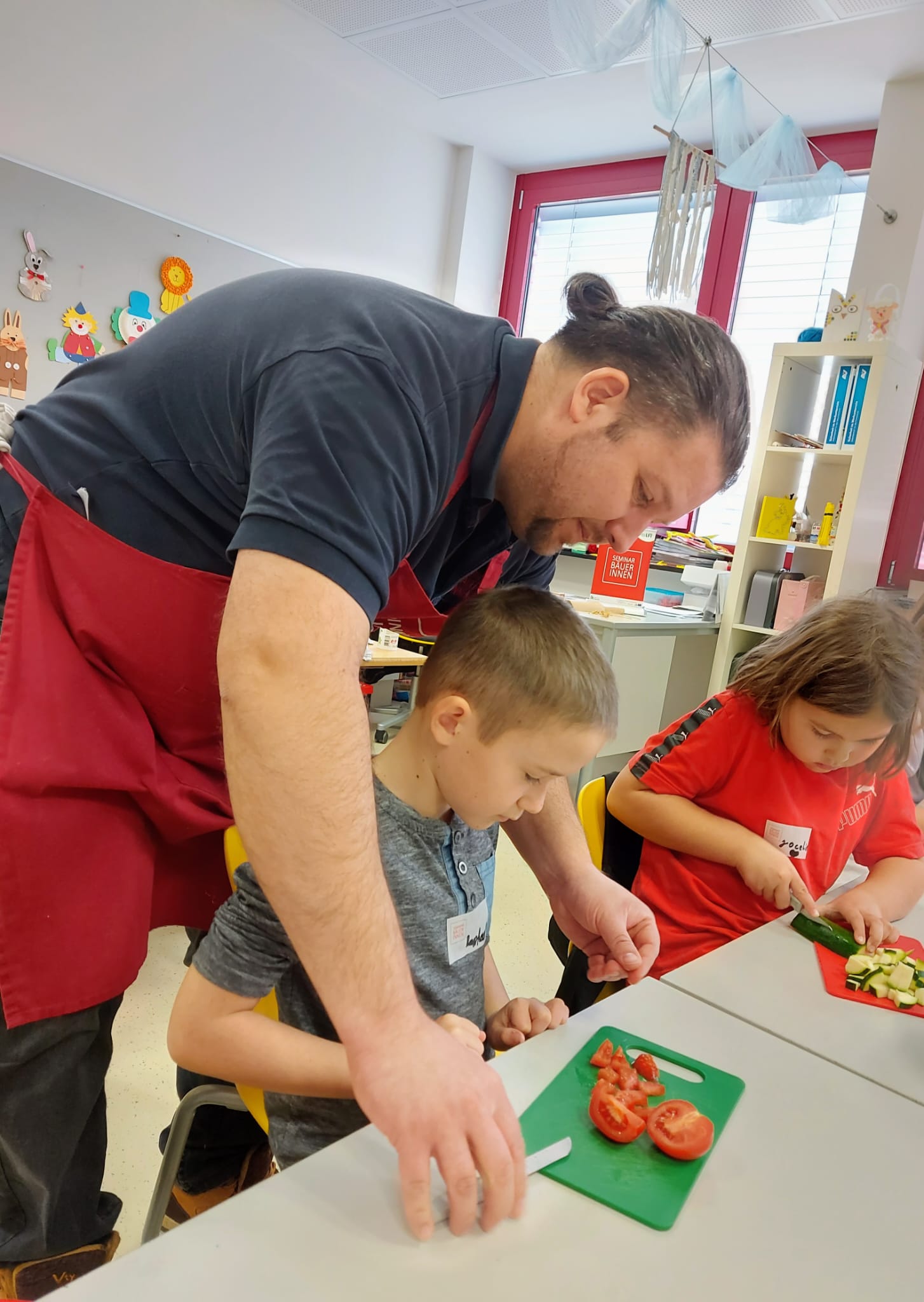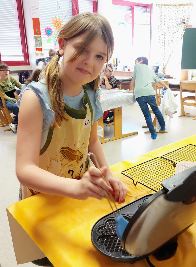 Am Donnerstag durften die Kinder der 3 C Klasse mit Seminarbäuerin Sonja und Seminarbauer Florian einen frischen Salat anrichten, Griessuppe kochen, Salzstangerln backen und süße Waffeln toasten. Nebenbei lernten sie über die Getreidearten, den Aufbau eines Korns und den Wert von Vollkornprodukten.
