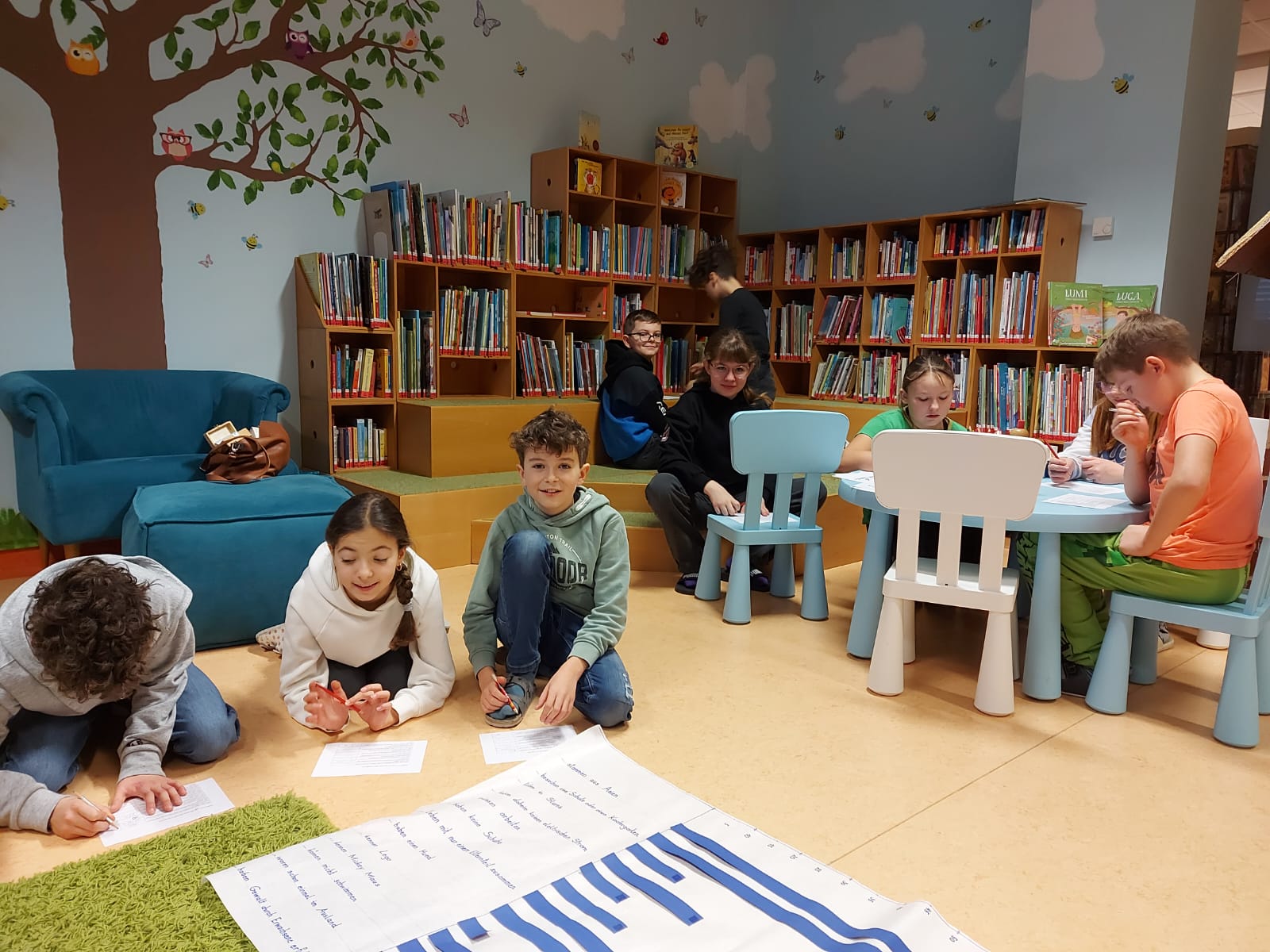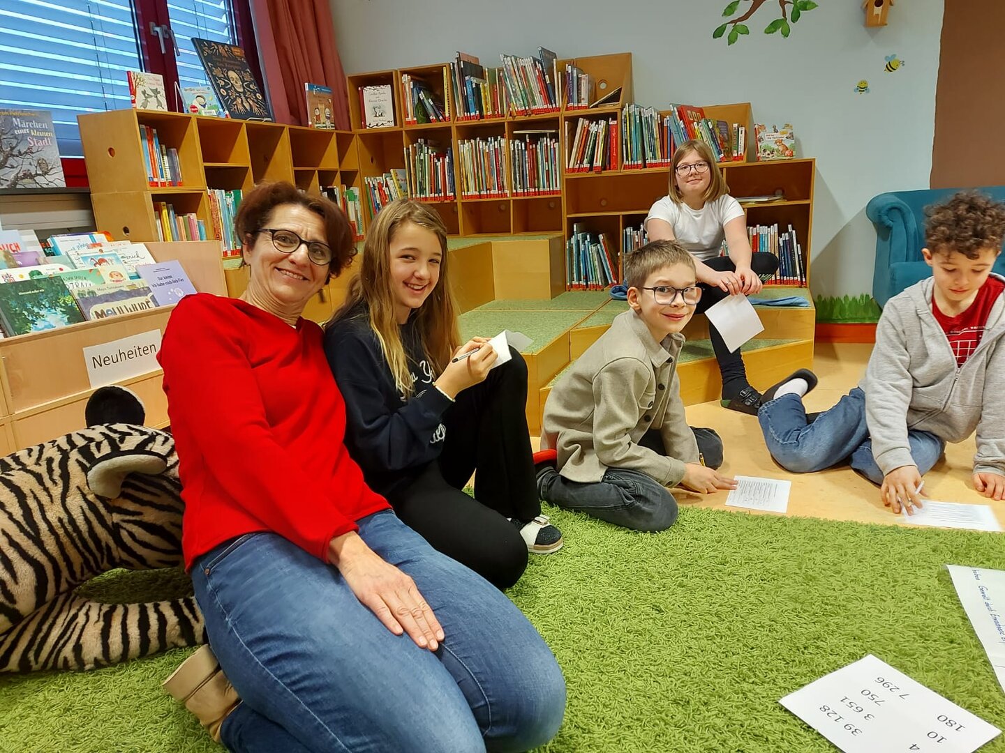 Den Kindern der 4A Klasse wurden diesmal in der Mediathek die Sachbücher von Christoph Drössler vorgestellt. Dem deutschen Autor geht es in seinen Büchern "100 Kinder" und "Absolut rekordverdächtig" darum, Zahlen und Verhältnisse kindgerecht zu erklären. Für Viertklässler, die bereits Säulen- und Kreisdiagramme aus dem Mathematikunterricht kennen, können diese Bücher sehr interessant sein. Beim Schätz-Quiz haben Schülerinnen und Schüler gezeigt, wie gut sie sich in einem großen Zahlenraum orientieren können. Kompliment an Kinder und Lehrerin der 4A Klasse!!!
