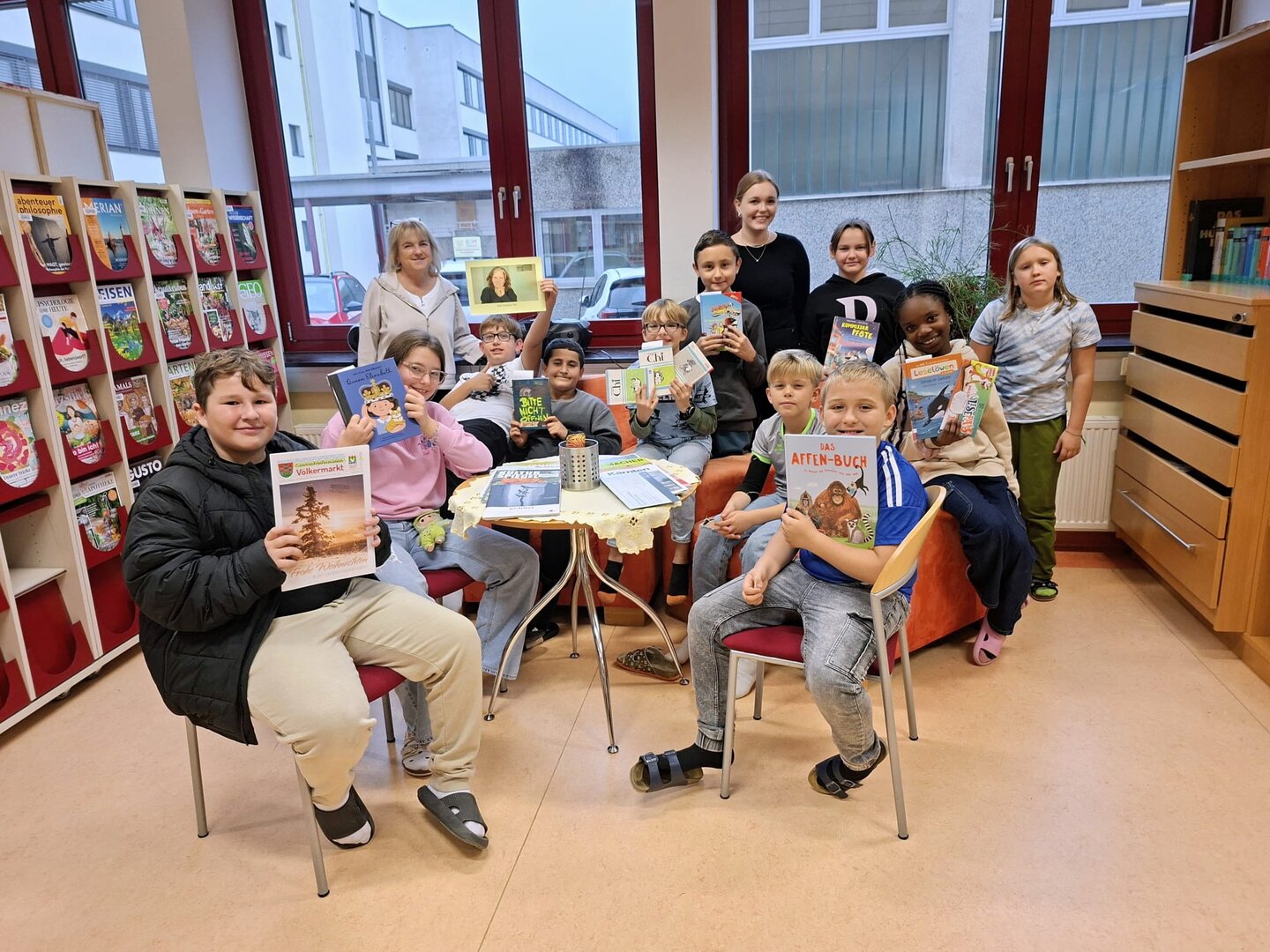 Die Kinder der 4A Klasse bekamen heute endlich ihre Mediatheksstunde, die wegen unserem Besuch im Gymnasium verschoben werden musste.