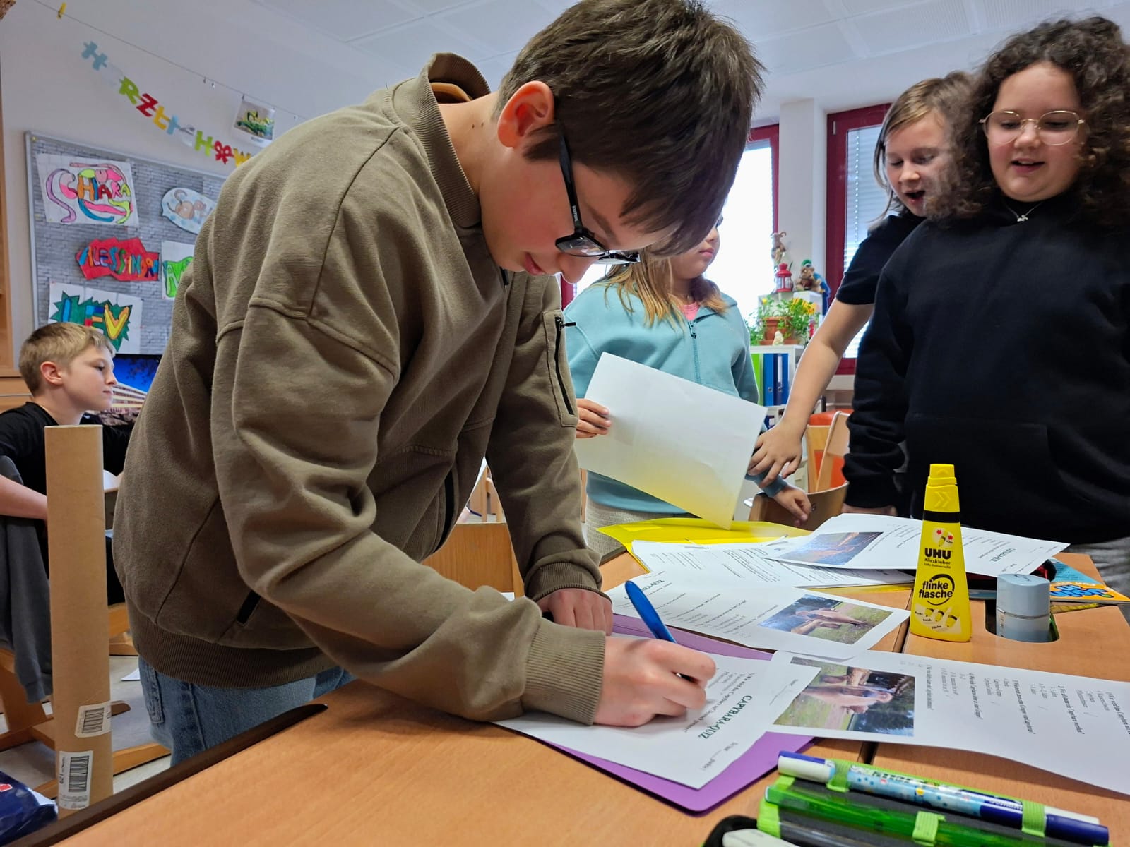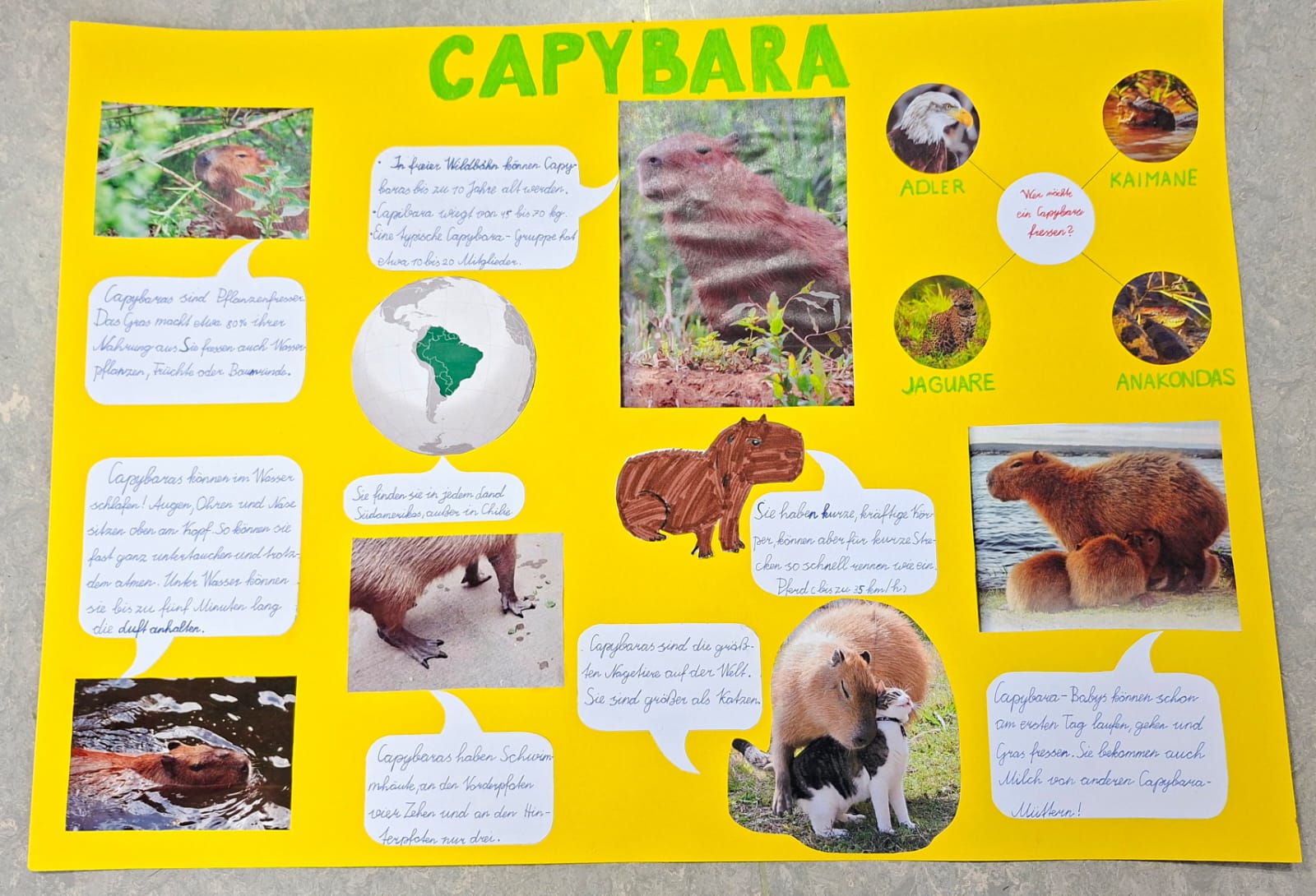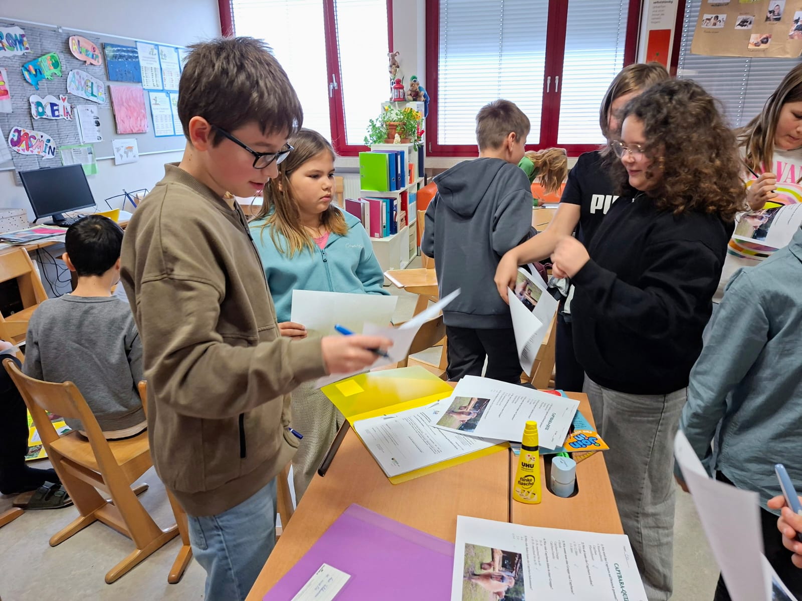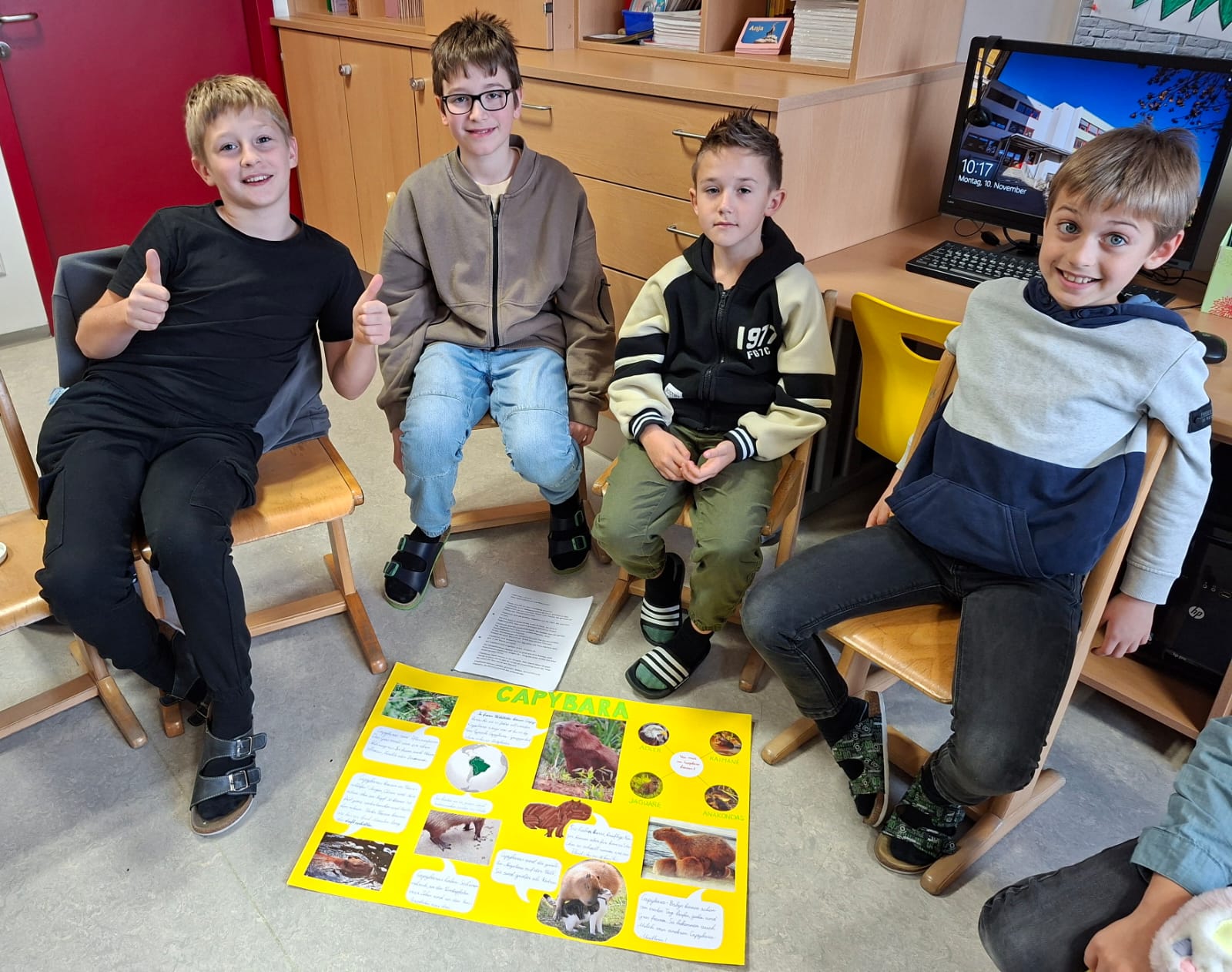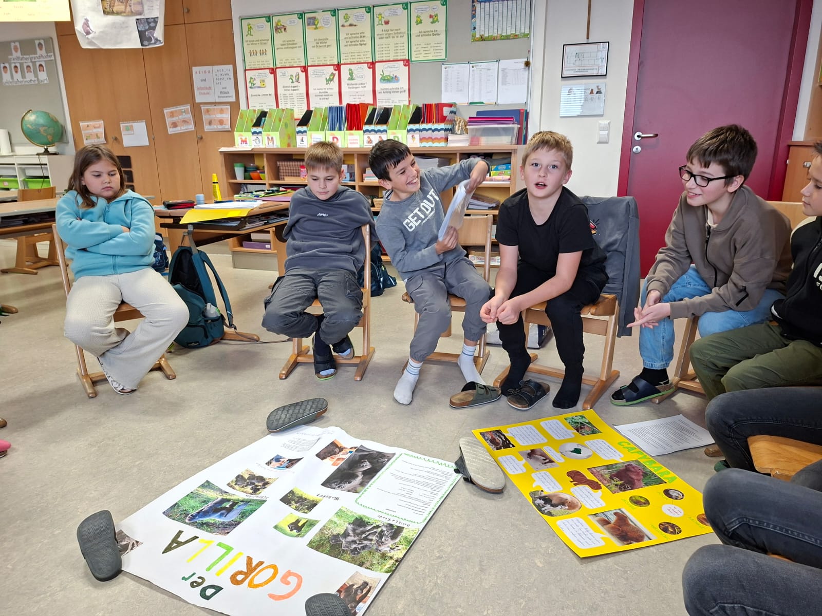 Unsere Tierreferate nehmen Fahrt auf: Lev spricht über das Wasserschwein, Felix über die Ziege. Alle zwei Plakate sind wunderschön. Zu beiden Referaten haben sich die Kinder Tests und Belohnungen für die, die gut zugehört haben, ausgedacht. Die Lehrerin ist sehr zufrieden. BRAVO!