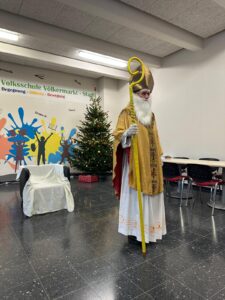 Am Nikolaustag besuchte uns der Nikolaus und brachte für jedes Kind eine kleine Überraschung mit. Zur Begrüßung trugen die Schülerinnen und Schüler Lieder und Gedichte vor, die sie mit viel Freude und Mühe vorbereitet hatten. Es war eine schöne und stimmungsvolle Feier, die bei allen Beteiligten ein Lächeln auf die Gesichter zauberte.