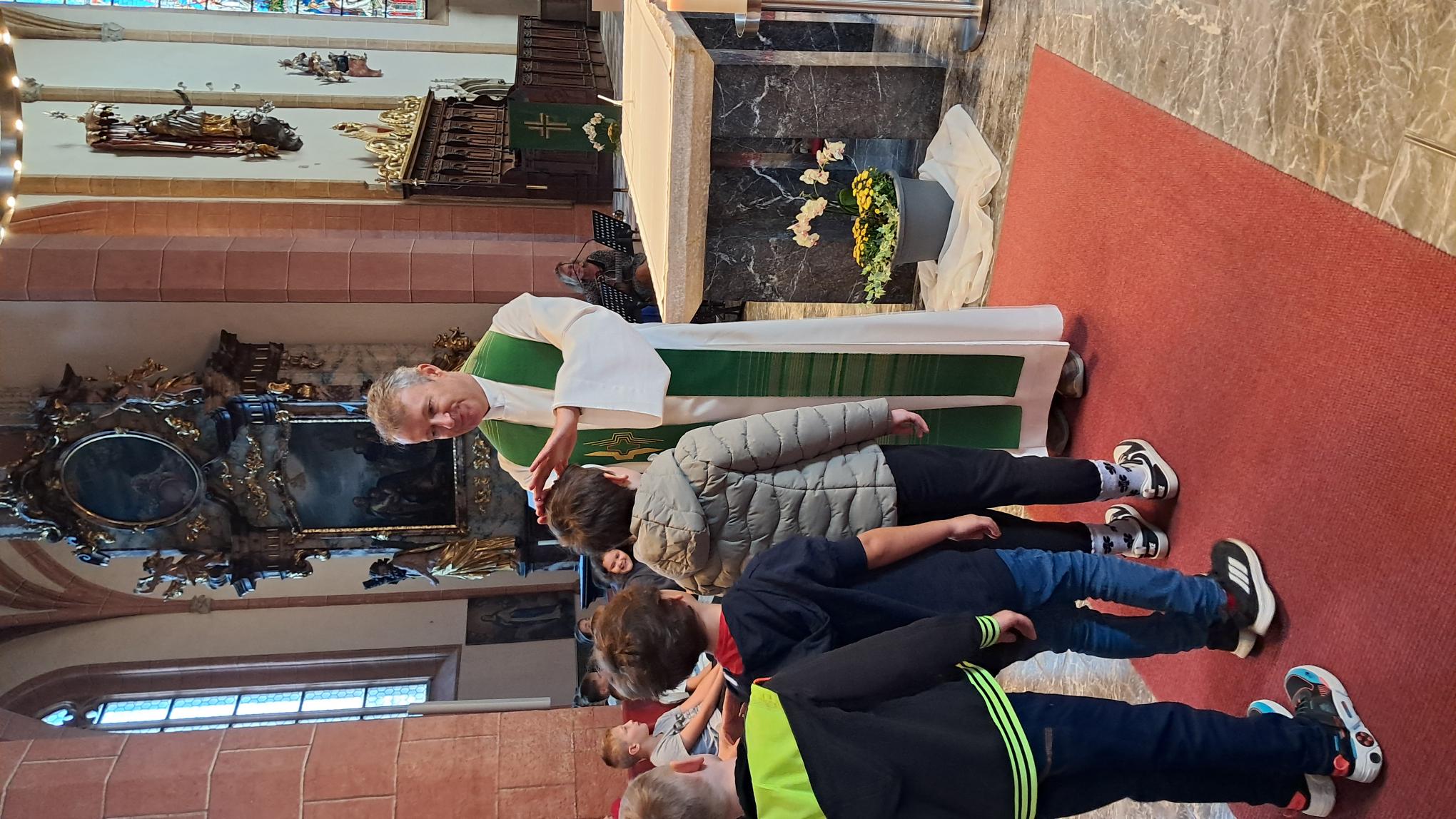 Wir baten am Beginn dieses Schuljahres in der Stadtpfarrkirche um den Segen Gottes. Dechant Zoltan Papp erinnerte uns daran, dass der Segen nur dann bei uns bleibt, wenn wir ihn mit anderen teilen. So können wir einander zum Segen werden. Jesus, der von den Toten auferstanden ist, hilft uns dabei.