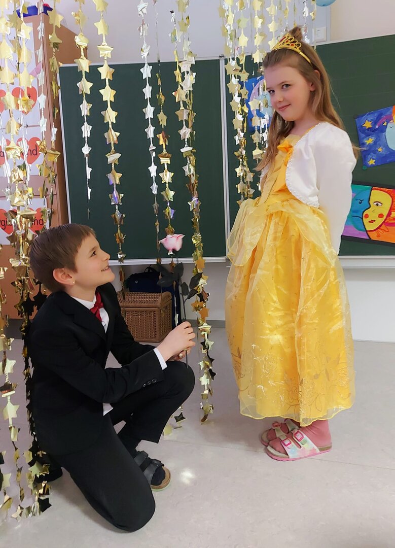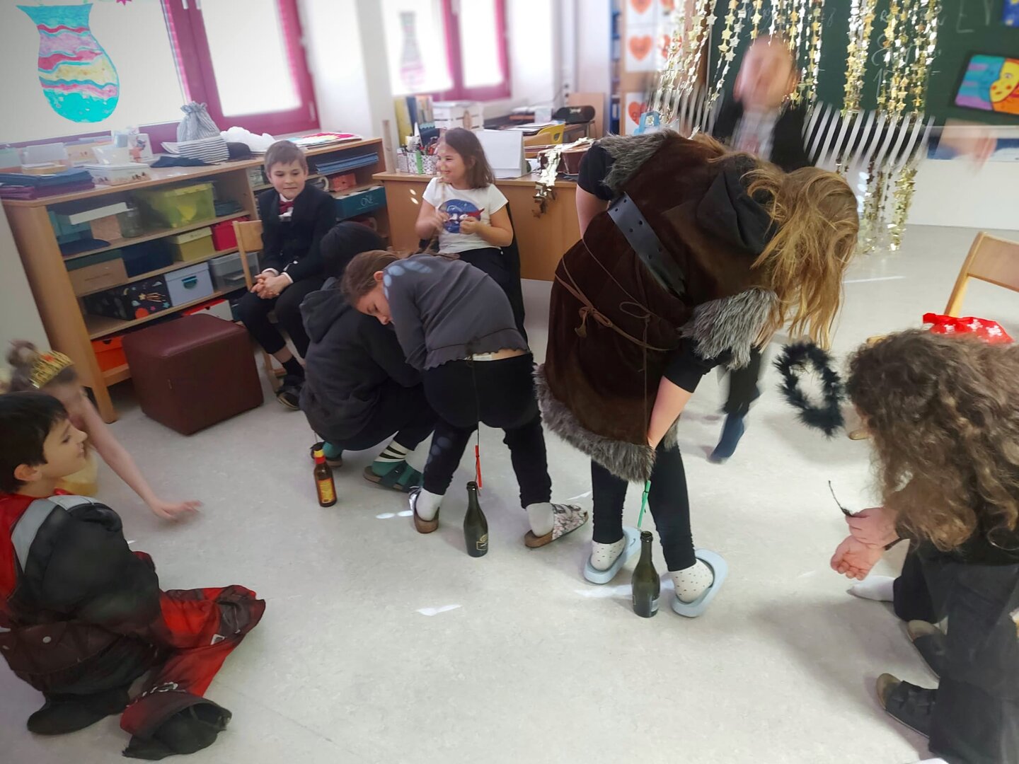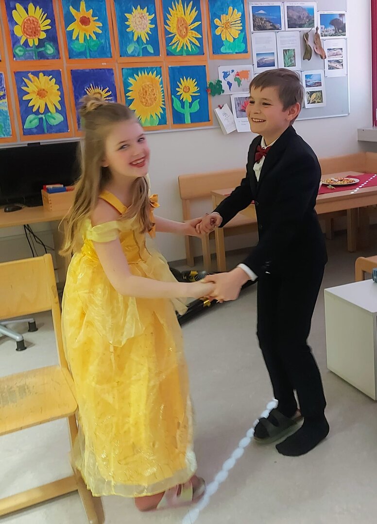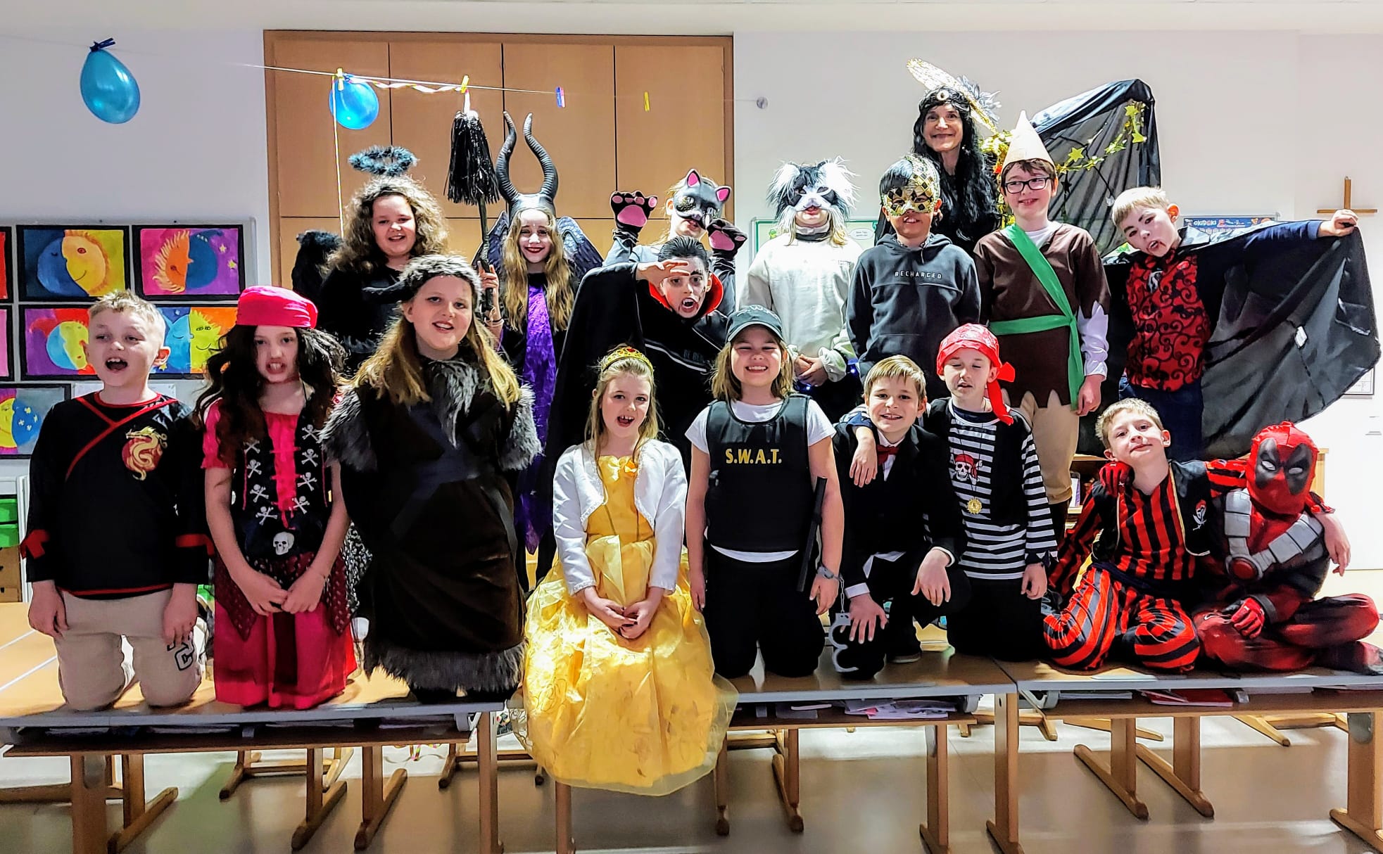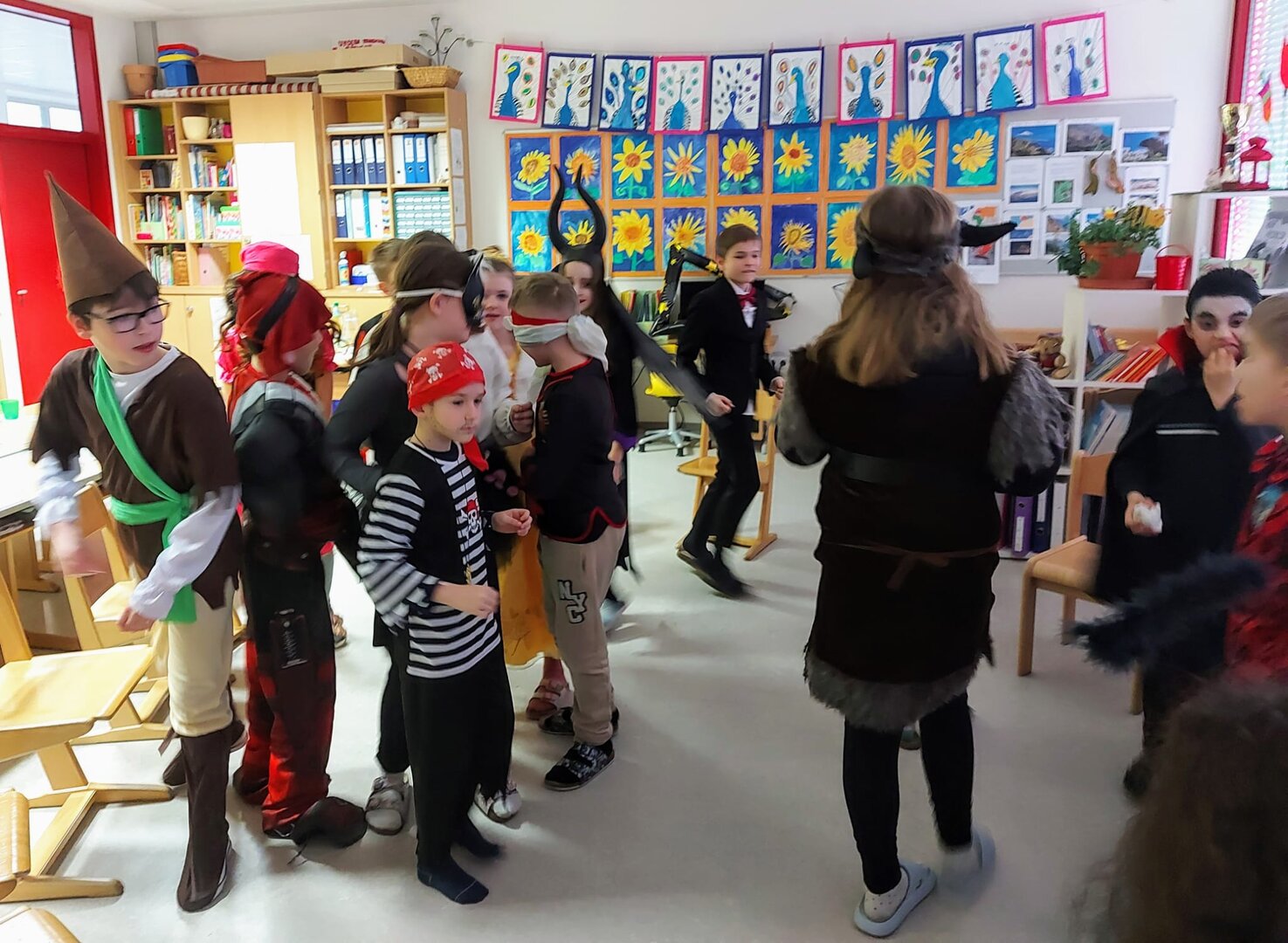 In der 3C Klasse wurde vier Stunden Fasching gefeiert. Die Kinder haben mit der "Königin der Nacht" gesungen, getanzt, Interviews gemacht, gespielt und Pfand ausgelöst. Nach der Hochzeit fand eine Faschingshochzeit statt, zu der die Kinder der 3B eingeladen waren. Zum Abschluss zogen alle Kinder aus dem dritten Stockwerk mit dem Lehrer, den Lehrerinnen, lauter Musik und "viel Trara" durchs Schulhaus. Danke dem Elternverein für die Krapfen und Getränke!