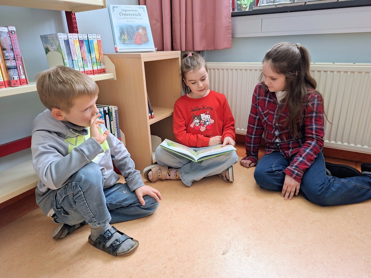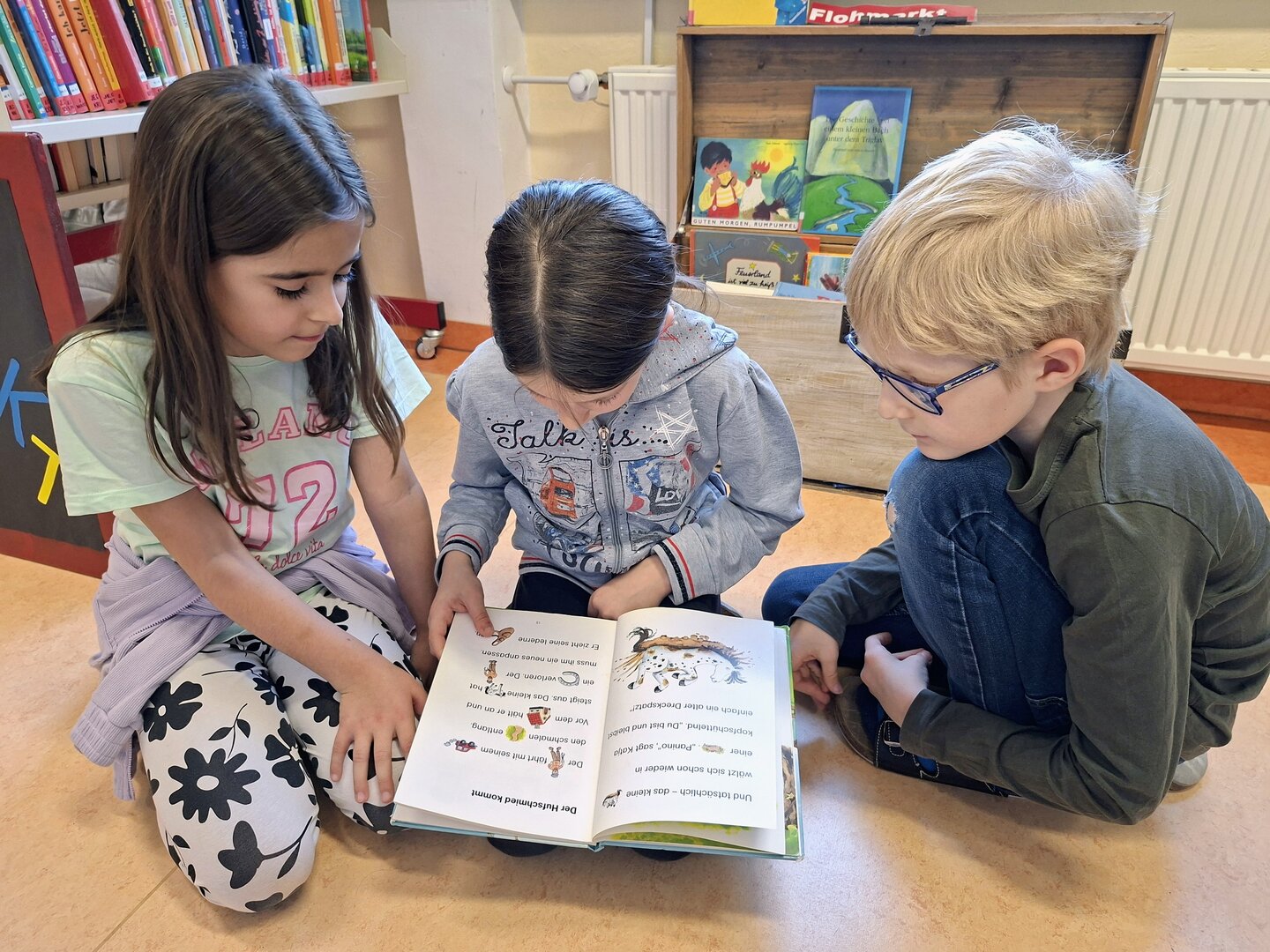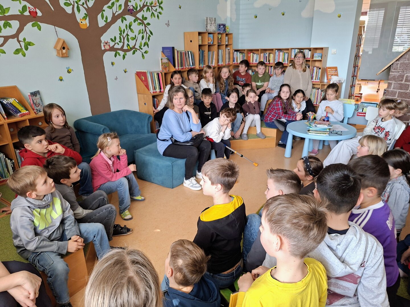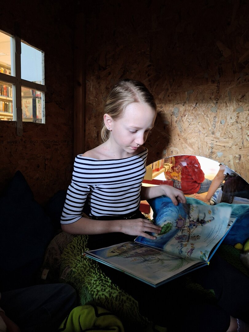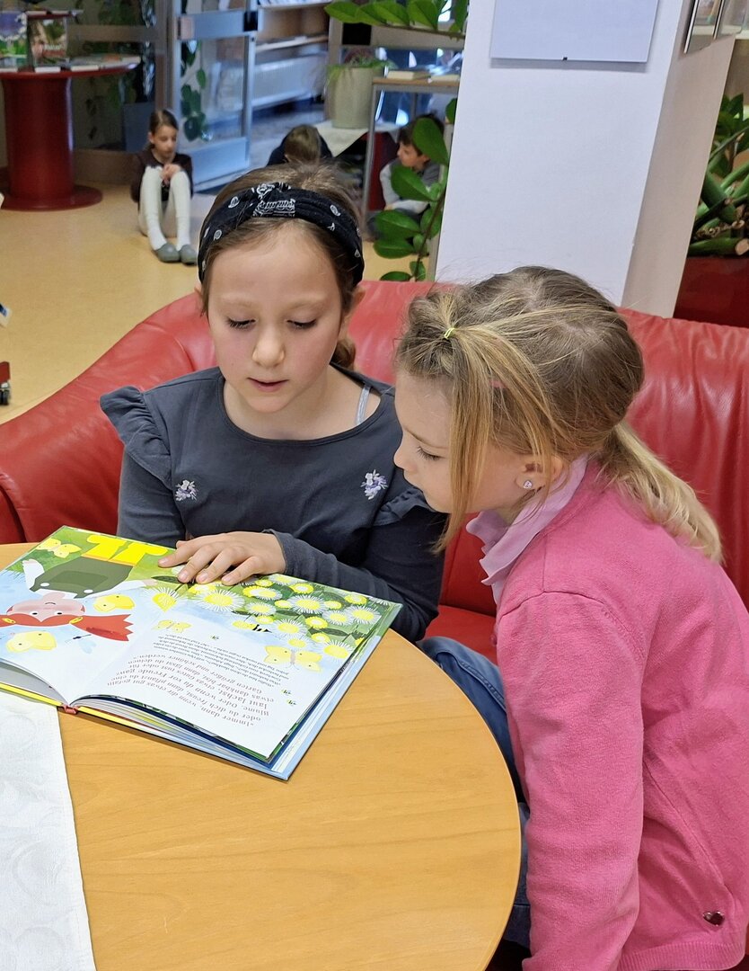 Den Auftakt machte am Donnerstag die 3B Klasse. Tagelang übten die Schülerinnen und Schüler bereits das Vorlesen von ausgewählten Bilderbüchern. Heute durften sie endlich den Zweitklässlern vorlesen. Jedem Kind der 3B wurden 1 oder 2 Kinder aus der 2B und 2C zugewiesen. Die kleinen Grüppchen suchte sich einen gemütlichen Plätz und dann wurde mit Engagement vorgelesen bzw. aufmerksam zugehört.