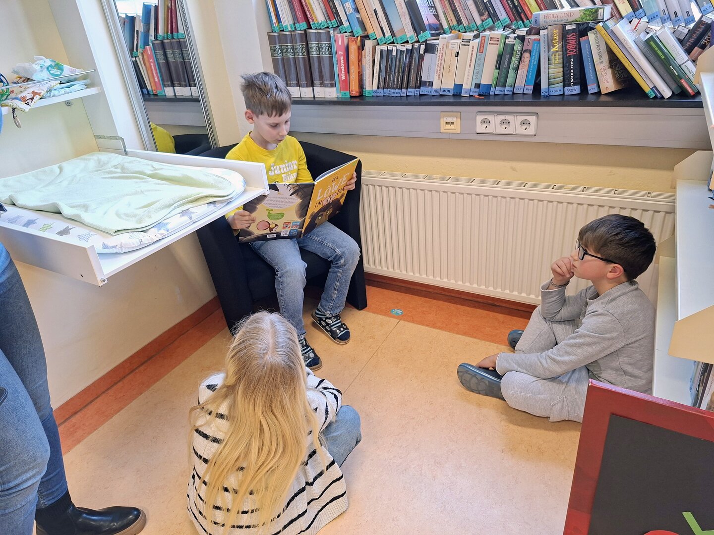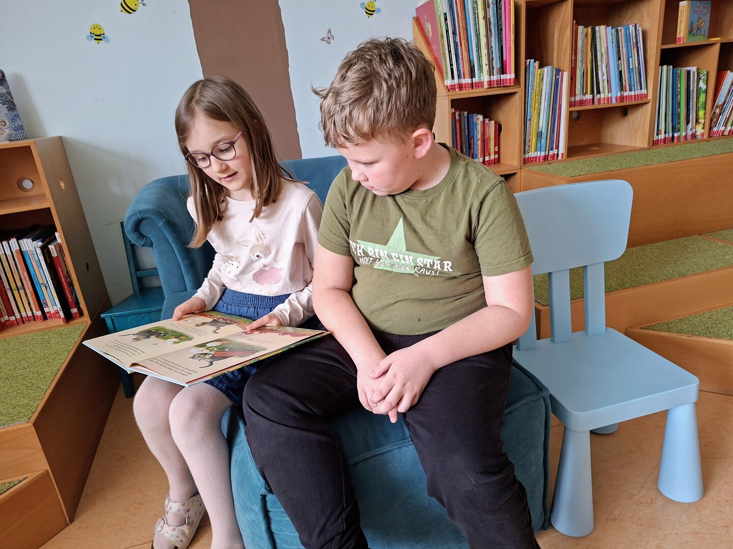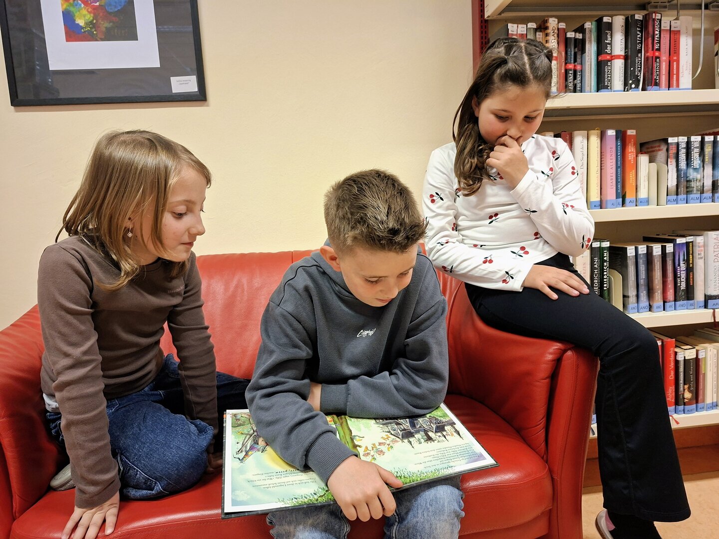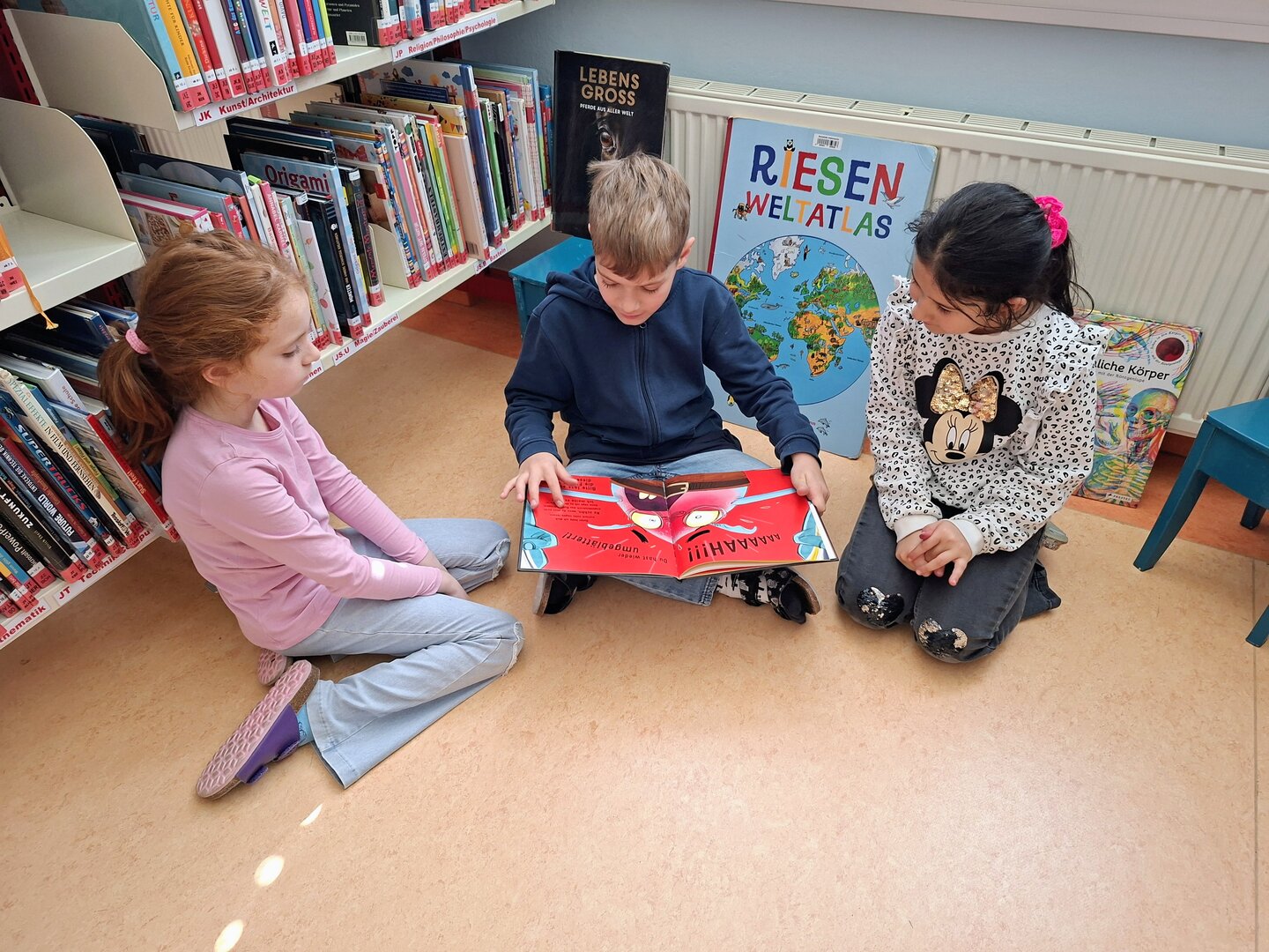 Den Auftakt machte am Donnerstag die 3B Klasse. Tagelang übten die Schülerinnen und Schüler bereits das Vorlesen von ausgewählten Bilderbüchern. Heute durften sie endlich den Zweitklässlern vorlesen. Jedem Kind der 3B wurden 1 oder 2 Kinder aus der 2B und 2C zugewiesen. Die kleinen Grüppchen suchte sich einen gemütlichen Plätz und dann wurde mit Engagement vorgelesen bzw. aufmerksam zugehört.