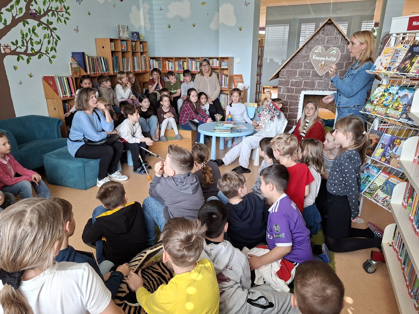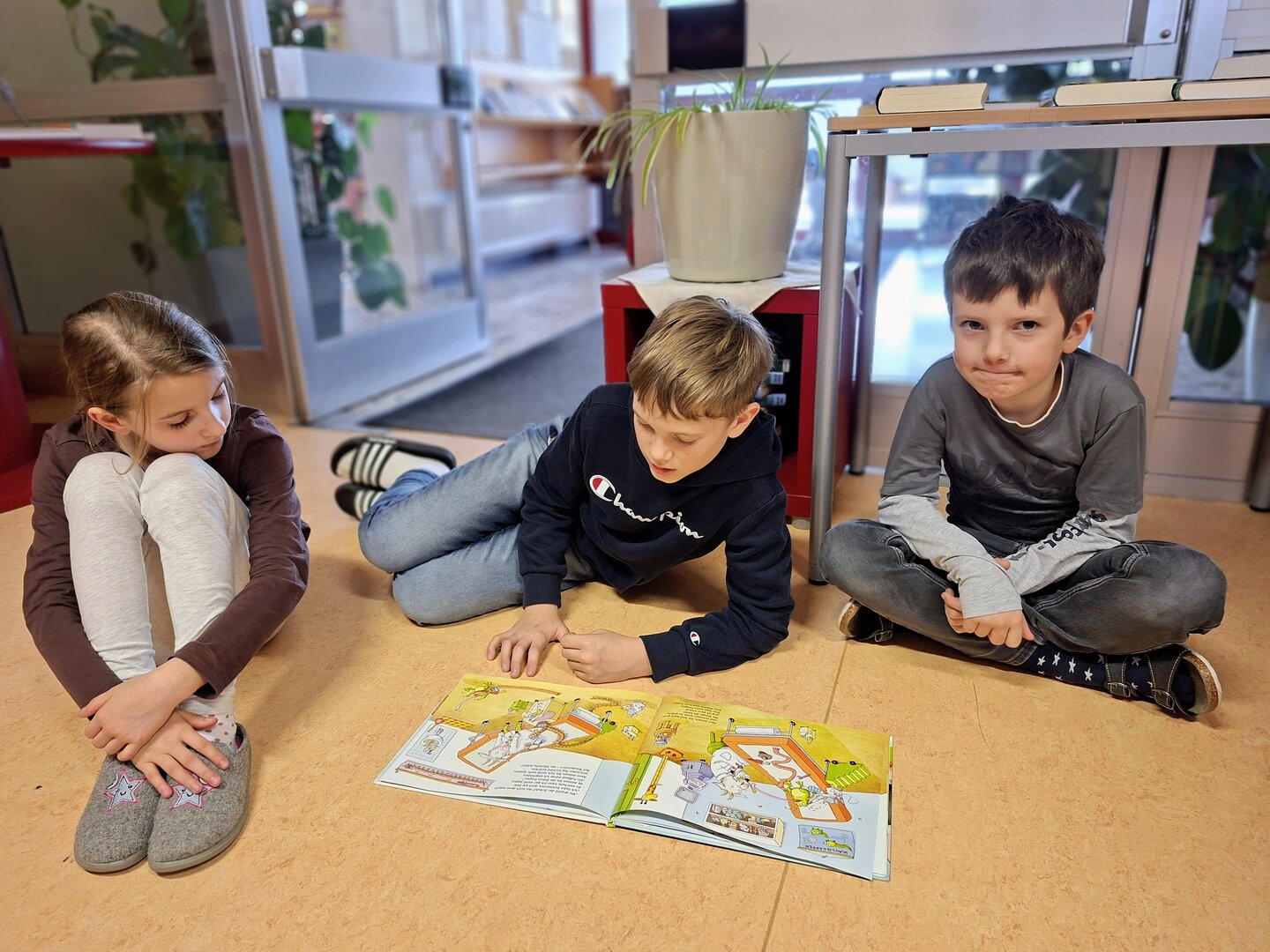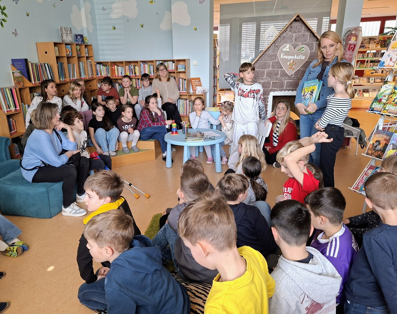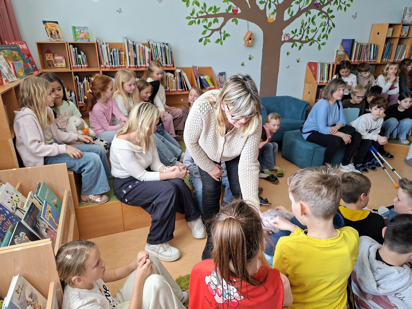 Den Auftakt machte am Donnerstag die 3B Klasse. Tagelang übten die Schülerinnen und Schüler bereits das Vorlesen von ausgewählten Bilderbüchern. Heute durften sie endlich den Zweitklässlern vorlesen. Jedem Kind der 3B wurden 1 oder 2 Kinder aus der 2B und 2C zugewiesen. Die kleinen Grüppchen suchte sich einen gemütlichen Plätz und dann wurde mit Engagement vorgelesen bzw. aufmerksam zugehört.