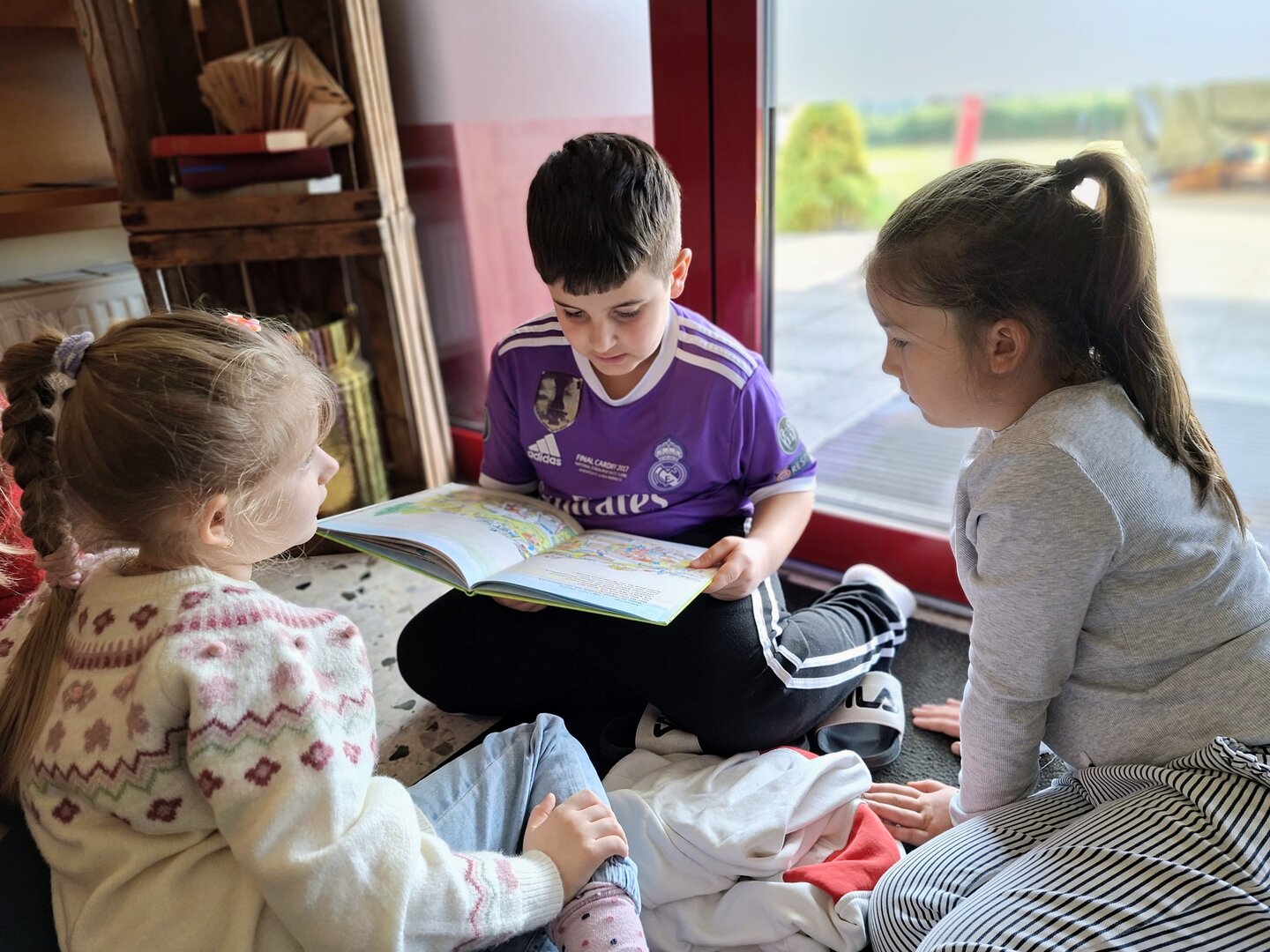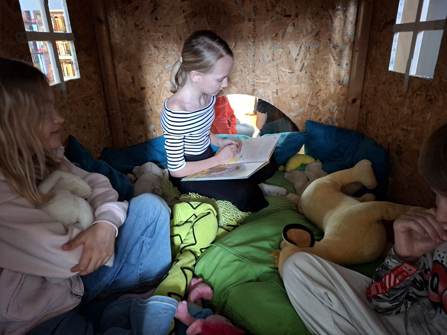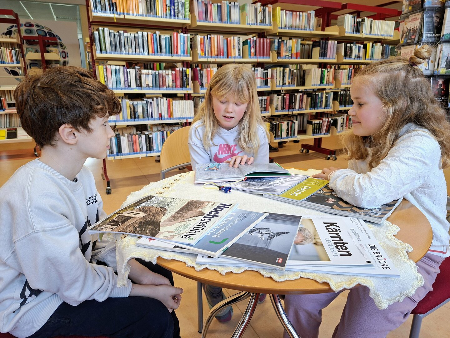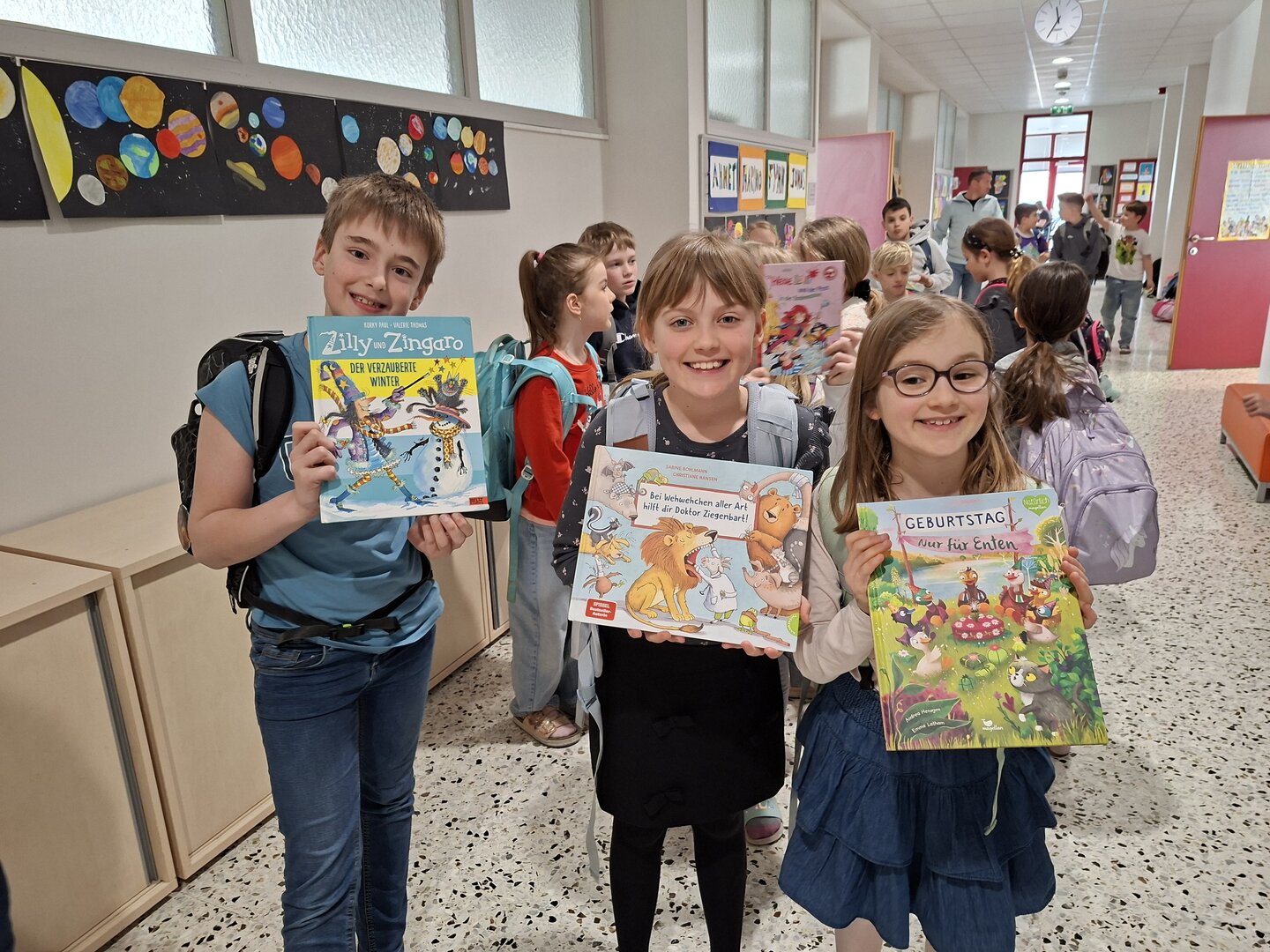 Den Auftakt machte am Donnerstag die 3B Klasse. Tagelang übten die Schülerinnen und Schüler bereits das Vorlesen von ausgewählten Bilderbüchern. Heute durften sie endlich den Zweitklässlern vorlesen. Jedem Kind der 3B wurden 1 oder 2 Kinder aus der 2B und 2C zugewiesen. Die kleinen Grüppchen suchte sich einen gemütlichen Plätz und dann wurde mit Engagement vorgelesen bzw. aufmerksam zugehört.