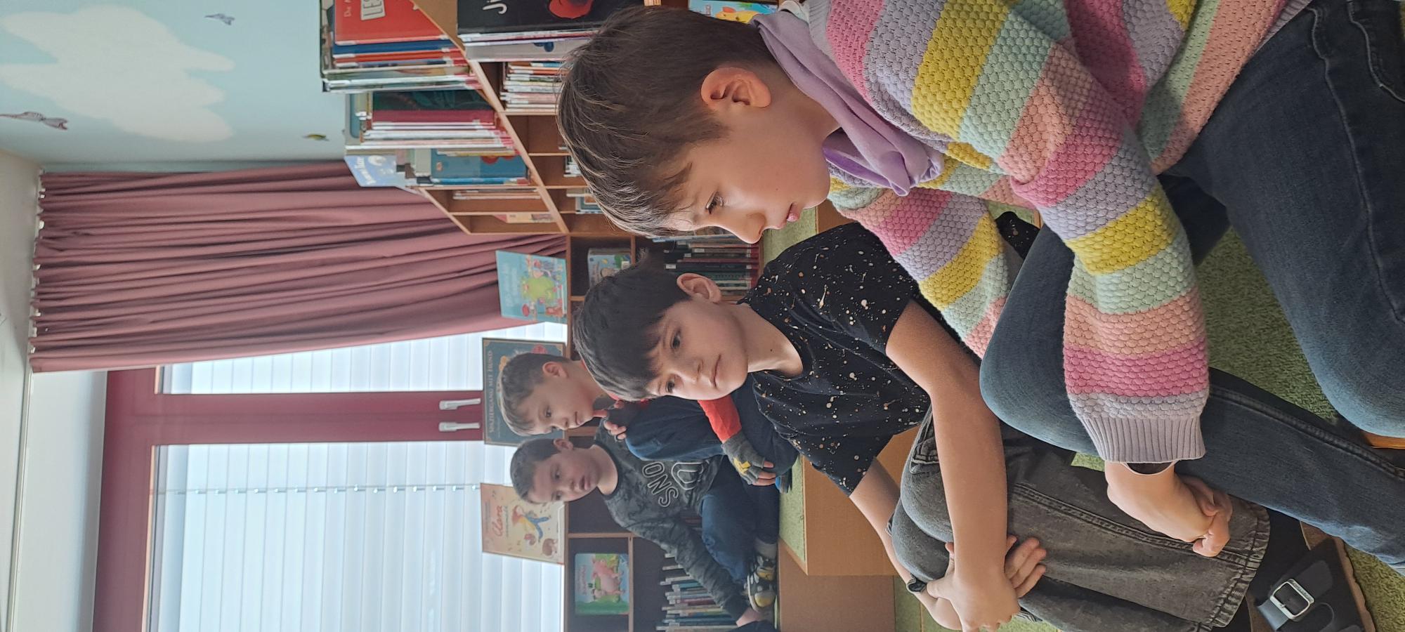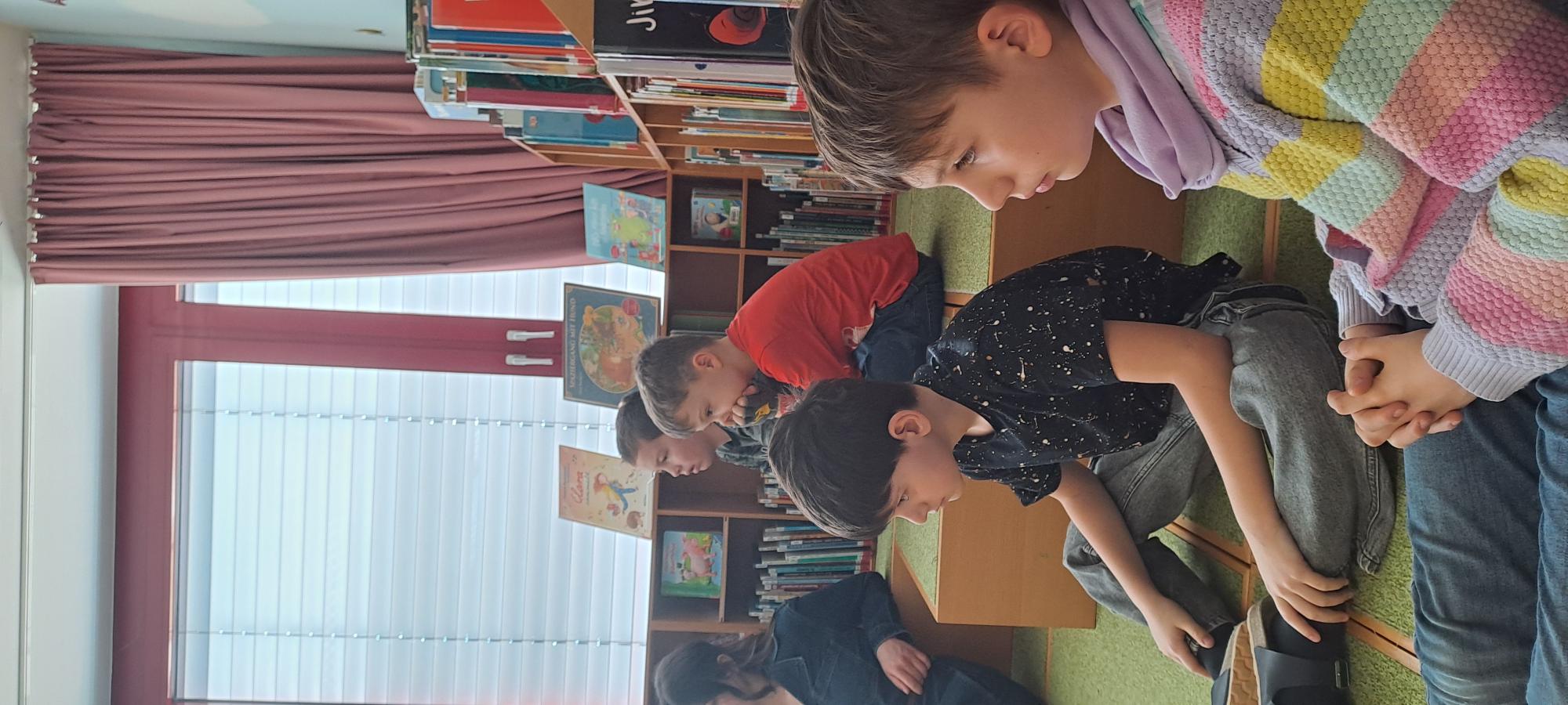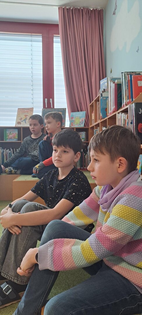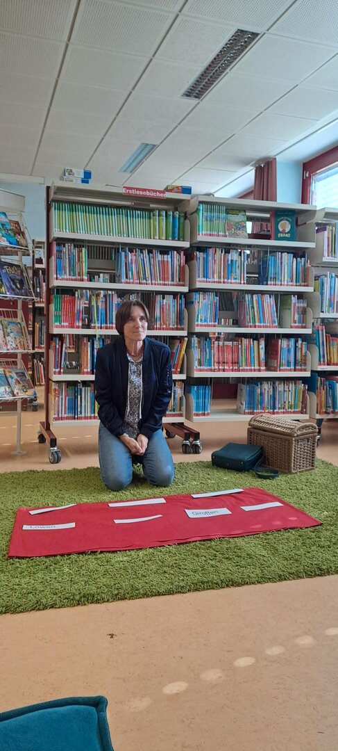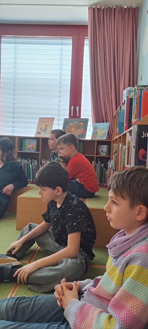 Frau Rapold stellt das englische Kinderbuch "Giraffs can't dance" von Hugh Laurie vor. Die Schüler lauschten gespannt der Geschichte, die in englischer Sprache vorgetragen wurde.