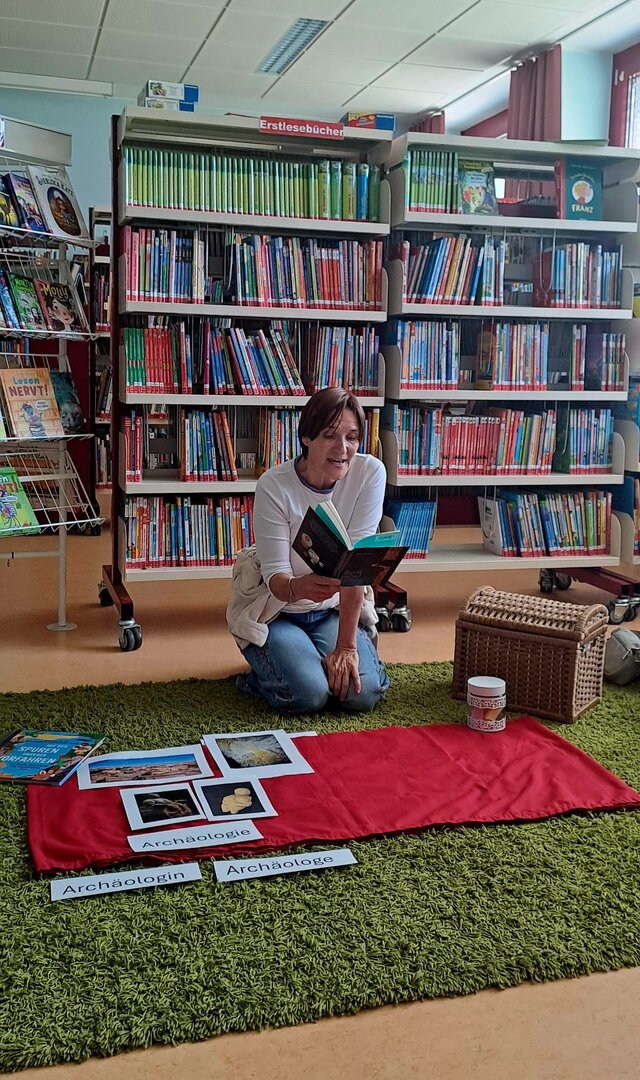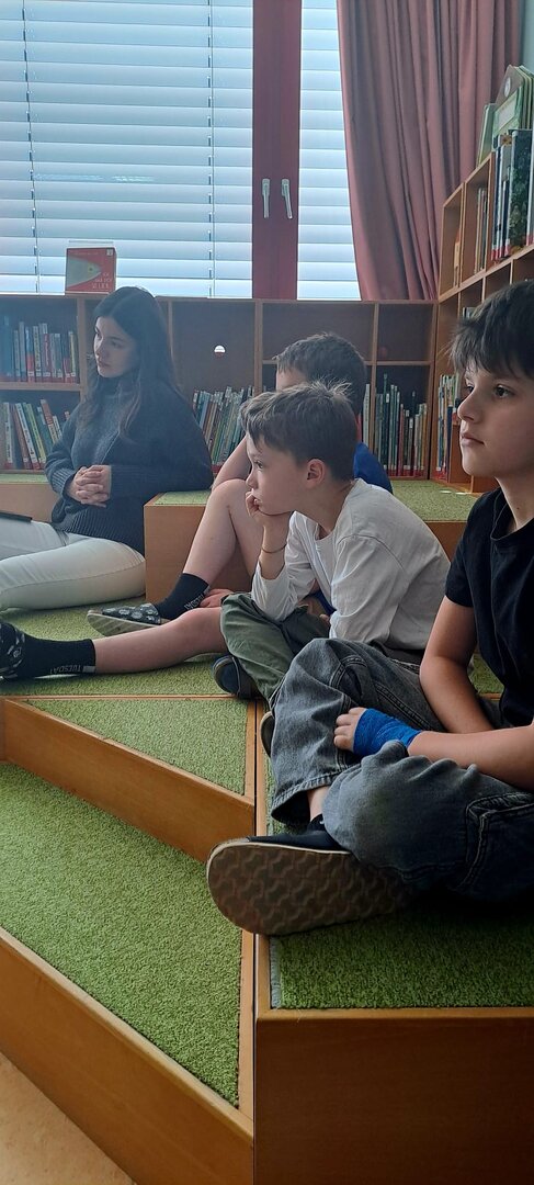 Die Mediathek hat in den letzten Wochen viele neue Kinderbücher angekauft: literarische Bücher und Sachbücher. Aus beiden Kategorien wurde den Schülern der TO-Gruppeheute eines vorgestellt: ein Sachbuch zu archäologischen Funden, die uns Aufschluss über alte Kulturen geben und das fantastische Buch "Die Abenteuer des Konrad Frühling", einem Jungen, der eine Dose mit vielen Briefen aus einem geheimnisvollen Laden geschenkt bekommt, die ihn verschiedene Abenteuer erleben und seine Ängste überwinden lassen. Die Kinder waren sehr interessiert und haben prima mitgeredet.