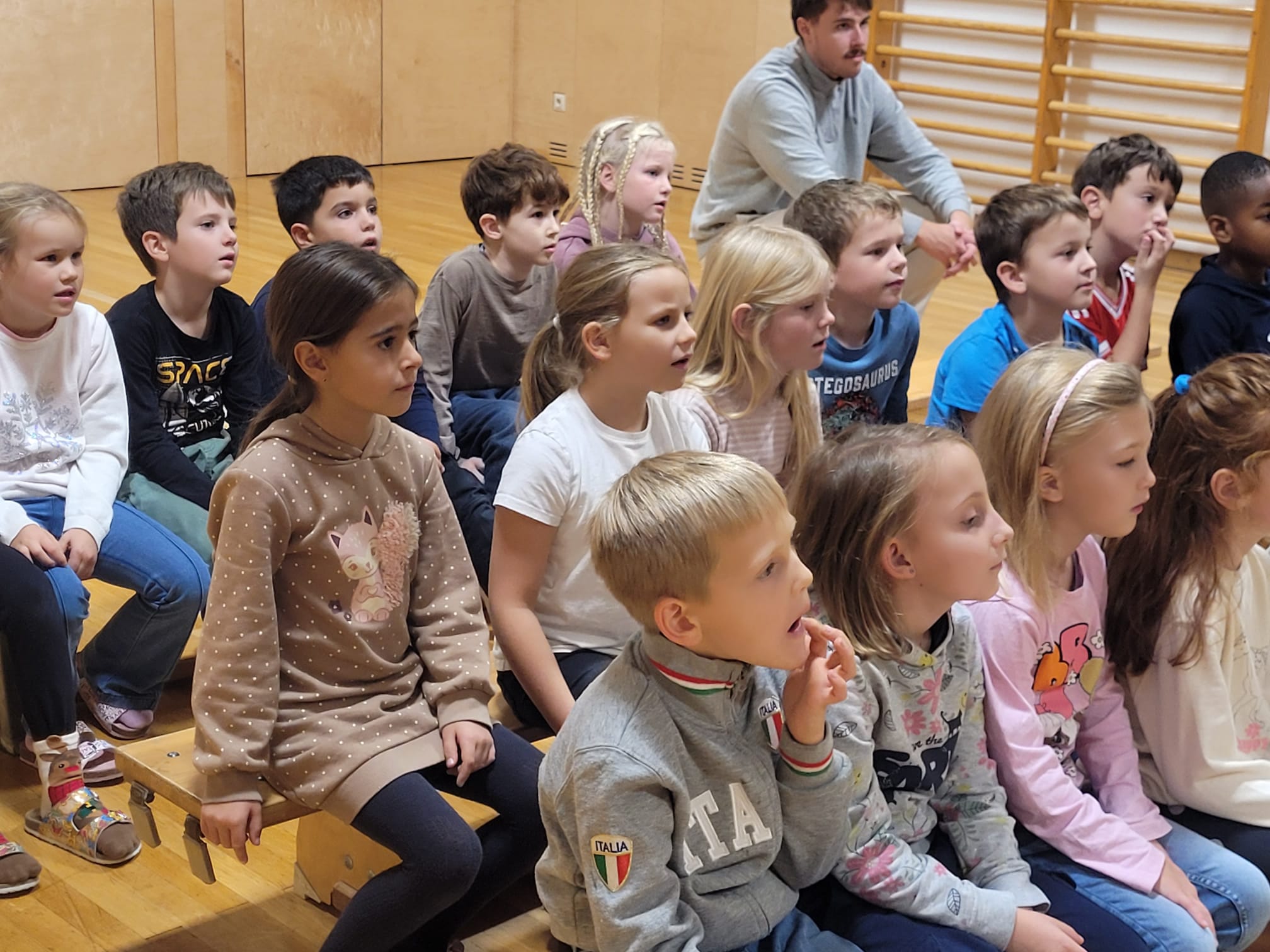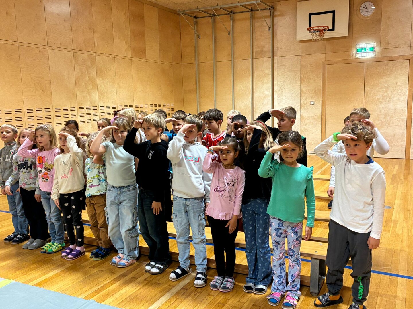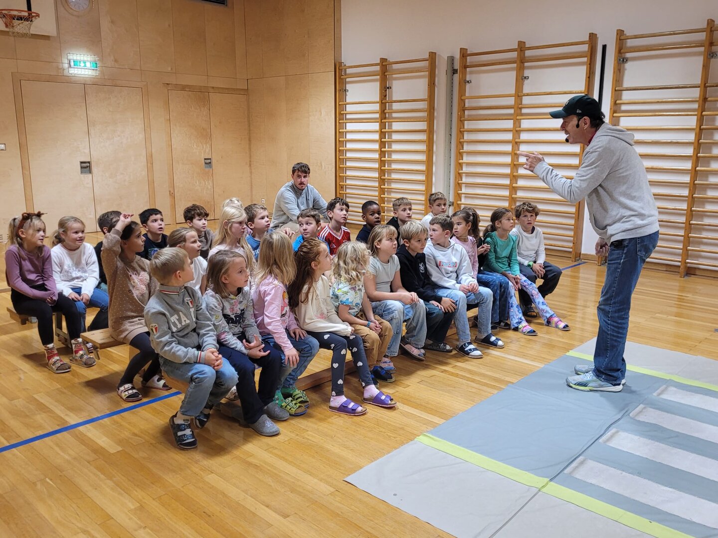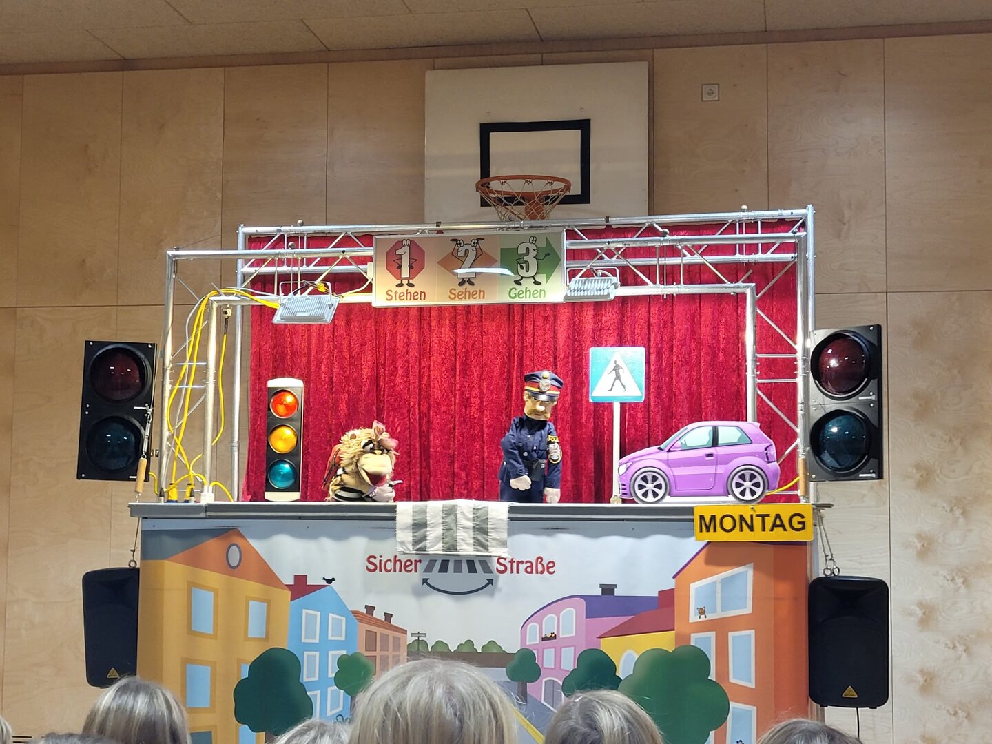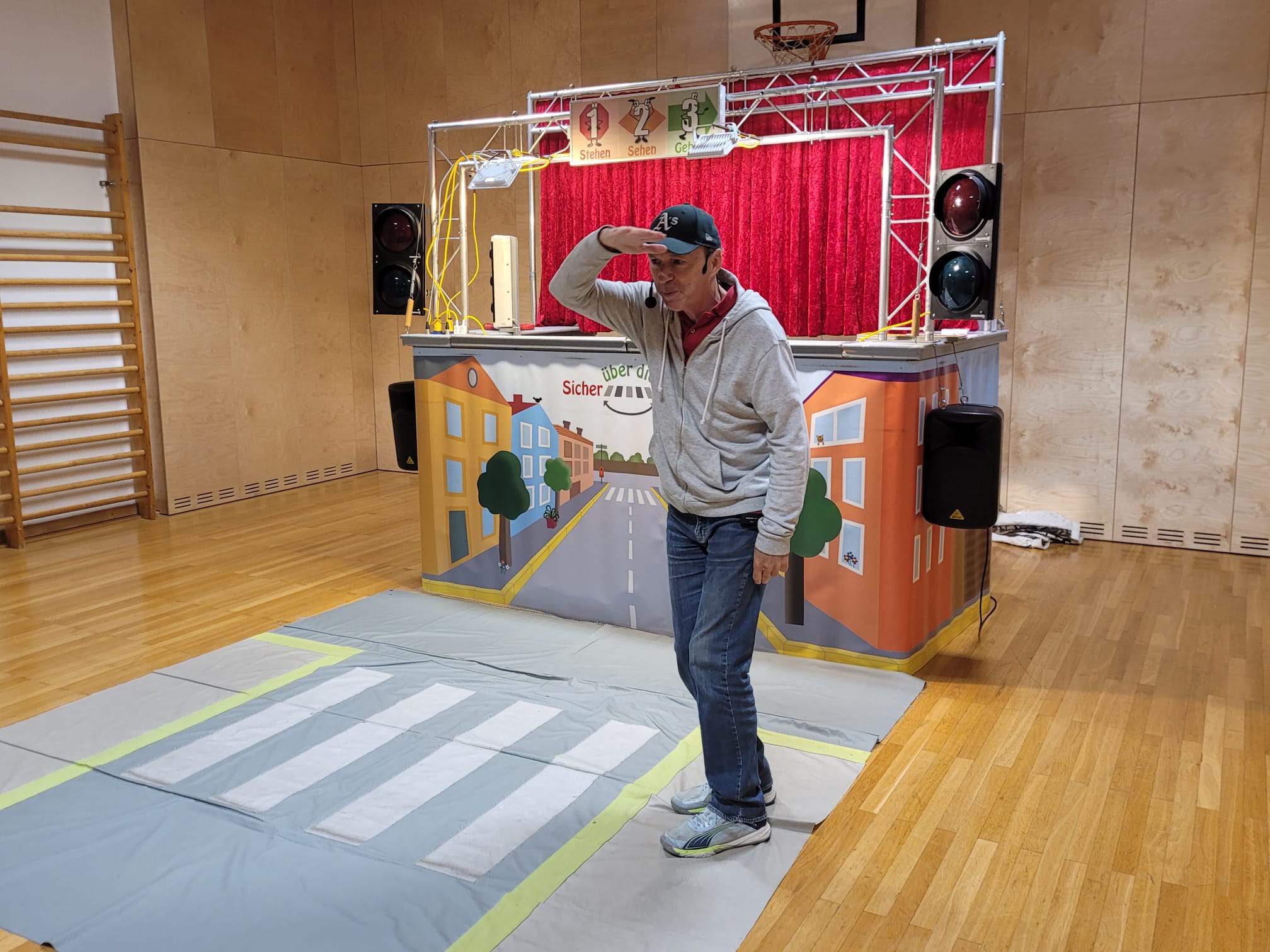 Unsere Schülerinnen und Schüler haben eine wichtige Zauberformel für das Überqueren der Straße gelernt: stehen – sehen – gehen. Mit dieser einfachen Regel üben die Kinder, sicher und aufmerksam über die Straße zu kommen – auch auf ihrem Schulweg.